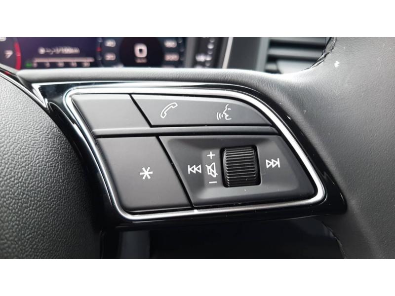 Accoudoir central AVAccoudoirs de portières en matériaux synthétiques AVAffichage de contrôle de pression des pneusAirbags latéraux à l'AV et système d'airbags de têteApplications décoratives étendues en laque diamant Gris Argent dans l'insert du diffuseur d'air et de la console centrale ainsi que dans la poignée de la commande intérieure de verrouillage des portièresApplications décoratives étendues sur le tableau de bord façon verre en noir, de l'écran couleur MMI touch jusqu'aux triangles de portières AV façon verre en noirApplications décoratives structure polygone en laque fine ArdoiseArches de toit et pavillon de couleur uniAssistant de démarrage en côte (Audi Hill Hold Assist)Audi Pre Sense frontAudi Smartphone InterfaceAvertissement de franchissement de ligneCiel de pavillon en tissu Gris TitaneClimatisation automatique confort 2 zonesDétecteur de pluie et de luminositéDossier de banquette AR rabattableFeux de brouillard ARInterface BluetoothLève-vitres électriques à l'AV et à l'ARLimiteur de vitesseMoulures de seuil avec insert en aluminium à l'AVPhares et feux AR à LED, avec clignotants dynamiques à ARPréparation pour la navigation MMI plus et Audi virtual cockpitRégulateur de vitesseRétroviseur intérieur jour/nuit manuelRétroviseurs extérieurs réglables électriquement et dégivrants [6XD]Sellerie tissu Novum pour sièges sport à l'AVSet de réparation pour pneusSièges AV sportSièges conducteur et passager AV réglables en hauteurSystème de lecture des panneaux de signalisation par caméraVitres athermiques