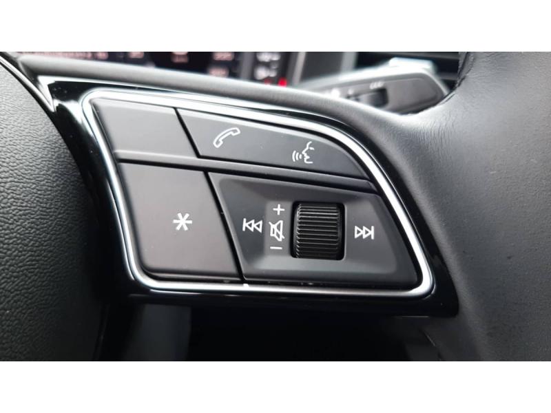 Accoudoir central AVAccoudoirs de portières en matériaux synthétiques AVAffichage de contrôle de pression des pneusAirbags latéraux à l'AV et système d'airbags de têteApplications décoratives étendues en laque diamant Gris Argent dans l'insert du diffuseur d'air et de la console centrale ainsi que dans la poignée de la commande intérieure de verrouillage des portièresApplications décoratives étendues sur le tableau de bord façon verre en noir, de l'écran couleur MMI touch jusqu'aux triangles de portières AV façon verre en noirApplications décoratives structure polygone en laque fine ArdoiseAssistant de démarrage en côte (Audi Hill Hold Assist)Audi Pre Sense frontAudi Smartphone InterfaceAvertissement de franchissement de ligneCiel de pavillon en tissu Gris TitaneClimatisation automatique confort 2 zonesDétecteur de pluie et de luminositéDossier de banquette AR rabattableFeux de brouillard ARInterface BluetoothLève-vitres électriques à l'AV et à l'ARLimiteur de vitesseMoulures de seuil avec insert en aluminium à l'AVPhares et feux AR à LED, avec clignotants dynamiques à ARPréparation pour la navigation MMI plus et Audi virtual cockpitRégulateur de vitesseRétroviseur intérieur jour/nuit manuelRétroviseurs extérieurs réglables électriquement et dégivrants [6XD]Sellerie tissu Novum pour sièges sport à l'AVSet de réparation pour pneusSièges AV sportSièges conducteur et passager AV réglables en hauteurSystème de lecture des panneaux de signalisation par caméraVitres athermiques