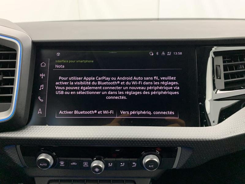 Accoudoir central AVAccoudoirs de portières en matériaux synthétiques AVAffichage de contrôle de pression des pneusAirbags latéraux à l'AV et système d'airbags de têteApplications décoratives étendues en laque diamant Gris Argent dans l'insert du diffuseur d'air et de la console centrale ainsi que dans la poignée de la commande intérieure de verrouillage des portièresApplications décoratives étendues sur le tableau de bord façon verre en noir, de l'écran couleur MMI touch jusqu'aux triangles de portières AV façon verre en noirApplications décoratives structure polygone en laque fine ArdoiseArches de toit et pavillon de couleur uniAssistant de démarrage en côte (Audi Hill Hold Assist)Audi Pre Sense frontAudi Smartphone InterfaceAvertissement de franchissement de ligneCiel de pavillon en tissu Gris TitaneClimatisation automatique confort 2 zonesDétecteur de pluie et de luminositéDossier de banquette AR rabattableFeux de brouillard ARInterface BluetoothInterface USB de type CLève-vitres électriques à l'AV et à l'ARLimiteur de vitesseMoulures de seuil avec insert en aluminium à l'AVPhares et feux AR à LED, avec clignotants dynamiques à ARPréparation pour la navigation MMI plus et Audi virtual cockpitRégulateur de vitesseRétroviseur intérieur jour/nuit manuelRétroviseurs extérieurs réglables électriquement et dégivrants [6XD]Sellerie tissu Derby pour sièges sport à l'AV [N2T]Set de réparation pour pneusSièges AV sportSièges conducteur et passager AV réglables en hauteurSystème de lecture des panneaux de signalisation par caméraVitres athermiques