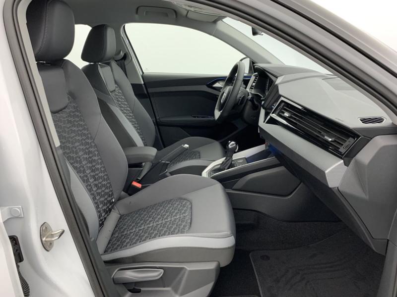 Accoudoir central AVAccoudoirs de portières en matériaux synthétiques AVAffichage de contrôle de pression des pneusAirbags latéraux à l'AV et système d'airbags de têteApplications décoratives étendues en laque diamant Gris Argent dans l'insert du diffuseur d'air et de la console centrale ainsi que dans la poignée de la commande intérieure de verrouillage des portièresApplications décoratives étendues sur le tableau de bord façon verre en noir, de l'écran couleur MMI touch jusqu'aux triangles de portières AV façon verre en noirApplications décoratives structure polygone en laque fine ArdoiseArches de toit et pavillon de couleur uniAssistant de démarrage en côte (Audi Hill Hold Assist)Audi Pre Sense frontAudi Smartphone InterfaceAvertissement de franchissement de ligneCiel de pavillon en tissu Gris TitaneClimatisation automatique confort 2 zonesDétecteur de pluie et de luminositéDossier de banquette AR rabattableFeux de brouillard ARInterface BluetoothInterface USB de type CLève-vitres électriques à l'AV et à l'ARLimiteur de vitesseMoulures de seuil avec insert en aluminium à l'AVPhares et feux AR à LED, avec clignotants dynamiques à ARPréparation pour la navigation MMI plus et Audi virtual cockpitRégulateur de vitesseRétroviseur intérieur jour/nuit manuelRétroviseurs extérieurs réglables électriquement et dégivrants [6XD]Sellerie tissu Novum pour sièges sport à l'AVSet de réparation pour pneusSièges AV sportSièges conducteur et passager AV réglables en hauteurSystème de lecture des panneaux de signalisation par caméraVitres athermiques