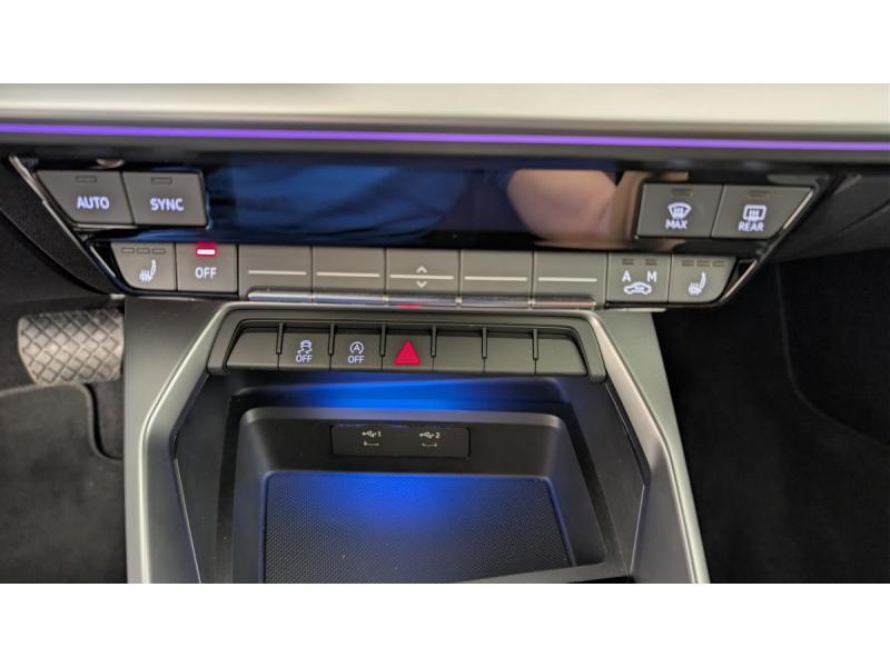 Accoudoir central coulissant en longueur, avec inclinaison réglableAirbags latéraux AV et système d'airbags de têteAlerte de sortie de voieAudi pre sense frontCaméra de reculCiel de pavillon en tissuClimatisation automatique confort 2 zonesCombiné d’instruments numérique Digital Cockpit 10,25"Commande de désactivation de l'airbag passager AVContrôle de la pression des pneusDétecteur de pluie et de luminositéDispositif de limitation de vitesseI-Size et Top Tether pour les sièges AR extérieursInterface BluetoothJantes en alliage léger 17", 5 branches parallèles, 8,0 J x 17", pneus: 225/45 R17Kit réparationPack Brillance Extérieur : Revêtement Noir Brillant sur les montants de pavillon centraux et AR Baguette sur les entourages de vitre en aluminium anodiséPhares AV basePréparation pour appareil de navigationRéception radio numérique (DAB)Régulateur de vitesse plus limiteur de vitesseRétroviseurs extérieurs réglables, dégivrants électriquementSécurité enfantsSellerie tissu "Debut 2"Sièges AV classiquesSièges AV réglables manuellement: Hauteur et positionnement en longueur, Inclinaison de dossier, Hauteur des appuie-tête et des ceinturesSystème d’aide au stationnement arrièreSystème Start & Stop avec récupération d'énergie au freinageVolant cuir multifonctions Plus 3 branches