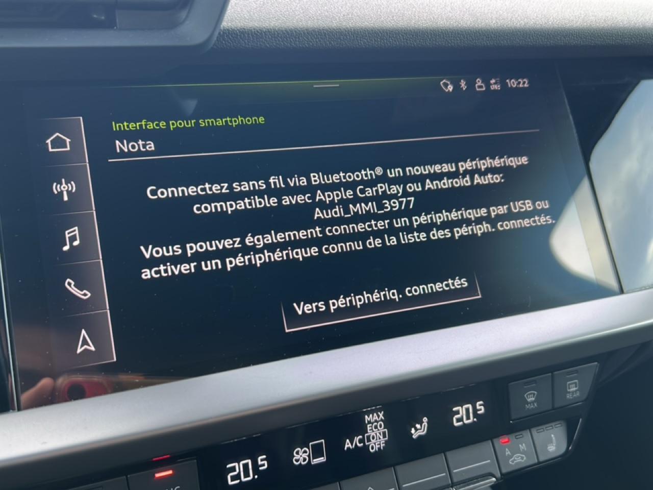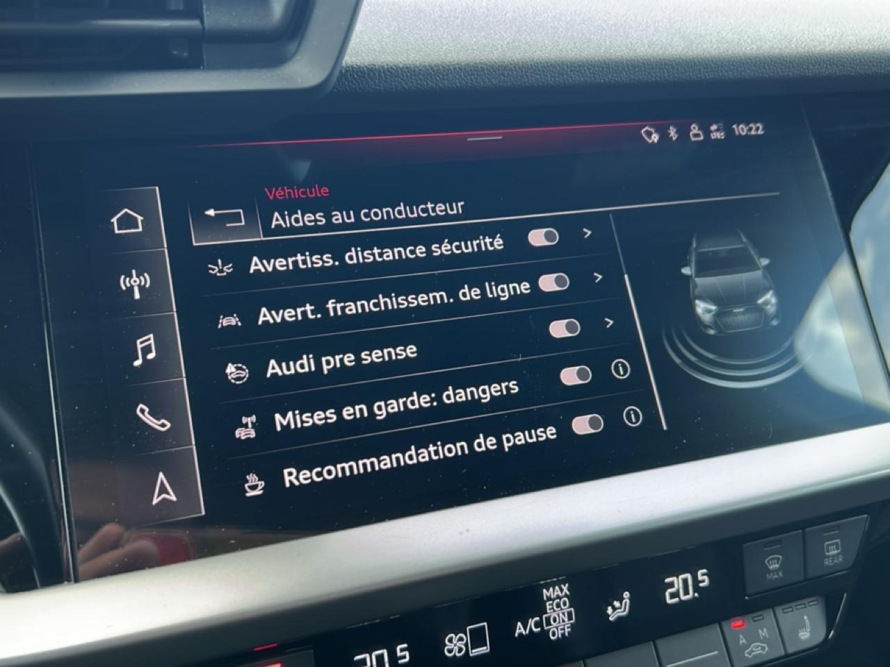 6 haut parleursAbsAccoudoir central av avec rangementAfilAide au freinage d'urgenceAirbag conducteurAirbag passager déconnectableAirbags latéraux avantAirbags rideauxAndroid auto et apple carplayAntidémarrage électroniqueAppui-tête conducteur réglable hauteurAppui-tête passager réglable en hauteurAudi connect nav et divertissement plusAudi phone boxAudi virtual cockpit plusBanquette 60/40Banquette ar rabattableBlocage électronique du différentielCaméra de reculCapteur de luminositéCapteur de pluieCeintures avant ajustables en hauteurClim automatique bi-zonesCommandes du système audio au volantContrôle élect. de la pression des pneusEbdEcran couleur 10.25EscFeux de jour à ledFeux de position à ledFiltre de croisement à ledFixations i-size et top teather sièges ar extFrein de stationnement électromécaniqueJa 18 style dynamique 5 brasKit mains-libres bluetoothLampe de coffreLampes de lecture à l'arrièreLampes de lecture à l'avantLimiteur de vitesseLunette ar dégivranteMiroir de courtoisie conducteurMiroir de courtoisie passagerPack Éclairage d?ambiancePalettes changement vitesses au volantPhares avant ledPrise usb-cRéglages automatique de la portée dynamique des pharesRégulateur de vitesseRétroviseurs électriquesRétroviseurs dégivrantsRétroviseurs ext. indexé à la marche arRadar de stationnement arRadio mmiRadio numérique dabSiège conducteur réglable en hauteurSiège passager réglable en hauteurSièges avant chauffantsSièges avant sportSuspensions sportSystème d'assistance au stationnementSystème de mesure de place disponibleSystème de prévention des collisionsTémoin de bouclage des ceintures avTissu pouls/synthétique noir+spq grisVerrouillage centralisé à distanceVerrouillage centralisé des portesVitrages isolant thermique teinté pour lunette arrière, et vitres de portes latéralesVitres arrière électriquesVitres avant électriquesVolant cuir réglable manuellementVolant multifonction