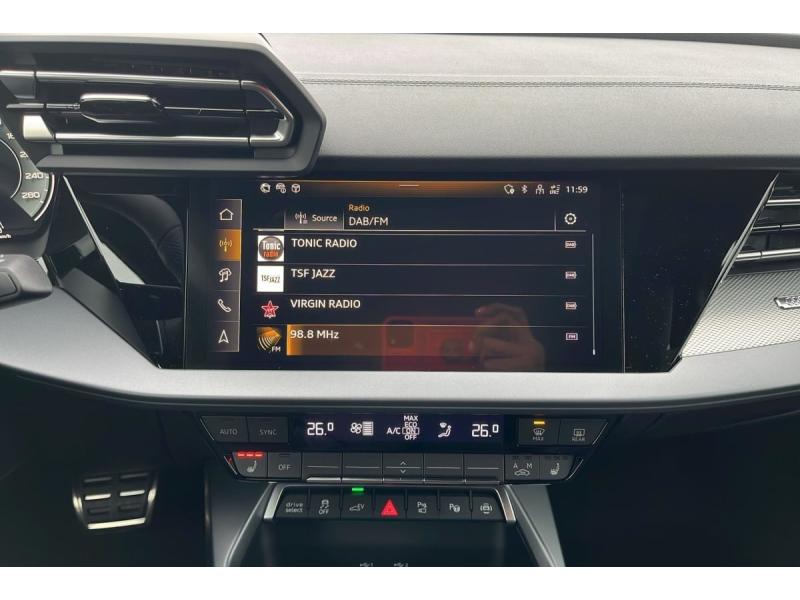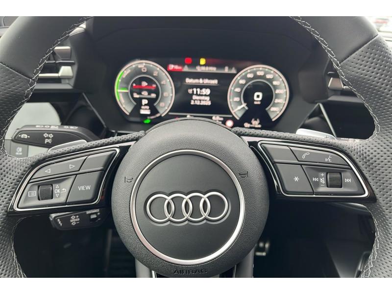 2 ports de charge USB ARABSAccoudoir central coulissant en longueur, avec inclinaison réglableAirbags latéraux à l'AV et système d'airbags de têteAppel d'urgenceAppel d'urgence Audi connectApplications décoratives en aluminium Spectre foncé (au tableau de bord)Appui lombaire à 4 axes pour les sièges AV : réglages électrique, horizontal et verticalAssistant de maintien dans la voieAssistant de vitesse adaptatifAudi Drive SelectAudi Hold AssistAudi park assist plus avec caméra. L'aide au stationnement plus peut aider à entrer et à sortir des places de stationnement qui peuvent être limitées par des véhicules ou des objets. Le système prend le contrôle de la direction, de l'aAudi phone box lightAudi pre sense frontBoîte automatique S Tronic 6 vitessesBoîtiers de rétroviseurs extérieurs dans la couleur de la carrosserieBoîtiers de rétroviseurs extérieurs en NoirCâble de recharge mode 3 pour recharge publique 11kWCâble de recharge prise domestiqueClé à fréquence radio (sans safelock) Verrouillage central "Keyless-Go" verrouille et déverrouille les portes, le capot de coffre et la trappe à carburant ; incluant ouverture/fermeture confort des vitresClé confort incluant déverrouillage du coffre par capteur (sans safelock) - Accès et démarrage du véhicule mains libres (keyless access) - Déverrouillage du hayon via la touche "coffre" de la télécommande ou en simulant un mouvement Commande de désactivation de l'airbag passager AVCondamnation centralisée des portesContrôle de la pression des pneusContrôle de la traction (TCS)Détecteur de pluie et de luminositéDétection de signalisation routière par caméraDirection assistée électromécanique, asservie à la vitesseDispositif de limitation de vitesseESPEtriers de freins rougesI-Size et Top Tether pour les sièges AR extérieursJantes en alliage léger 18'', 5 branches en Y, Gris Graphite, tournées brillantes 8,0 J x 18" 225/40 R18Kit réparationMMI Radio PlusPack éclairage d'ambiance plus 30 couleurs diff. pour le profil de couleur personnalisé. l'éclairage de contour du tableau de bord, l'éclairage d'ambiance des portes AV et AR, l'éclairage de contour des portes AV et AR, le compartiment de Pack assistance M Caméra de recul : Caméra de reculPack climatisation plus Sièges AV chauffants, Climatisation confort automatique 3 zones : Sièges AV chauffants Climatisation automatique Confort 3 zonesPack connectivité Audi virtual cockpit plus, MMI Navigation plus, Audi Connect, Audi sound system, Audi Smartphone Interface : Audi Sound System Audi Virtual Cockpit Plus MMI Navigation plus avec MMI touch Audi connect Navigation & Infotainment Audi smartphone interfacePack Esthétique Noir Plus Reprend tous les éléments de Pack Esthétique Noir + anneaux Audi en noir sur l'AV et l'AR du véhicule et identification du modèle/moteur en noir : Pack Esthétique Noir Anneaux Audi en noir AV et AR du véhicuPack extérieur S linePack intérieur S linePack intérieur sport combinaison tissu/matière synthétique Sièges sport à l'AV, Sellerie en combinaison tissu Pouls/similicuir avec estampagne S, Pédalier en acier inoxydable, Enjoliveurs de seuil de porte avec inserts en aluminium à l&#Pare-brise à vitrage acoustiquePhares à LED avec clignotants dynamiques ARRéception radio numérique (DAB)Rétroviseur intérieur jour/nuit automatique sans encadrementRétroviseurs extérieurs réglables, dégivrants, rabattables électriquement avec fonction rabat automatiqueRappel de ceinture de sécurité avec dispositif AR de détection d'occupation du siègeSécurité enfant électriqueSellerie tissu "Pouls" / Combinaison tissue pouls/en matière synthétiques avec estampage SSystème Start & Stop avec récupération d'énergie au freinageVitrage Privacy : lunette AR, vitres de portières AR et vitres latérales AR surteintéesVitres électriquesVitres AR surteintéesVolant cuir Sport multifonctions Plus 3 branches avec méplat et palettes de commande au volant