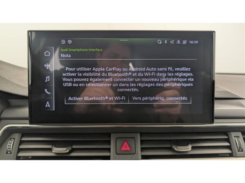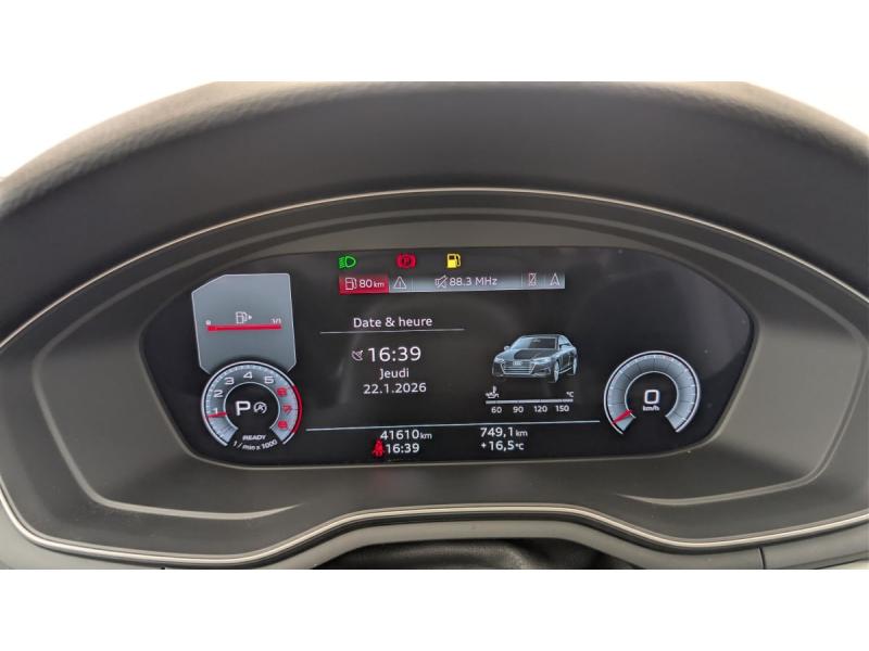 Assistance Assistant de feux de route Audi Drive Select Audi Sound System 10 HP incluant 1 HP central et 1 subwoofer,... Audi Virtual cockpit plus Crochet d'attelage Dossier de banquette AR rabattable en 3 parties 40 Fixation pour sièges enfants ISOFIX pour le siège... Navigation MMI plus avec MMI touch Pack Audi Lane Assist Pack Brillance Pack Eclairage ambiance Pack Rangement et Coffre Peinture métallisée Argent Fleuret Phares à LED, avec clignotants AR à LED dynamiques ... Sièges AV chauffants Suppression de l'inscription de la puissance/technologie ... Volant en cuir style 3 branches avec multifonctions plus