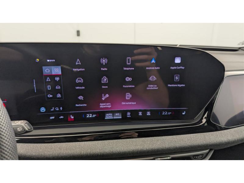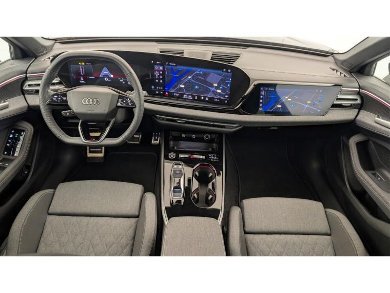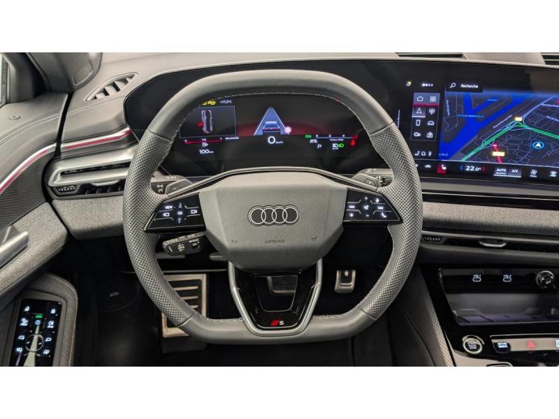 Airbag conducteur et passager avec désactivation de l'airbag du siège passagerAssistance au freinage d'urgence à l'AV Scanne la zone située devant le véhicule et peut, en fonction de la situation et de la vitesse, avertir de l'imminence d'une collision et déclencher les mesures de freinage appropriées. Les piétons Assistant d'évitement et assistant de braquageAssistant d'intersection AV Surveille la zone située devant et sur le côté du véhicule aux intersections et aux sorties de route à l'aide des capteurs radar intégrés à l'AV du véhicule. Dans les limites du système, iAudi connect Navigation & InfotainmentAudi Drive Select Permet de sélectionner différents modes de conduite: Efficiency, Confort, Dynamic, Lift, Individual. Les systèmes et équipements du véhicules s'adaptent suivant le mode sélectionnéAudi phone box lightAudi Virtual Cockpit PlusChâssis Sport Meilleure dynamique de conduite, une tenue de route agile et une allure sportive (Châssis abaissé de 20mm)Ciel de pavillon en tissu noirContrôle de pression des pneumatiquesDétection des panneaux de signalisation par caméraDossier de banquette AR rabattable à distance et en trois parties 40 : 20 : 40 ou complètementEléments de la console centrale Noir BrillantFixation de siège pour enfant i-Size côté passager AV et i-Size et Top Tether pour les sièges AR extérieursGarniture du tableau de bord, des contre-portes et des accoudoirs de portes en tissu KaskadeHayon de coffre à ouverture et fermeture électriqueIndicateur de perte de pression des pneumatiquesJantes style à 5 branches doubles en V, Gris Graphite, tournées brillantes 8,0J x 19, pneus 245/40 R19Limiteur de vitesse basé sur la détection de signalisation routièreNavigation MMI avec MMI touch Le système de navigation MMI plus avec MMI touch offre : - l'écran panoramique MMI avec technologie OLED, comprenant l'Audi virtual cockpit plus avec écran de 11,9 pouces ainsi que l'écran MMI touch de14,5" - systèPédalier et repose-pieds en acier inoxydablePack extérieur S linePack intérieur S line : Sièges AV chauffants Appui lombaires Application intérieures en style aluminium Sellerie tissu Kascade Eclairage d'ambiance plus 30 couleurs disponibles Inserts décoratifs en aluminium mat brossé Sièges AV à réglagPack Tech : Alerte de sortie de voie Climatisation automatique 3 zones Rétroviseur intérieur à réglage jour/nuit automatique Rétroviseurs extérieurs réglables dégivrants et rabattables électriquement à réglage jour/nuit auPréparation pour dispositif d'attelageRéception radio numérique (DAB)Réglage du volant manuelSécurité enfant commandée électriqueSièges Sport avec monogramme SVitrage Privacy : lunette AR, vitres de portières AR et vitres latérales AR surteintéesVolant multifonction S en cuir à trois branches avec palettes