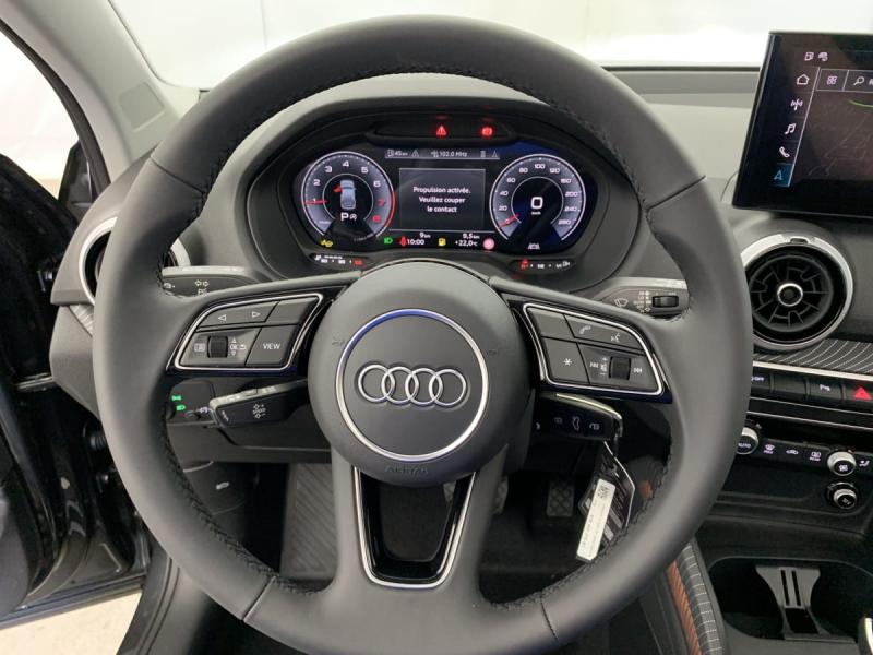 6 HPs à l'AVAirbags latéraux AV avec système d'airbags de têteAppuis lombaires à 4 axes pour les sièges AVAudi connect Remote & Control (pour MMI Radio plus)Audi Hold AssistAudi pre sense frontAudi Smartphone InterfaceAudi Virtual CockpitAvertissement de sortie de voieChâssis standardClé à fréquence radio sans SAFELOCKClimatisation automatique 2 zonesContrôle de pression de pneusDirection progressiveFeux AR à LEDJantes en aluminium, 5 branches design dynamique, contrastées gris, 7J x 18" avec pneus 215/50 R18MMI radio plus avec MMI touch réception radio de haute qualité, une réception radio numérique, un écran central tactile de 8,8", une interface Bluetooth pour la connexion d'un téléphone portable ainsi que 2 interfaces USB-C avec fonction de Moulures de seuil avec insert en aluminium, éclairéesPédalier standardProjecteurs AV à LEDRéception radio numérique DABRégulateur de vitesseRétroviseur intérieur jour/nuit automatiqueRétroviseurs extérieurs réglables, dégivrants et rabattables électriquement, jour/nuit automatiques des deux côtésSécurité enfants manuelle [4H3]Set de réparation pour pneusSièges AV à réglage manuelSièges AV SportSystème de lecture des panneaux de signalisation par caméraVolant en cuir style 3 branches avec multifonctions