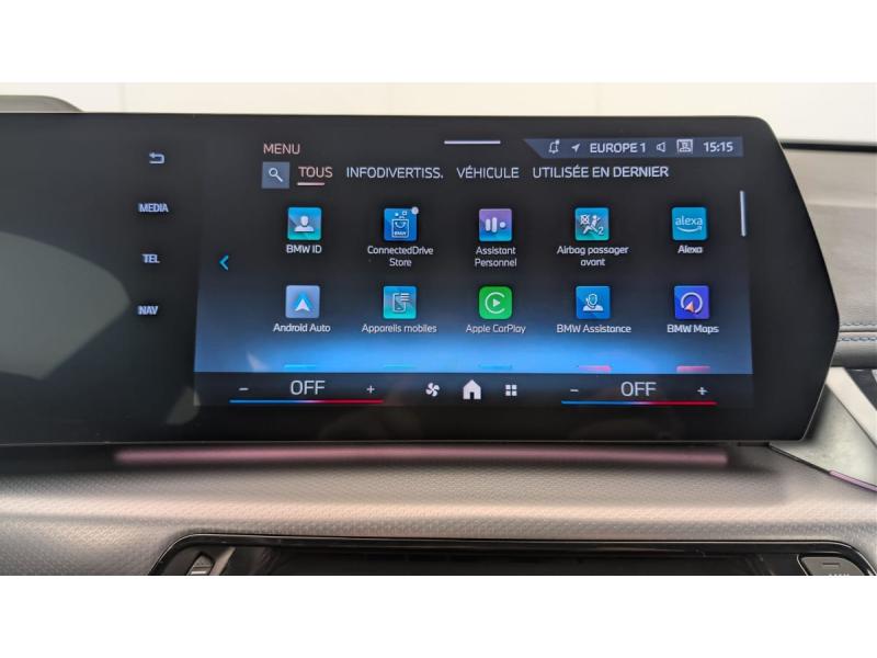 2 porte-gobelets sur la console centrale3ème feu stop LED intégré au spoiler AR5 placesABS - Système anti blocage des rouesAccoudoir central ARAccoudoir central AV avec panneau de commande intégréActive Guard Avertissement de franchissement de ligne avec impulsion sur la direction (>70km/h).Avertisseur de collision frontale avec intervention de freinage (3-210km/h).Avertisseur de présence d'un véhicule lors d'un changement de direction vers la gauche avec action suAirbag entre les deux sièges AV en cas de collision latéraleAirbag passager AV désactivable via la cléAirbags de tête à l'AV et aux places latérales ARAirbags frontaux conducteur et passager AVAirbags latéraux pour conducteur et passager AVAppuis-tête AV et latéraux AR réglables en hauteurAssistant de démarrage en côteBanquette AR rabattable 40/20/40BMW Digital (BMW Maps, RTTI sur itinéraire, Apple CarPlay, Android Auto, BMW Intelligent Personal Assistant)BMW EfficientDynamics Système de récupération de l'énergie au freinage, Fonction d'arrêt et de redémarrage automatique du moteur, Direction à assistance électrique Servotronic (assistance variable selon la vitesse)BMW Live Cockpit Navigation Plus avec Ecran WidescreenBMW Live Cockpit PlusBoîte de vitesses automatique 7 rapports avec palettes au volantBuse de lave-glace pour caméra de reculCapteur d'impact (Activation de l'airbag, des feux de détresse, de l'éclairage intérieur, Déverrouillage des portes, Activation de la borne batterie de sécurité)Carte SIM 4G LTE pour les Services ConnectedDriveCeintures de sécurité 3 points pour toutes les placesCiel de pavillon M AnthraciteClés radiocommandées à mémorisation automatique des réglages "Personal Profile" (x 2)Clignotants LED intégrés aux feux de jourCompartiment à bagages : 2 crochets de sac, filet sur panneau garuche, prise 12V, rangement additionel au modèle) sous plancher amovibleConnectivité téléphone Bluetooth avec interface USBConsole centrale avec insert noir brillantContour de vitres noir matContrôle automatique de la stabilité (ASC)Contrôle Dynamique de Traction DTCContrôle dynamique du freinage (DBC)Démarrage sans clé via le bouton Start/StopDésignation du modèle à droite du hayonDétecteur de pluie et allumage automatique des projecteursDirection assistéeEclairage de bienvenue autour du véhiculeEclairage de plaque d'immatriculation à LEDEléments extérieurs M SportEléments intérieur MEquipements supplémentaires Pack M SportESPFeux AR à LED intégrant les clignotantsFeux de sortie de porte AV (porte ouverte)Filtre à particules et catalyseur à oxydationFixations ISOFIX / i-Size pour les deux sièges AR extérieursFonction cargo : Réglage de l'inclinaison de la banquette AR à 12 degrés (volume de chargement supplémentaire d' environ 85-100 litres)Fonction Start&Stop automatiqueFonctionnalité "Follow Me Home" (éclairage d'accompagnement) : les feux de croisement restent allumés quelques instants une fois le contact coupéFrein de parking électromécanique avec fonction "Automatic Hold"Freinage de séchageGrilles de calandre cerclées de chrome avec barreaux verticaux noirsHotSpot Wi-FiHybridation légère 48V - Fonctionnalité e-Boost via moteur électrique de 19ch situé dans la boite de vitesseInjection directe Common RailInserts décoratifs Aluminium M HexacubeJantes en alliage léger 18" style 838 M Gris foncé. Bicolore 7.5 J x 18 pneus 225/55 R 18. Montage chaînes à neige impossible.Kit éclairage : Eclairage intérieur de l'accoudoir central Lampes de courtoisie Eclairage plancher AV et AR Eclairage du miroir de courtoisie Lampes de lecture centrales Eclairage coffre à bagages sur un côté Eclairage habitacle AV et ARKit de mobilité Plus - Bouteille avec liquide anti-crevaison - Compresseur avec alimentation autonome via batterie rechargeable - Système se fixant au centre de la jante avec maintient de pression automatique du pneu crevé durant la conduite - Simple d'utilisation et r&eKit rangement : Bac de rangement dans les portes AV et AR avec porte-bouteille Compartiment de rangement central Compartiment de rangement avec couvercle rabattable sous l'accoudoir central AV Crochets de vêtements ARLève-vitres AV/AR électriques avec commande par impulsion et sécurité enfantsMesure individuelle de pression des pneumatiquesMy Modes: 5 modes de conduite (Personnel, Efficient, Sport, Relax, Expressive)Norme General Safety Regulation 2 (GSR2)Notice d'utilisation de la voiture intégrée et carnet d'entretien électronique avec BMW Service HistoryOrdinateur de bord avec Check-Control et indicateur de température extérieurePare-choc AR avec inserts chromés en LPare-choc AV avec air curtains en noir matPerformance control : contrôle du moteur et interventions freinage pour améliorer l'agilité et la neutralité en viragePersonal eSIM Personal eSIM est la version électronique, intégrée au véhicule, de la carte SIM traditionnelle. Vous l'utilisez via un abonnement souscrit auprès d'un opérateur téléphonique et transformez ainsi votre BMW en pérPlanche de bord en similicuir Sensatec Habillage de la planche de bord en Sensatec noir avec surpiqûres grise (surpiqûres bleues en combinaison avec une sellerie Alcantara / Sensatec), Parties supérieures du tableau de bord et du panneau de portePoignées de portes affleurantesPrises de courant 12V dans la console centrale AV et dans le coffreRéduction catalytique via injection d'AdBlue (SCR)Régulateur de vitesse avec fonction de freinage et limiteur de vitesseRétroviseurs extérieurs chauffants avec rappels de clignotants intégrésRétroviseurs extérieurs couleur carrosserieRails de toit Shadow M Line brillantSélecteur de mode de conduite "Personal", "Efficient", "Sport", "Relax", "Expressive"Sellerie Alcantara / Veganza "Schwarz" avec surpiqûres contrastantes bleuesServices Après-vente connectés BMW TeleServices (durée de vie de la voiture) Appel Automatique Appel Manue