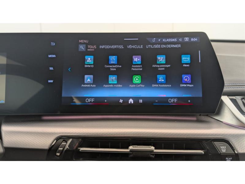 2 porte-gobelets sur la console centrale3ème feu stop LED intégré au spoiler AR5 placesABS - Système anti blocage des rouesAccoudoir central ARAccoudoir central AV avec panneau de commande intégréActive Guard Avertissement de franchissement de ligne avec impulsion sur la direction (>70km/h).Avertisseur de collision frontale avec intervention de freinage (3-210km/h).Avertisseur de présence d'un véhicule lors d'un changement de direction vers la gauche avec action suAirbag entre les deux sièges AV en cas de collision latéraleAirbag passager AV désactivable via la cléAirbags de tête à l'AV et aux places latérales ARAirbags frontaux conducteur et passager AVAirbags latéraux pour conducteur et passager AVAppuis-tête AV et latéraux AR réglables en hauteurAssistant de démarrage en côteBanquette AR rabattable 40/20/40BMW Digital (BMW Maps, RTTI sur itinéraire, Apple CarPlay, Android Auto, BMW Intelligent Personal Assistant)BMW EfficientDynamics Système de récupération de l'énergie au freinage, Fonction d'arrêt et de redémarrage automatique du moteur, Direction à assistance électrique Servotronic (assistance variable selon la vitesse)BMW Live Cockpit Navigation Plus avec Ecran WidescreenBoîte de vitesses automatique 7 rapports avec palettes au volantBuse de lave-glace pour caméra de reculCapteur d'impact (Activation de l'airbag, des feux de détresse, de l'éclairage intérieur, Déverrouillage des portes, Activation de la borne batterie de sécurité)Ceintures de sécurité 3 points pour toutes les placesCiel de pavillon M AnthraciteClés radiocommandées à mémorisation automatique des réglages "Personal Profile" (x 2)Clignotants LED intégrés aux feux de jourClimatisation automatique 2 zones Contrôle de la température et du volume d'air distribué avec 5 niveaux d'intensité, réglables séparément entre le conducteur et le passager. Fonctionnalité SYNC pour que les réglages du conductCommande électrique du hayon de coffreConnectivité téléphone BluetoothConsole centrale avec insert noir brillantContour de vitres noir matContrôle automatique de la stabilité (ASC)Contrôle de freinage en courbe CBCContrôle dynamique de stabilité DSCContrôle Dynamique de Traction DTCContrôle dynamique du freinage (DBC)Démarrage sans clé via le bouton Start/StopDésignation du modèle à droite du hayonDétecteur de pluie et allumage automatique des projecteursDirection assistéeDouble VANOS (système de distribution variable)Eclairage de bienvenue autour du véhiculeEclairage de plaque d'immatriculation à LEDEléments extérieurs M SportEléments intérieur MEquipements supplémentaires Pack M SportESPFeux AR à LED intégrant les clignotantsFeux de sortie de porte AV (porte ouverte)Filtre à particulesFixations ISOFIX / i-Size pour les deux sièges AR extérieursFonction cargo : Réglage de l'inclinaison de la banquette AR à 12 degrés (volume de chargement supplémentaire d' environ 85-100 litres)Fonction Start&Stop automatiqueFonctionnalité "Follow Me Home" (éclairage d'accompagnement) : les feux de croisement restent allumés quelques instants une fois le contact coupéFrein de parking électromécanique avec fonction "Automatic Hold"Freinage de séchageGrilles de calandre cerclées de chrome avec barreaux verticaux noirsHybridation légère 48V - Fonctionnalité e-Boost via moteur électrique de 19ch situé dans la boite de vitesseInjection haute pressionJantes en alliage léger 18" style 838 M Gris foncé. Bicolore 7.5 J x 18 pneus 225/55 R 18. Montage chaînes à neige impossible.Kit éclairage : Eclairage intérieur de l'accoudoir central Lampes de courtoisie Eclairage plancher AV et AR Eclairage du miroir de courtoisie Lampes de lecture centrales Eclairage coffre à bagages sur un côté Eclairage habitacle AV et ARKit de mobilité BMW Bouteille de mastic pour pneumatiques - compresseur électrique 12 V (connexion à une prise 12V) [2VC]Kit rangement : Bac de rangement dans les portes AV et AR avec porte-bouteille Compartiment de rangement central Compartiment de rangement avec couvercle rabattable sous l'accoudoir central AV Crochets de vêtements ARLève-vitres AV/AR électriques avec commande par impulsion et sécurité enfantsMesure individuelle de pression des pneumatiquesMy Modes: 5 modes de conduite (Personnel, Efficient, Sport, Relax, Expressive)Norme General Safety Regulation 2 (GSR2)Notice d'utilisation de la voiture intégrée et carnet d'entretien électronique avec BMW Service HistoryOrdinateur de bord avec Check-Control et indicateur de température extérieureParking Assistant Comprend l'option Caméra de recul. Manoeuvres de stationnemment en créneau et en bataille facilitées par mesure automatique, Assistant de marche AR/Auto-reversePerformance control : contrôle du moteur et interventions freinage pour améliorer l'agilité et la neutralité en viragePlanche de bord en similicuir Sensatec Habillage de la planche de bord en Sensatec noir avec surpiqûres grise (surpiqûres bleues en combinaison avec une sellerie Alcantara / Sensatec), Parties supérieures du tableau de bord et du panneau de portePoignées de portes affleurantesPrises de courant 12V dans la console centrale AV et dans le coffreRégulateur de vitesse avec fonction de freinage et limiteur de vitesseRétroviseurs extérieurs chauffants avec rappels de clignotants intégrésRails de toit Shadow M Line brillantSélecteur de mode de conduite "Personal", "Efficient", "Sport", "Relax", "Expressive"Sellerie Alcantara / Veganza "Schwarz" avec surpiqûres contrastantes bleuesServices Après-vente connectés BMW TeleServices (durée de vie de la voiture) Appel Automatique Appel Manuel Appel "BMW Assistance Teleservice Battery Guard Appel HotlineServices ConnectedDriveShadow Line M brillant Eléments en noir à haute brillance : - Panneaux de garnissage des montants B et C - Encadrement extérieur des vitres latérales - Pieds et triangles des rétroviseurs extérieurs - Rails