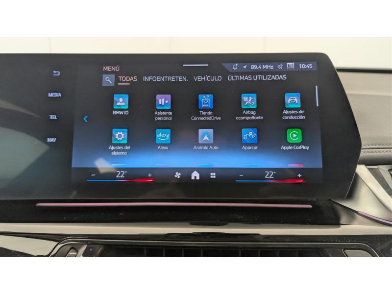 2 porte-gobelets sur la console centrale3ème feu stop LED intégré au spoiler AR5 placesABS - Système anti blocage des rouesAccoudoir central ARAccoudoir central AV avec panneau de commande intégréActive Guard Avertissement de franchissement de ligne avec impulsion sur la direction (>70km/h).Avertisseur de collision frontale avec intervention de freinage (3-210km/h).Avertisseur de présence d'un véhicule lors d'un changement de direction vers la gauche avec action suAirbag entre les deux sièges AV en cas de collision latéraleAirbag passager AV désactivable via la cléAirbags de tête à l'AV et aux places latérales ARAirbags frontaux conducteur et passager AVAirbags latéraux pour conducteur et passager AVAlarme antivolAppuis-tête AV et latéraux AR réglables en hauteurAssistant de démarrage en côteBanquette AR rabattable 40/20/40BMW Digital (BMW Maps, RTTI sur itinéraire, Apple CarPlay, Android Auto, BMW Intelligent Personal Assistant)BMW EfficientDynamics Système de récupération de l'énergie au freinage, Fonction d'arrêt et de redémarrage automatique du moteur, Direction à assistance électrique Servotronic (assistance variable selon la vitesse)BMW Live Cockpit Navigation Plus avec Ecran WidescreenBMW Live Cockpit PlusBoîte de vitesses automatique à double embrayage DKG7 à 7 rapportsCâble de recharge Professionnel Mode 3 (T2-T2) pour la recharge publique - 5 mètres Câble de recharge Professionnel de Mode 3 triphasé avec prises Type 2 - Type 2 destiné à la recharge sur bornes publiques ou privées. Peut être utilisé sur Capteur d'impact (Activation de l'airbag, des feux de détresse, de l'éclairage intérieur, Déverrouillage des portes, Activation de la borne batterie de sécurité)Carte SIM 4G LTE pour les Services ConnectedDriveCeintures de sécurité 3 points pour toutes les placesClés radiocommandées à mémorisation automatique des réglages "Personal Profile" (x 2)Clignotants LED intégrés aux feux de jourClimatisation automatique 2 zones Contrôle de la température et du volume d'air distribué avec 5 niveaux d'intensité, réglables séparément entre le conducteur et le passager. Fonctionnalité SYNC pour que les réglages du conductCommande électrique du hayon de coffreCompartiment à bagages : 2 crochets de sac, filet sur panneau garuche, prise 12V, rangement additionel au modèle) sous plancher amovibleConnectivité téléphone Bluetooth avec interface USBConsole centrale avec insert noir brillantContour de vitres noir matContrôle automatique de la stabilité (ASC)Contrôle de freinage en courbe CBCContrôle dynamique de stabilité DSCContrôle Dynamique de Traction DTCContrôle dynamique du freinage (DBC)Démarrage sans clé via le bouton Start/StopDésignation du modèle à droite du hayonDétecteur de pluie et allumage automatique des projecteursDirection assistéeEclairage de bienvenue autour du véhiculeEclairage de plaque d'immatriculation à LEDEléments extérieurs xLineESPFeux AR à LED intégrant les clignotantsFeux de sortie de porte AV (porte ouverte)Filtre à particulesFixations ISOFIX / i-Size pour les deux sièges AR extérieursFonction cargo : Réglage de l'inclinaison de la banquette AR à 12 degrés (volume de chargement supplémentaire d' environ 85-100 litres)Fonction Start&Stop automatiqueFonctionnalité "Follow Me Home" (éclairage d'accompagnement) : les feux de croisement restent allumés quelques instants une fois le contact coupéFrein de parking électromécanique avec fonction "Automatic Hold"Freinage de séchageGrilles de calandre cerclées de chrome avec barreaux verticaux noirsHotSpot Wi-FiInjection haute pressionInserts décoratifs brillant "Schwarz" soulignés de chrome perléKit éclairage : Eclairage intérieur de l'accoudoir central Lampes de courtoisie Eclairage plancher AV et AR Eclairage du miroir de courtoisie Lampes de lecture centrales Eclairage coffre à bagages sur un côté Eclairage habitacle AV et ARKit de mobilité Plus - Bouteille avec liquide anti-crevaison - Compresseur avec alimentation autonome via batterie rechargeable - Système se fixant au centre de la jante avec maintient de pression automatique du pneu crevé durant la conduite - Simple d'utilisation et r&eKit rangement : Bac de rangement dans les portes AV et AR avec porte-bouteille Compartiment de rangement central Compartiment de rangement avec couvercle rabattable sous l'accoudoir central AV Crochets de vêtements ARLève-vitres AV/AR électriques avec commande par impulsion et sécurité enfantsMesure individuelle de pression des pneumatiquesMy Modes: 3 modes de conduite (Personnel, Efficient, Sport)Notice d'utilisation de la voiture intégrée et carnet d'entretien électronique avec BMW Service HistoryOrdinateur de bord avec Check-Control et indicateur de température extérieurePare-choc AR avec inserts chromés en LPare-choc AV avec air curtains en noir matParking Assistant Comprend l'option Caméra de recul. Manoeuvres de stationnemment en créneau et en bataille facilitées par mesure automatique, Assistant de marche AR/Auto-reversePerformance control : contrôle du moteur et interventions freinage pour améliorer l'agilité et la neutralité en viragePersonal eSIM Personal eSIM est la version électronique, intégrée au véhicule, de la carte SIM traditionnelle. Vous l'utilisez via un abonnement souscrit auprès d'un opérateur téléphonique et transformez ainsi votre BMW en pérPlanche de bord en similicuir Sensatec Habillage de la planche de bord en Sensatec noir avec surpiqûres grise (surpiqûres bleues en combinaison avec une sellerie Alcantara / Sensatec), Parties supérieures du tableau de bord et du panneau de portePoignées de portes affleurantesPorts USB Type C pour la recharge à l'AV (x2) et recharge à l'AR (x2)Prises de courant 12V dans la console centrale AV et dans le coffreProtection acoustique pour piétons Son généré artificiellement lors de la conduite électrique jusqu'à 30 km/h pour prot