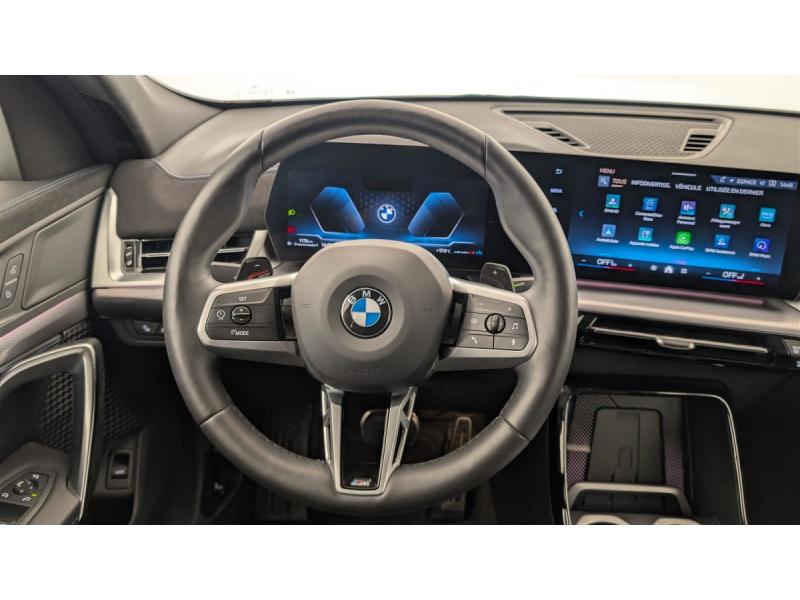 2 porte-gobelets sur la console centrale3ème feu stop LED intégré au hayon AR5 placesABS - Système anti blocage des rouesAccoudoir central ARAccoudoir central AV avec panneau de commande intégréActive Guard Avertissement de franchissement de ligne. Avertisseur de collision frontale. Avertisseur de présence d'un véhicule lors d'un changement de direction vers la gauche. Avertisseur d'intersection. Avertisseur présence piéton/cycliste lors d'unAirbag entre les deux sièges AV en cas de collision latéraleAirbag passager AV désactivable via la cléAirbags de tête à l'AV et aux places latérales ARAirbags frontaux conducteur et passager AVAirbags latéraux conducteur et passager AVAlarme antivol Surveillance des portes, coffre et capot moteur, protection de l'habitacle, détecteur de soulèvement et sirène.Appel d'Urgence Intelligent (durée de vie de la voiture) Appel automatique vers le centre d'assistance BMW en cas d'accident. Touche SOS pour Appel d'Urgence manuel. Les données importantes sont automatiquement transmises aux secours : identification et localisationAppuis-tête AV et AR réglables en hauteurAssistant de démarrage en côteAssistant dynamique de motricité (DTC)Banquette AR rabattable 40/20/40BMW Digital (BMW Maps, RTTI sur itinéraire, Apple CarPlay, Android Auto, BMW Intelligent Personal Assistant)BMW EfficientDynamics Système de récupération de l'énergie au freinage, Fonction d'arrêt et de redémarrage automatique du moteur, Direction à assistance électrique Servotronic (assistance variable selon la vitesse)BMW Live Cockpit Navigation Plus avec Écran BMW Curved DisplayBoîte de vitesses automatique 7 rapports avec palettes au volantBuse de lave-glace pour caméra de reculCapacité du reservoir augmentée Capacité augmentée de 9LCapteur d'impact (Activation de l'airbag, des feux de détresse, de l'éclairage intérieur, Déverrouillage des portes, Activation de la borne batterie de sécurité)Carte SIM 4G LTE pour les Services BMW ConnectedDriveCeintures de sécurité 3 points pour toutes les placesCiel de pavillon M AnthraciteClés radiocommandées à mémorisation automatique des réglages "Personal Profile" (x 2)Clignotants LED intégrés aux feux de jourClimatisation automatique bi-zone avec microfiltreCommande électrique du hayonCompartiment à bagages : 2 crochets de sac, filet sur panneau gauche, prise 12V rangement additionel (volume spécifique au modèle) sous plancher amovibleConnectivité BluetoothConsole centrale avec insert noir brillantContrôle automatique de la stabilité (ASC)Contrôle de freinage en courbe CBCContrôle de stabilité dynamique (DSC) avec dotation élargieContrôle dynamique du freinage (DBC)Démarrage sans clé via le bouton Start/StopDésignation du modèle "X2" sur le hayon à gauche et version à droiteDétecteur de pluie et allumage automatique des projecteursDirection assistéeEclairage de bienvenue autour du véhiculeEclairage de plaque d'immatriculation à LEDEcran BMW Curved DisplayEléments extérieurs M SportEléments intérieurs M SportFeux AR à LED intégrant les clignotantsFeux de sortie de porte AV (porte ouverte)Fixations ISOFIX / i-Size pour les deux sièges AR extérieurs et siège passagerFonction cargo : Réglage de l'inclinaison de la banquette AR à 12 degrés (volume de chargement supplémentaire d' environ 85-100 litres)Fonction Start&Stop automatiqueFonctionnalité "Follow Me Home" (éclairage d'accompagnement) : les feux de croisement restent allumés quelques instants une fois le contact coupéFrein de parking électromécanique avec fonction "Automatic Hold"Freinage de séchageGrilles de calandre façon Mesh Effect avec contour cerclées de chromeInserts décoratifs Aluminium M Hexacube clairInterface Wi-FiJantes en alliage léger 19" style 871 M 8 J x 19 / pneus 245/45 R 19 Gris foncé. Bicolore Montage chaînes à neige impossible.Kit éclairage : Lampes de courtoisie, Eclairage intérieur de l'accoudoir central AV, Eclairage habitacle AV et AR, éclairage plancher AV et AR, éclairage du miroir de courtoisie , lampes de lecture centrales, éclairage du coffre à bagages sur un côKit de mobilité Plus - Bouteille avec liquide anti-crevaison - Compresseur avec alimentation autonome via batterie rechargeable - Système se fixant au centre de la jante avec maintient de pression automatique du pneu crevé durant la conduite - Simple d'utilisation et r&eKit rangement - bac de rangement dans les portes AV et AR avec porte-bouteille - compartiment de rangement central - compartiment de rangement avec couvercle rabattable sous l'accoudoir central AV - crochets de vêtements ARLève-vitres AV/AR électriques avec commande par impulsion et sécurité enfantsMesure individuelle de pression des pneumatiquesMoteur TwinPower Turbo diesel 4 cylindres Turbocompresseur,Injection directe Common Rail. Filtre à particule et catalyseur à oxydation. Réduction catalytique via injection d'AdBlue (SCR) .Réservoir 14LMy Modes: 5 modes de conduite (Personnel, Efficient, Sport)Notice d'utilisation de la voiture intégrée et carnet d'entretien électronique avec BMW Service HistoryOrdinateur de bord avec Check-Control et indicateur de température extérieureParking Assistant Système de manoeuvres de stationnemment en créneau et en bataille automatique, Caméra de recul avec lignes interactives de trajectoires. Fonction zoom pour attelage, Radars de recul AV & AR (PDC). Fonction PDC actif et aide au parking latéral, AssisPerformance control : contrôle du moteur et interventions freinage pour améliorer l'agilité et la neutralité en viragePersonal eSIM Personal eSIM est la version électronique, intégrée au véhicule, de la carte SIM traditionnelle. Vous l'utilisez via un abonnement souscrit auprès d'un opérateur téléphonique et transformez ainsi votre BMW en pérPlanche de bord en similicuir Sensatec Habillage de la planche de bord en Sensatec noir avec surpiqûres grise (surpiqûres bleues e