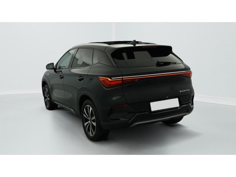 2 x clé intelligente2 x port de charge USB AR (1 x Type A, 1 x Type C)2 x port de charge USB AV (1 x Type A, 1 x Type C)360° caméra4 x lève-vitre à impulsion avec fonction anti-pincementAccoudoir central avec double porte-gobelet, AV et ARAirbag central AVAirbag conducteurAirbag latéral AVAirbag passager AV avec contacteur de désactivationAirbag rideau latéral AVAlerte de trafic transversal AR (RCTA) et Freinage en cas de trafic transversal AR (RCTB)Apple CarPlay / Android AutoAppuie-tête central des sièges ARArrêt confort (CST)Assistance au changement de voie (LCA)Assistance au maintien sur la voie (LKA)Assistance feux de routeAvertissement d'ouverture de porte (DOW)Avertissement de collision AR (RCW)Avertissement de collision AV (FCW)Boîte à gants éclairéCharge sans fil de smartphoneChargeur embarqué 11 kW (OBC)Cloud service - BYD APPCommande vocale intelligente - "Hi, BYD"Contrôle de descente en pente (HDC)Détection d'angle mort (BSD)Distribution électronique de la force de freinage (EBD)Eclairage d'accompagnementEclairage d'ambiance rythme multicolore (Panneau de porte et tablette)Eclairage d'ambiance rythme multicolore (Poignée de porte)Eclairage de coffreEclairage de la console centraleEclairages de portes AV à LEDEclairages de sol dans les rétroviseurs extérieursEclairages de sol de siège AVEcran tactile rotatif électrique 15,6"Entrée sans clé et démarrage sans cléFeux AR à LEDFeux de jour à LEDFonction Véhicule à chargement (V2L)Frein de stationnement intégré (IPB)Freinage d'urgence automatique (AEB)Hayon électriqueInformations intelligentes de limite de vitesse (ISLI) et Contrôle intelligent de limite de vitesseISOFIX et i-Size, siège passager AV et sièges AR externesJantes en alliage 18"Lampe de lecture à LED AVLampe de lecture à LED latérale ARMaintien automatique du véhicule (AVH)Maintien d'urgence dans la voie (ELK)Modes de conduite : Eco, Normal, SportNavigationPare-soleil AV avec éclairage du miroirPhares à allumage automatiquePhares à LEDPneus 235/50 R18Pompe à chaleurProgramme électronique de stabilité (ESP)Régulateur de vitesse adaptatif (ACC) et régulateur de vitesse intelligent (ICC)Rétroviseur à atténuation automatiqueRétroviseurs extérieurs réglables électriquement, rabattables électriquement, chauffantsRadars de stationnement ARRadars de stationnement AVRadio DAB et Radio FMReconnaissance des panneaux de signalisation (TSR)Siège conducteur avec appuie-tête intégréSiège du conducteur avec réglage électrique dans 6 directionsSiège du passager AV avec réglage électrique dans 4 directionsSiège passager AV avec appuie-tête intégréSièges AR rabattables séparément - 40:60Sièges AV chauffantsSortie électrique 12 VSystème antipatinage (TCS)Système audio à 8 HPSystème d'appel d'urgence E-CallSystème de frein de stationnement électrique (EPB)Système de freinage anti-blocage (ABS)Système de surveillance de la pression des pneus (TPMS)Tableau de bord TFT 5" tout LCDTablette AR du coffreToit ouvrant panoramique avec fonction anti-pincement, avec pare-soleil à réglage électriqueToit panoramique en verreVerrouillage de sécurité enfant mécaniqueVolant multifonction similicuir vegan