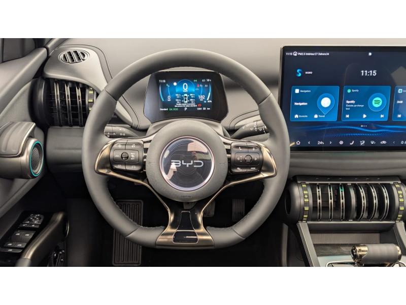 2 x clé intelligente2 x port de charge USB AR (1 x Type A, 1 x Type C)2 x port de charge USB AV (1 x Type A, 1 x Type C)360° caméra4 x lève-vitre à impulsion avec fonction anti-pincementAccoudoir central avec double porte-gobelet, AV et ARAirbag central AVAirbag conducteurAirbag latéral AVAirbag passager AV avec contacteur de désactivationAirbag rideau latéral AVAlerte de trafic transversal AR (RCTA) et Freinage en cas de trafic transversal AR (RCTB)Apple CarPlay / Android AutoAppuie-tête central des sièges ARArrêt confort (CST)Assistance au changement de voie (LCA)Assistance au maintien sur la voie (LKA)Assistance feux de routeAvertissement d'ouverture de porte (DOW)Avertissement de collision AR (RCW)Avertissement de collision AV (FCW)Boîte à gants éclairéCharge sans fil de smartphoneChargeur embarqué 11 kW (OBC)Cloud service - BYD APPCommande vocale intelligente - "Hi, BYD"Contrôle de descente en pente (HDC)Détection d'angle mort (BSD)Distribution électronique de la force de freinage (EBD)Eclairage d'accompagnementEclairage d'ambiance rythme multicolore (Panneau de porte et tablette)Eclairage d'ambiance rythme multicolore (Poignée de porte)Eclairage de coffreEclairage de la console centraleEclairages de portes AV à LEDEclairages de sol dans les rétroviseurs extérieursEclairages de sol de siège AVEcran tactile rotatif électrique 15,6"Entrée sans clé et démarrage sans cléFeux AR à LEDFeux de jour à LEDFonction Véhicule à chargement (V2L)Frein de stationnement intégré (IPB)Freinage d'urgence automatique (AEB)Hayon électriqueInformations intelligentes de limite de vitesse (ISLI) et Contrôle intelligent de limite de vitesseISOFIX et i-Size, siège passager AV et sièges AR externesJantes en alliage 18"Lampe de lecture à LED AVLampe de lecture à LED latérale ARMaintien automatique du véhicule (AVH)Maintien d'urgence dans la voie (ELK)Modes de conduite : Eco, Normal, SportNavigationPare-soleil AV avec éclairage du miroirPhares à allumage automatiquePhares à LEDPneus 235/50 R18Pompe à chaleurProgramme électronique de stabilité (ESP)Régulateur de vitesse adaptatif (ACC) et régulateur de vitesse intelligent (ICC)Rétroviseur à atténuation automatiqueRétroviseurs extérieurs réglables électriquement, rabattables électriquement, chauffantsRadars de stationnement ARRadars de stationnement AVRadio DAB et Radio FMReconnaissance des panneaux de signalisation (TSR)Siège conducteur avec appuie-tête intégréSiège du conducteur avec réglage électrique dans 6 directionsSiège du passager AV avec réglage électrique dans 4 directionsSiège passager AV avec appuie-tête intégréSièges AR rabattables séparément - 40:60Sièges AV chauffantsSortie électrique 12 VSystème antipatinage (TCS)Système audio à 8 HPSystème d'appel d'urgence E-CallSystème de frein de stationnement électrique (EPB)Système de freinage anti-blocage (ABS)Système de surveillance de la pression des pneus (TPMS)Tableau de bord TFT 5" tout LCDTablette AR du coffreToit ouvrant panoramique avec fonction anti-pincement, avec pare-soleil à réglage électriqueToit panoramique en verreVerrouillage de sécurité enfant mécaniqueVolant multifonction similicuir vegan