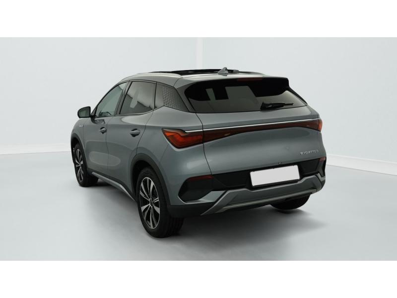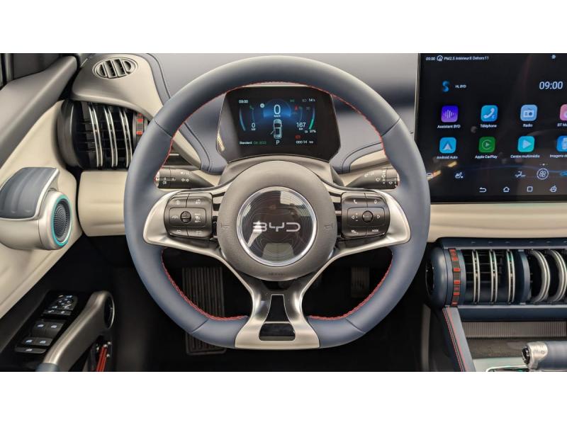 2 x clé intelligente2 x port de charge USB AR (1 x Type A, 1 x Type C)2 x port de charge USB AV (1 x Type A, 1 x Type C)360° caméra4 x lève-vitre à impulsion avec fonction anti-pincementAccoudoir central avec double porte-gobelet, AV et ARAirbag central AVAirbag conducteurAirbag latéral AVAirbag passager AV avec contacteur de désactivationAirbag rideau latéral AVAlerte de trafic transversal AR (RCTA) et Freinage en cas de trafic transversal AR (RCTB)Apple CarPlay / Android AutoAppuie-tête central des sièges ARArrêt confort (CST)Assistance au changement de voie (LCA)Assistance au maintien sur la voie (LKA)Assistance feux de routeAvertissement d'ouverture de porte (DOW)Avertissement de collision AR (RCW)Avertissement de collision AV (FCW)Boîte à gants éclairéCharge sans fil de smartphoneChargeur embarqué 11 kW (OBC)Cloud service - BYD APPCommande vocale intelligente - "Hi, BYD"Contrôle de descente en pente (HDC)Détection d'angle mort (BSD)Distribution électronique de la force de freinage (EBD)Eclairage d'accompagnementEclairage d'ambiance rythme multicolore (Panneau de porte et tablette)Eclairage d'ambiance rythme multicolore (Poignée de porte)Eclairage de coffreEclairage de la console centraleEclairages de portes AV à LEDEclairages de sol dans les rétroviseurs extérieursEclairages de sol de siège AVEcran tactile rotatif électrique 15,6"Entrée sans clé et démarrage sans cléFeux AR à LEDFeux de jour à LEDFonction Véhicule à chargement (V2L)Frein de stationnement intégré (IPB)Freinage d'urgence automatique (AEB)Hayon électriqueInformations intelligentes de limite de vitesse (ISLI) et Contrôle intelligent de limite de vitesseISOFIX et i-Size, siège passager AV et sièges AR externesJantes en alliage 18"Lampe de lecture à LED AVLampe de lecture à LED latérale ARMaintien automatique du véhicule (AVH)Maintien d'urgence dans la voie (ELK)Modes de conduite : Eco, Normal, SportNavigationPare-soleil AV avec éclairage du miroirPhares à allumage automatiquePhares à LEDPneus 235/50 R18Pompe à chaleurProgramme électronique de stabilité (ESP)Régulateur de vitesse adaptatif (ACC) et régulateur de vitesse intelligent (ICC)Rétroviseur à atténuation automatiqueRétroviseurs extérieurs réglables électriquement, rabattables électriquement, chauffantsRadars de stationnement ARRadars de stationnement AVRadio DAB et Radio FMReconnaissance des panneaux de signalisation (TSR)Siège conducteur avec appuie-tête intégréSiège du conducteur avec réglage électrique dans 6 directionsSiège du passager AV avec réglage électrique dans 4 directionsSiège passager AV avec appuie-tête intégréSièges AR rabattables séparément - 40:60Sièges AV chauffantsSortie électrique 12 VSystème antipatinage (TCS)Système audio à 8 HPSystème d'appel d'urgence E-CallSystème de frein de stationnement électrique (EPB)Système de freinage anti-blocage (ABS)Système de surveillance de la pression des pneus (TPMS)Tableau de bord TFT 5" tout LCDTablette AR du coffreToit ouvrant panoramique avec fonction anti-pincement, avec pare-soleil à réglage électriqueToit panoramique en verreVerrouillage de sécurité enfant mécaniqueVolant multifonction similicuir vegan