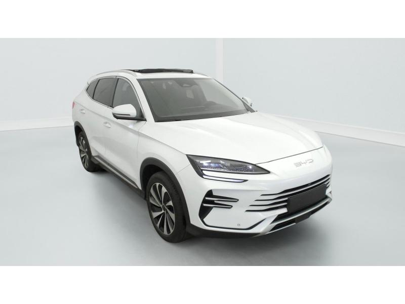 Aérateurs aux places ARABSAccès et démarrage sans cléAccoudoir central AR avec 2 porte-gobeletsAccoudoir central AV, 2 porte-gobeletsAffichage tête haute (HUD)Aide au changement de voie (LCA)Aide au démarrage en côte (HHC)Aide au maintien dans la voie (LDA)Aide d'urgence au maintien dans la voie (ELKA)Airbag central AVAirbag frontal conducteurAirbag frontal passager AV (déconnectable)Airbags latéraux AVAirbags rideauxAlerte de franchissement involontaire de ligne (LDW)Alerte de risque de collision AR (RCW)Alerte de risque de collision AV (FCW)Alerte de trafic transversal AR (RCTA) et freinage en cas de trafic transversal AR (RCTB)Alerte de trafic transversal AV (FCTA) et freinage en cas de trafic transversal AV (FCTB)Alerte prédictive de risque de collision (PCW)Appel d'urgence (eCall)Appuie-têtes AR réglables en hauteurAppuie-têtes AV intégrés aux dossiers de siègesArrêt confort (CST)Avertissement d'ouverture de porte (DOW)Banquette AR avec dossiers rabattables 40/60Boîte de vitesse automatique à variation continueCache-bagagesCaméras à vision panoramique 360°Ceinture de sécurité centrale AR 3 points avec verrouillage d'urgenceCeintures de sécurité AV 3 points avec prétesionneurs et limiteurs d'effortCeintures de sécurité latérales AR 3 points avec prétensionneursChargeur embarqué 11kW (OBC)Climatisation automatiqueCommande vocale intelligente "Hi, BYD"Commutation automatique feux de route/croisement (HMA)Compatibilité Android Auto et Apple CarPlay sans filConnectivité 4G embarquée (10 ans de service cloud sont offerts à compter de la première activation, avec 1,0 GB de données de divertissement par mois gratuites pendant les 2 premières années à compter de la première activation)Contrôle d'adhérence en descente (HDC)Contrôle de décélération au stationnement (CDP)Contrôle de la dynamique du véhicule (VDC)Contrôle de limitation de vitesse intelligent (ISLC)Détection d'angles morts (BSD)Détection de présence d'enfant (DPC)Direction assistéeEclairage d'accueil dynamiqueEclairage d'ambiance personnalisable et dynamique (réagissant au rythme)Eclairage de courtoisie intégré dans les rétroviseurs extérieursEclairage de l'espace aux pieds AVEclairage des portes AV à LEDEcran d'infodivertissement tactile 15,6" électriquement rotatifESPEssuie-glaces AV automatiques avec détecteur de pluieFeu antibrouillard ARFeux AR avec signature lumineuse à LEDFeux de jour à LEDFiltre habitacle PM2.5Fixations ISOFIX (i-Size) aux places latérales AR et passager AVFonction "Auto hold" (maintien automatique du frein de stationnement)Fonction "Follow me home" (temporisation de l'éclairage extérieur)Fonction "Vehicle-to-Load" (V2L)Frein de stationnement électrique (EPB)Freinage d'urgence automatique (AEB)Hayon électriqueInstrumentation numérique avec écran 12,3"Jantes alliage bi-ton 19"Lève-vitres AV/AR électriques et séquentiels avec fonction anti-pincementLiseuses AR à LEDLiseuses AV à LEDPare-brise anti-UV avec isolation phonique et thermiquePare-soleils AV avec miroirs de courtoisie éclairésPrévention de sortie de voie (LDP)Prise 12VProjecteurs LED, avec allumage automatique des feux de croisementRégulateur de vitesse adaptatif (ACC) et régulateur de vitesse intelligent (ICC)Répartiteur électronique de la force de freinage (EBD)Rétroviseur intérieur à commutation jour/nuit automatiqueRétroviseurs extérieurs réglables électriquement, rabattables électriquement, chauffantsRadars de stationnement ARRadars de stationnement AVRadio FM et numérique terrestre (DAB+)Rails de toit aluminiumRecharge de smartphone par induction (15W / 15W)Reconnaissance des panneaux de signalisation (TSR)Sélecteur de modes de conduite (Eco, Normal, Sport et Snow)Service cloud - application BYD (10 ans de service cloud sont offerts à compter de la première activation, avec 1,0 Go de données de divertissement par mois gratuites pendant les 2 premières années à compter de la première activation)Servo-frein hydraulique (HBB)Siège conducteur chauffant et ventilé, avec mémorisation des réglagesSiège conducteur réglable électriquement (8 directions)Siège passager AV avec ventilation et chauffageSiège passager AV réglable électriquement (4 directions)Système antipatinage (TCS)Système antivolSystème audio premium Infinity avec 10 HPSystème d'assistance au freinage hydraulique (HBA)Système de contrôle anti-renversement (RMI)Système de gestion de la fatigue du conducteur (DFM)Système de priorité au freinage (BOS)Système de purification d'air PM2.5Système de surveillance de la pression des pneus (TPMS)Toit ouvrant panoramique avec fonction anti-pincement et vélum occultant électriqueVerrouillage automatique des portesVerrouillage de sécurité enfant manuelVitres latérales AR et lunette AR surteintéesVolant chauffantVolant multifonction similicuir vegan