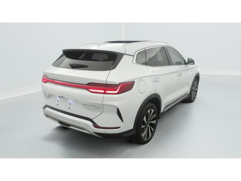 Aérateurs aux places ARABSAccès et démarrage sans cléAccoudoir central AR avec 2 porte-gobeletsAccoudoir central AV, 2 porte-gobeletsAffichage tête haute (HUD)Aide au changement de voie (LCA)Aide au démarrage en côte (HHC)Aide au maintien dans la voie (LDA)Aide d'urgence au maintien dans la voie (ELKA)Airbag central AVAirbag frontal conducteurAirbag frontal passager AV (déconnectable)Airbags latéraux AVAirbags rideauxAlerte de franchissement involontaire de ligne (LDW)Alerte de risque de collision AR (RCW)Alerte de risque de collision AV (FCW)Alerte de trafic transversal AR (RCTA) et freinage en cas de trafic transversal AR (RCTB)Alerte de trafic transversal AV (FCTA) et freinage en cas de trafic transversal AV (FCTB)Alerte prédictive de risque de collision (PCW)Appel d'urgence (eCall)Appuie-têtes AR réglables en hauteurAppuie-têtes AV intégrés aux dossiers de siègesArrêt confort (CST)Avertissement d'ouverture de porte (DOW)Banquette AR avec dossiers rabattables 40/60Boîte de vitesse automatique à variation continueCache-bagagesCaméras à vision panoramique 360°Ceinture de sécurité centrale AR 3 points avec verrouillage d'urgenceCeintures de sécurité AV 3 points avec prétesionneurs et limiteurs d'effortCeintures de sécurité latérales AR 3 points avec prétensionneursChargeur embarqué 11kW (OBC)Climatisation automatiqueCommande vocale intelligente "Hi, BYD"Commutation automatique feux de route/croisement (HMA)Compatibilité Android Auto et Apple CarPlay sans filConnectivité 4G embarquée (10 ans de service cloud sont offerts à compter de la première activation, avec 1,0 GB de données de divertissement par mois gratuites pendant les 2 premières années à compter de la première activation)Contrôle d'adhérence en descente (HDC)Contrôle de décélération au stationnement (CDP)Contrôle de la dynamique du véhicule (VDC)Contrôle de limitation de vitesse intelligent (ISLC)Détection d'angles morts (BSD)Détection de présence d'enfant (DPC)Direction assistéeEclairage d'accueil dynamiqueEclairage d'ambiance personnalisable et dynamique (réagissant au rythme)Eclairage de courtoisie intégré dans les rétroviseurs extérieursEclairage de l'espace aux pieds AVEclairage des portes AV à LEDEcran d'infodivertissement tactile 15,6" électriquement rotatifESPEssuie-glaces AV automatiques avec détecteur de pluieFeu antibrouillard ARFeux AR avec signature lumineuse à LEDFeux de jour à LEDFiltre habitacle PM2.5Fixations ISOFIX (i-Size) aux places latérales AR et passager AVFonction "Auto hold" (maintien automatique du frein de stationnement)Fonction "Follow me home" (temporisation de l'éclairage extérieur)Fonction "Vehicle-to-Load" (V2L)Frein de stationnement électrique (EPB)Freinage d'urgence automatique (AEB)Hayon électriqueInstrumentation numérique avec écran 12,3"Jantes alliage bi-ton 19"Lève-vitres AV/AR électriques et séquentiels avec fonction anti-pincementLiseuses AR à LEDLiseuses AV à LEDPare-brise anti-UV avec isolation phonique et thermiquePare-soleils AV avec miroirs de courtoisie éclairésPrévention de sortie de voie (LDP)Prise 12VProjecteurs LED, avec allumage automatique des feux de croisementRégulateur de vitesse adaptatif (ACC) et régulateur de vitesse intelligent (ICC)Répartiteur électronique de la force de freinage (EBD)Rétroviseur intérieur à commutation jour/nuit automatiqueRétroviseurs extérieurs réglables électriquement, rabattables électriquement, chauffantsRadars de stationnement ARRadars de stationnement AVRadio FM et numérique terrestre (DAB+)Rails de toit aluminiumRecharge de smartphone par induction (15W / 15W)Reconnaissance des panneaux de signalisation (TSR)Sélecteur de modes de conduite (Eco, Normal, Sport et Snow)Service cloud - application BYD (10 ans de service cloud sont offerts à compter de la première activation, avec 1,0 Go de données de divertissement par mois gratuites pendant les 2 premières années à compter de la première activation)Servo-frein hydraulique (HBB)Siège conducteur chauffant et ventilé, avec mémorisation des réglagesSiège conducteur réglable électriquement (8 directions)Siège passager AV avec ventilation et chauffageSiège passager AV réglable électriquement (4 directions)Système antipatinage (TCS)Système antivolSystème audio premium Infinity avec 10 HPSystème d'assistance au freinage hydraulique (HBA)Système de contrôle anti-renversement (RMI)Système de gestion de la fatigue du conducteur (DFM)Système de priorité au freinage (BOS)Système de purification d'air PM2.5Système de surveillance de la pression des pneus (TPMS)Toit ouvrant panoramique avec fonction anti-pincement et vélum occultant électriqueVerrouillage automatique des portesVerrouillage de sécurité enfant manuelVitres latérales AR et lunette AR surteintéesVolant chauffantVolant multifonction similicuir vegan