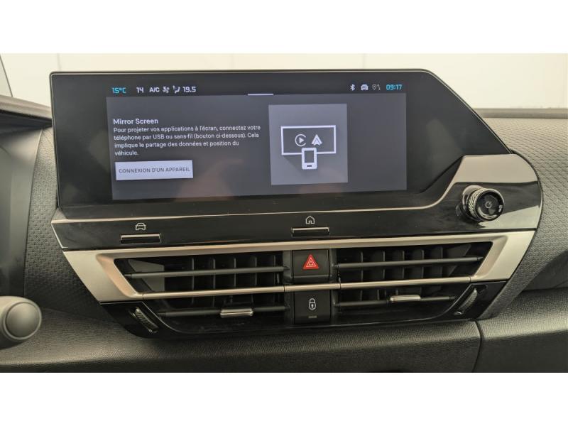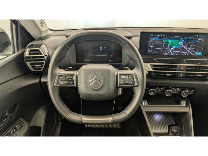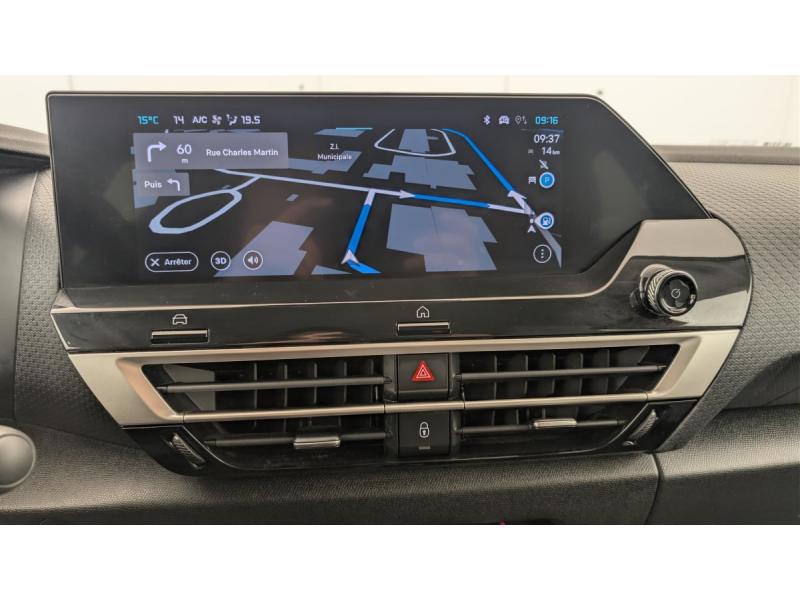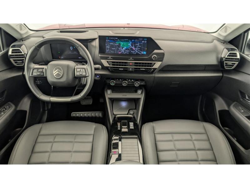 2 prises USB au rang 1 (1 type C + 1 type A) + 1 prise USB en rang 2 (type A)Aérateurs centraux en rang 2ABS + AFU + ESP + REFAccès et démarrage mains libres Proximity 2 Télécommandes 3 boutons (verrouillage, coffre et déverrouillage)Accoudoir central AR avec trappe à skisAide au démarrage en penteAide au stationnement ARAide au stationnement AV et latéralAirbags frontaux, latéraux AV et rideauxBanquette AR fractionnable 2/3 - 1/3Climatisation automatique bi-zoneConsole centrale haute avec rangements et accoudoirCoques de rétroviseurs extérieurs Noir BrillantDétection de sous-gonflageDirection assistéeEclairage d'accompagnement sous les rétroviseurs extérieursEcran central 10" tactile: - Système audio numérique (DAB) 6 HPs - Apple CarPlay et Android Auto sans fil - Reconnaissance vocale - Kit mains libres Bluetooth - Boîtier télématique : Appel d'urgenceElargisseurs d'aile et bas de caisse Noir MatEssuie-vitre AV automatiqueFeux AR à LED avec signature lumineuseFeux diurnes à LED avec signature lumineuseFrein de stationnement électrique automatiqueGarnissage Toile enduite Noir/Toile enduite Gris Clair Ambiance Metropolitan Grey + Sièges Advanced ComfortJantes alliage 18" AMBER DiamantéesKit de dépannage provisoire de pneumatiquesLève-vitres AV et AR électriques et séquentielsPack Drive Assist : Commutation automatique des feux de route Système de surveillance d'angle mort Active Safety Brake 2.0 Fonctionne à l'aide d'un Radar de 7 à 140 km/h, même de nuit et détecte les cyclistes Reconnaissance étendue des panneauPack Navigation Connectée : Top Rear Vision de la caméra de recul Navigation 3D Connectée sur écran central 10'' tactile - Système de navigation TomTom - Reconnaissance vocale avec langage naturel - Interface personnalisable avec Widgets Interface persPack Safety : Allumage automatique des feux de croisement Régulateur-limiteur de vitesse Coffee Break Alert Alerte attention conducteur Alerte Risque Collision Alerte active de Franchissement Involontaire de ligne Reconnaissance des panneaux de vitesse et recommandation Témoin de non-Plancher de coffre à 2 positionsPoche aumônière au dos des sièges AVPoignées de portes extérieures couleur caisseProjecteurs LEDRétroviseur intérieur électrochromeRétroviseurs extérieurs électriques et dégivrantsRétroviseurs extérieurs rabattables électriquementSiège conducteur avec réglage lombaireSièges conducteur et passager réglables en hauteurSuspension Citroën Advanced ComfortVitres AR et lunette AR surteintéesVolant cuir pleine fleurVolant réglable en hauteur et en profondeur