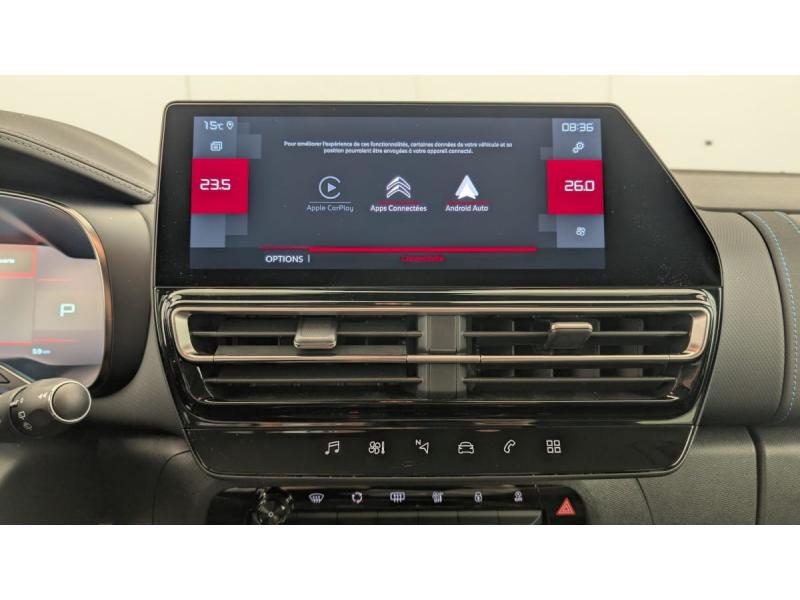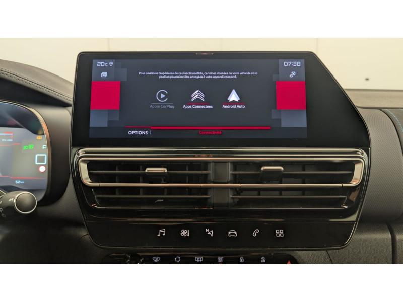 3 sièges AR indépendants, coulissants, inclinables et escamotablesABS + AFU + ESP + REFAccès mains libresAide au stationnement ARAide au stationnement AVAirbags frontaux AV, latéraux AV et rideauxAllumage automatique des feux de croisementApple CarPlay et Android AutoBarres de toitBoîte automatique 8 rapportsBoîtier télématique : Appel d'urgence et Citroën AssistanceCaméra de recul avec Top Rear VisionClimatisation automatique bizoneCombiné numérique 12,3" personnalisableCondamnation centraliséeCoques de rétroviseurs extérieurs Noir BrillantCustodes AR surteintéesDétection de sous-gonflageDirection assistéeElargisseurs d'aile et bas de caisse Noir MatEnjoliveurs de contour de vitres latérales chromésEssuie-vitres AV automatique Magic WashFeux AR 3D à LEDFeux diurnes à LED avec clignotants à LEDFixations ISOFIX sur les sièges passager AV et latéraux ARFrein de stationnement électrique automatiqueGarnissage Tissu Bruneo chine/Toile enduite Noire/Ambiance Metropolitan Black avec Sièges Advanced ComfortJantes alliage 18" PULSAR Diamantées bi-tonKit mains libres Bluetooth et 3 prises USBLève-vitres AV et AR électriques et séquentielsNavigation 3D sur écran central 10" tactile Comprend le système de navigation TomTom, la reconnaissance vocale avec langage naturelPack Color Noir Brillant Inserts colorés Noir Brillant sur Airbump et bouclier AV : Inserts colorés Noir Brillant sur Airbump et bouclier AVPack Drive Assist Aide maintien dans la voie, Alerte Attention Conducteur, Commutation automatique des feux de route, Highway Driver Assist (système de conduite autonome de niveau 2), Régulateur de vitesse adaptatif avec fonction Stop & Go : Alerte attention conducteur ComPack Safety + Système de surveillance d'angle mort : Système de surveillance d'angle mortPack Safety - Active Safety Brake - Alerte active de Franchissement Involontaire de Ligne - Coffee Break Alert - Reconnaissance étendue des panneaux et recommandation de vitesse - Régulateur-limiteur de vitesse : Régulateur-limiteur de vitesse Coffee Break Alert Alerte active dPlancher de coffre escamotablePoignées de portes extérieures Noir BrillantPrise 12V sur la console centraleProjecteurs antibrouillard avec éclairage statique d'intersectionProjecteurs LEDRétroviseur intérieur électrochromeRétroviseurs extérieurs électriques dégivrantsRétroviseurs extérieurs rabattables électriquement avec éclairage d'accueilSiège conducteur avec réglage lombaireSièges conducteur et passager réglables en hauteurSuspension Citroën Advanced ComfortVéhicule sans roue de secours ni kit de dépannageVitres et lunette AR surteintéesVolant croûte de cuirVolant réglable en hauteur et en profondeur