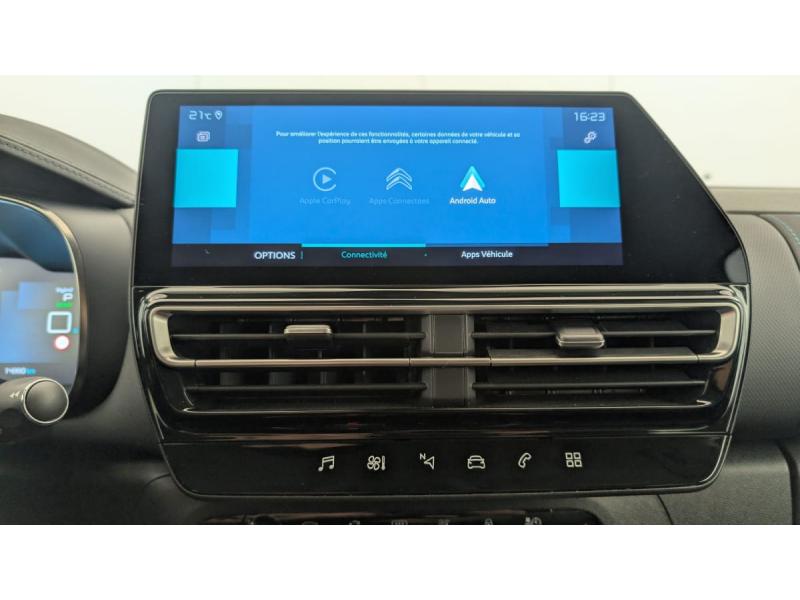 ABS + AFU + ESP + REFAide au stationnement ARAide au stationnement AVAirbags frontaux AV, latéraux AV et rideauxAllumage automatique des feux de croisementBoîtier télématique : Appel d'urgenceCaméra de recul avec Top Rear VisionClimatisation automatique bizoneCombiné numérique 12,3" personnalisableDémarrage mains libresDétection de sous-gonflageEssuie-vitres AV automatique Magic WashFeux AR 3D à LEDFeux diurnes à LED avec clignotants à LEDFixations ISOFIX sur les sièges passager AV et latéraux ARFrein de stationnement électrique automatiqueGarnissage Tissu Bruneo chine/Toile enduite Noire/Ambiance Metropolitan Black avec Sièges Advanced ComfortJantes alliage 18" PULSAR Diamantées bi-tonKit de dépannage provisoire des pneumatiquesKit mains libres Bluetooth et 3 prises USBLève-vitres AV et AR électriques et séquentielsPack Color Noir Brillant : Inserts colorés Noir Brillant sur Airbump et bouclier AVPack Nav : Navigation sur écran central 10" tactile (Comprend système de navigation TomTom)Projecteurs LEDRétroviseur intérieur électrochromeRétroviseurs extérieurs électriques dégivrantsRétroviseurs extérieurs rabattables électriquement avec éclairage d'accueilSiège conducteur avec réglage lombaireSièges Advanced ComfortSièges conducteur et passager réglables en hauteurSuspension Citroën Advanced ComfortVitres et lunette AR surteintéesVolant croûte de cuirVolant réglable en hauteur et en profondeur