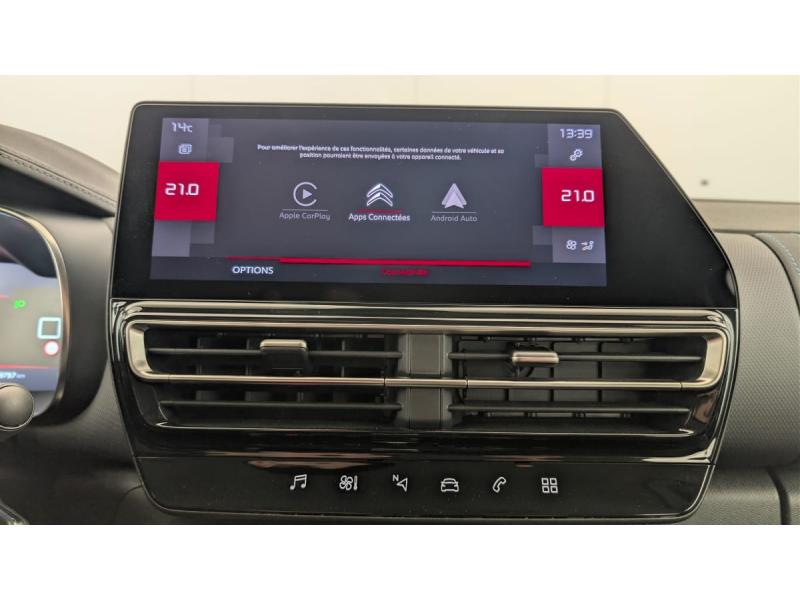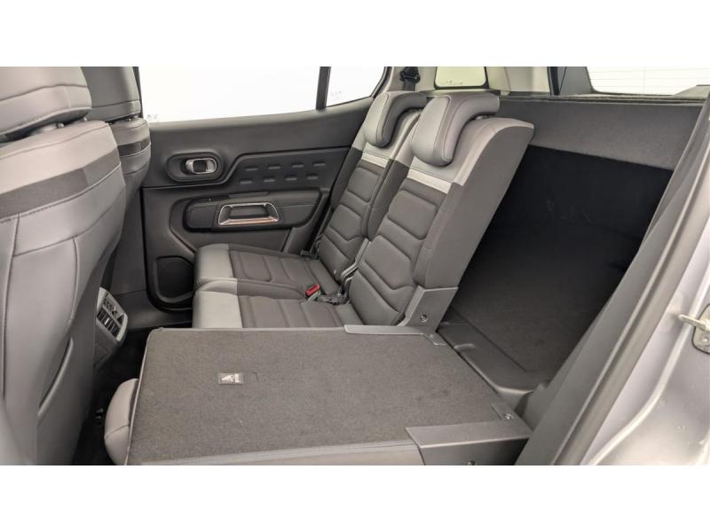 3 sièges AR indépendants, coulissants, inclinables et escamotablesAérateurs en rang 2ABS + AFU + ESP + REFAccoudoir central moussé à ouverture papillon et réfrigéréAide au démarrage en penteAide au stationnement ARAirbags frontaux AV, latéraux AV et rideauxAllumage automatique des feux de croisementCalandre Noir Brillant avec chevrons noir brillant et entourage ChromeClignotants impulsionnelsClimatisation automatique bi-zoneCombiné numérique 12,3" personnalisableCondamnation centralisée avec 2 PLIP HFCoques de rétroviseurs extérieurs Noir BrillantCustodes AR surteintéesDétection de sous-gonflageDirection à assistance électriqueEclairage d'accueil et d'accompagnementElargisseurs d'aile et bas de caisse Noir MatEnjoliveur de montant central Noir BrillantEnjoliveurs de contour de vitres latérales chromésEssuie-vitres AV automatique Magic WashFeux AR 3D à LEDFeux diurnes à LED avec clignotants à LEDFixations ISOFIX sur les sièges passager AV et latéraux ARFrein de stationnement électrique automatiqueGarnissage Tissu SAO Noir/Tissu effet cuir Gris/Ambiance Wild Black avec Sièges Advanced ComfortJantes alliage 18" SWIRLKit de dépannage provisoire des pneumatiquesKit mains libres Bluetooth et 3 prises USBLève-vitres AV et AR électriques et séquentielsMy Citroën Play - Mirror Screen, Système audio numérique bi-tuner RDS MP3 (DAB), Tablette tactile 8"Pack Color Noir Brillant : Projecteurs antibrouillard avec éclairage statique d'intersection Inserts colorés Noir Brillant sur Airbump et bouclier AVPack Safety - Active Safety Brake - Alerte active de Franchissement Involontaire de Ligne - Alerte Attention Conducteur - Alerte Risque Collision - Coffee Break Alert - Reconnaissance des panneaux de vitesse et recommandation - Régulateur-limiteur de vitesse - Témoin de non-bouclage dePare-chocs AR avec double canule chroméePlanche de coffre escamotablePrises 12 V sur la console centrale et dans le coffreProjecteurs LEDRétroviseurs extérieurs électriques dégivrantsSécurité enfants mécaniqueSiège conducteur avec réglage lombaire et accoudoirSièges conducteur et passager réglables en hauteurSuspension Citroën Advanced ComfortSystème Stop & StartVolant croûte de cuirVolant réglable en hauteur et en profondeur