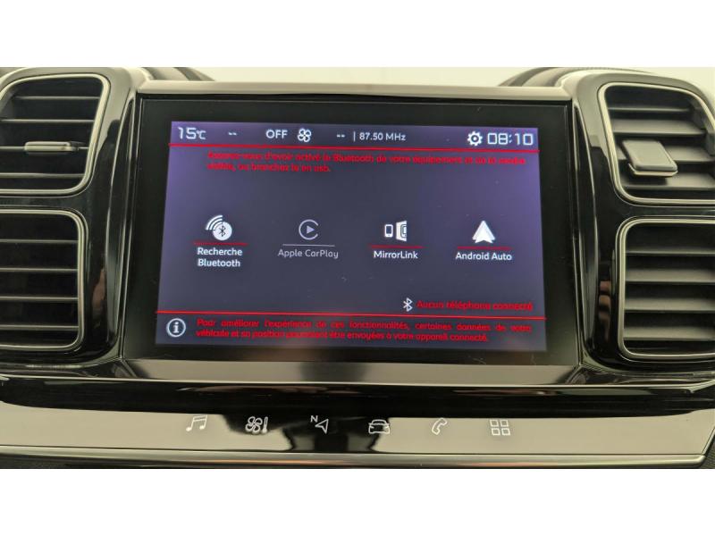 3 sièges AR indépendants, coulissants, inclinables et escamotablesABS + AFU + ESP + REFAide au stationnement ARAide au stationnement AV + Caméra de recul avec Top Rear Vision Comprend les Projecteurs antibrouillard avec éclairage statique d’intersection.Airbags frontaux AV, latéraux AV et rideauxAllumage automatique des feux de croisementCalandre supérieure Noir BrillantClimatisation automatique bi-zoneCombiné numérique 12,3" personnalisableCustodes AR surteintéesDétection de sous-gonflageElargisseurs d'aile et bas de caisse Noir MatEnjoliveurs de contour de vitres latérales chromésEssuie-vitres AV automatique Magic WashFeux AR 3D à LEDFeux diurnes à LED avec clignotants à LEDFixations ISOFIX sur les sièges passager AV et latéraux ARFrein de stationnement électrique automatiqueJantes alliage 18" PULSAR Diamantées bi-tonKit de dépannage provisoire des pneumatiquesKit mains libres Bluetooth et 3 prises USBLève-vitres AV et AR électriques et séquentielsMy Citroën Play - Mirror Screen, Système audio numérique bi-tuner RDS MP3 (DAB), Tablette tactile 8"Pack Color Noir Brillant : Inserts colorés Noir Brillant sur Airbump et bouclier AVPack Safety - Active Safety Brake - Alerte active de Franchissement Involontaire de Ligne - Alerte Attention Conducteur - Alerte Risque Collision - Coffee Break Alert - Reconnaissance des panneaux de vitesse et recommandation - Régulateur-limiteur de vitesse - Témoin de non-bouclage dePlanche de coffre escamotablePrises 12 V sur la console centrale et dans le coffreProjecteurs LEDRétroviseur intérieur électrochromeRétroviseurs extérieurs électriques dégivrantsSabots de protection Aluminium BrillantSiège conducteur avec réglage lombaireSièges conducteur et passager réglables en hauteurSuspension Citroën Advanced ComfortSystème Stop & StartVitres et lunette AR surteintéesVolant croûte de cuirVolant réglable en hauteur et en profondeur