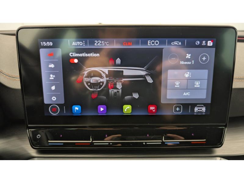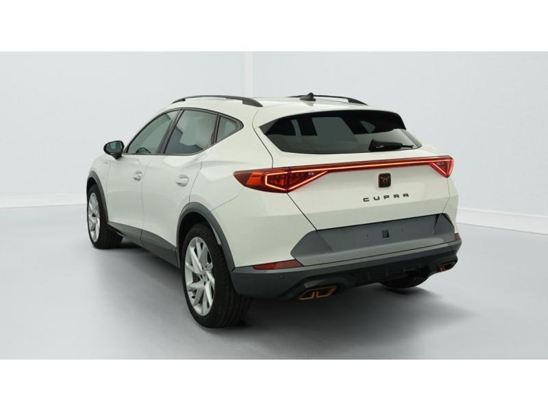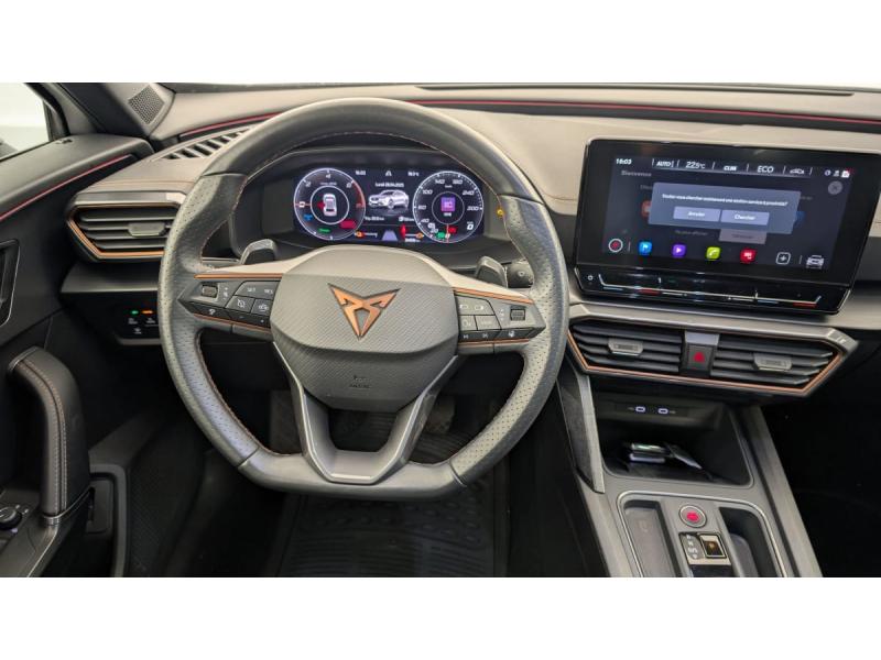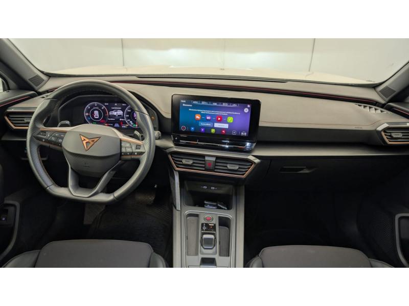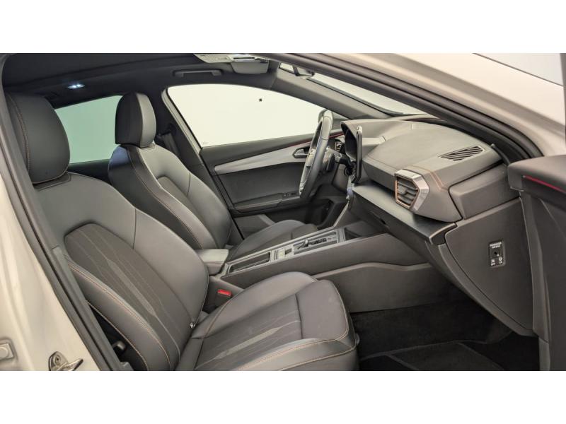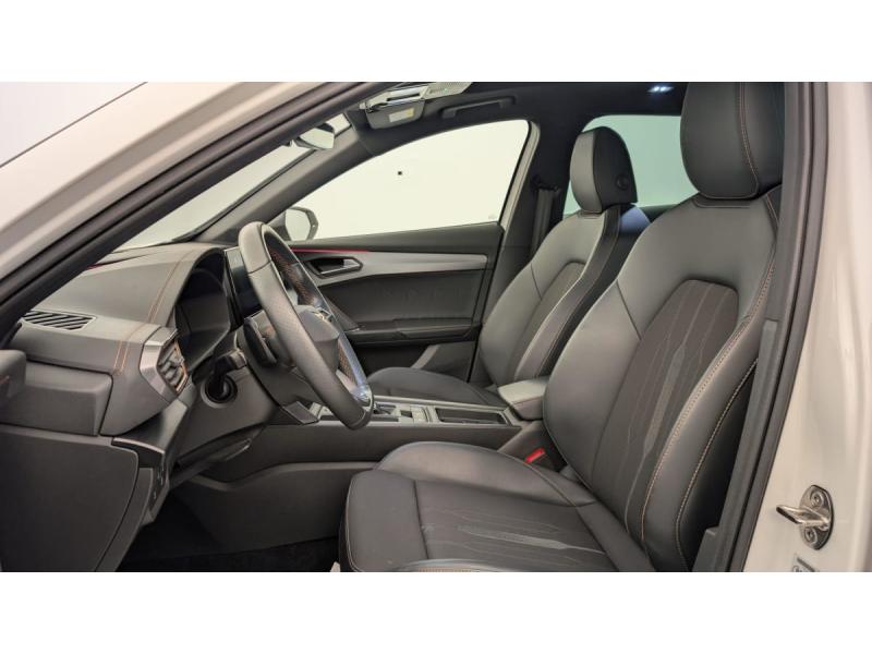 2 prises USB-C éclairées à l'AV et 2 à l'ARAccoudoir centralAide au stationnement ARAirbags latéreaux, rideaux et centralBandeau AR "Infinite Light" à LED avec clignotants à défilement et cérémonie de bienvenueCâble de recharge sur prise domestiqueCaméra de reculCapteur de pluie et de luminositéClignotants à défilement et cérémonie de bienvenue ARClimatisation automatique tri-zone "Climatronic"Connectivity Box avec chargeur à inductionDigital Cockpit: combiné d'instruments digital haute résolution 10,25"Dossiers AR rabattables 2/3 - 1/3Eclairage d'ambianceEclairage de bienvenue avec projection du logo CUPRA au solFeux de route intelligentsFixations ISOFIX avec Top-Tether à l'ARJantes en alliage 18'' Performance usinéesKeyless Access : Accès et démarrage mains-libresProjecteurs anti-brouillard avec Cornering Light et Coming HomeProjecteurs Full LEDRéglage en hauteur et lombaire des sièges AVRégulateur de vitesse adaptatif "ACC" predictif avec arrêt d`urgenceRétroviseur intérieur électrochromeRadio numérique DABRails de toit Noir PianoSièges Sport en textile NoirSystème audio 7 HP avec contrôle vocal "Hola Hola"Système de navigation 3D sur écran tactile HD12"Vitres AR surteintéesVolant sport multifonction en cuir chauffant avec palettes
