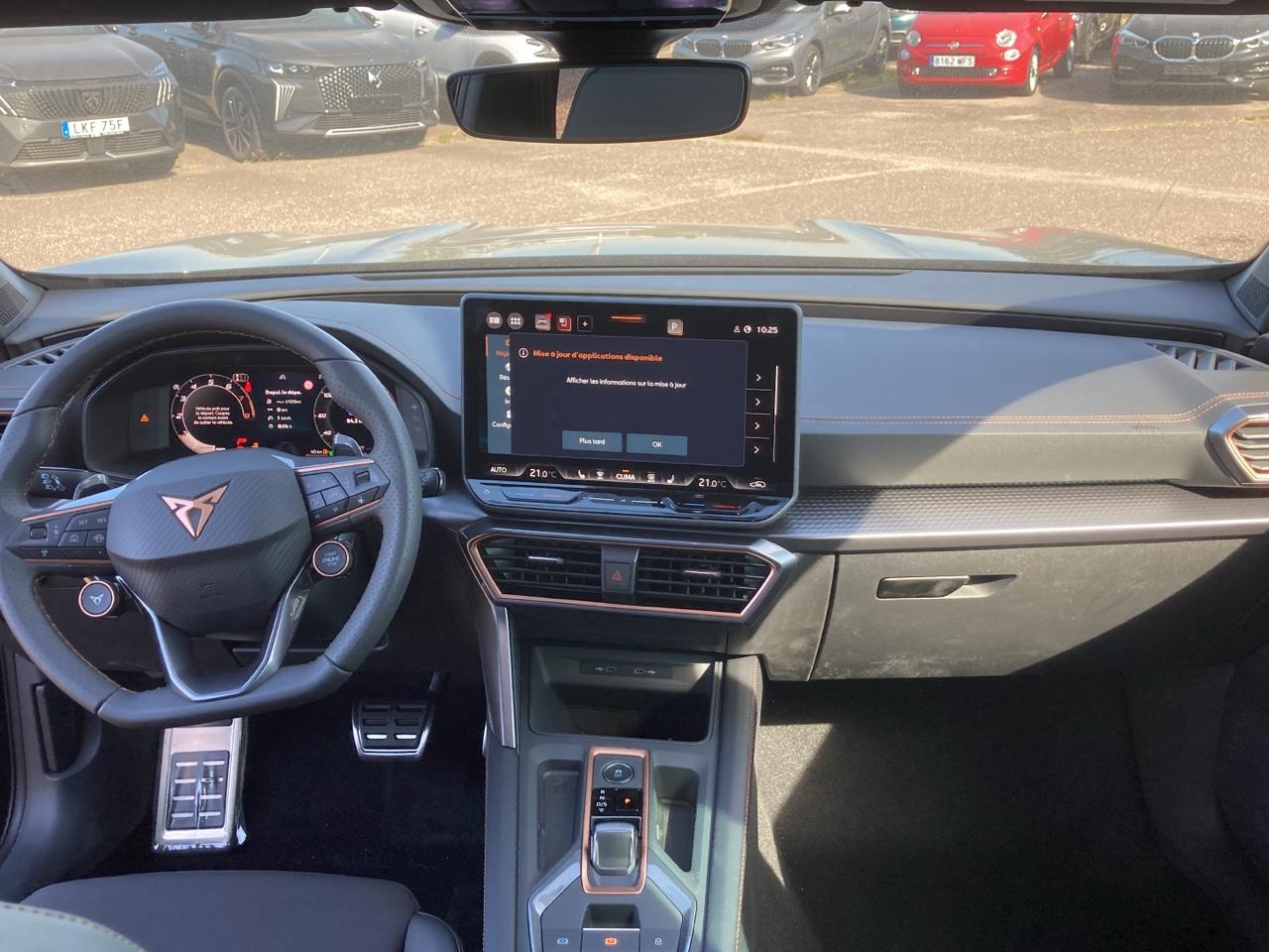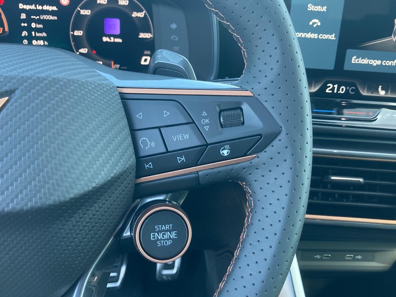 6 haut parleursAbsAccoudoir central avAfilAide au démarrage en côteAirbags latéraux avantAirbags rideauxAlarmeAntidémarrage électroniqueAntipatinageAppel d'assistance localiséAppel d'urgence localiséAssistance de maintien de trajectoireBacs de portes arrièreBacs de portes avantBanquette 1/3-2/3Banquette ar rabattableBarres de toitCaméra de reculCapteur de luminositéCapteur de pluieCeintures avant ajustables en hauteurClim automatique tri-zonesCoffre assisté électriquementCommande climatisation arCommande du comportement dynamiqueCommandes du système audio au volantCommandes vocalesCompte toursCupra virtual cockpit 10,25'Démarrage sans cléDétecteur de sous-gonflageDiffuseur ar noirDispositif freinage automatiqueEbdEchappement à double sortieEclairage au solEclairage d'ambianceEclairage statique d'intersectionEcran multifonction couleurEcran tactileEspEssuie-glace arrièreFeux arrière à ledFeux avant full led avec feux antibrouillard avec fonction corneringFiltre à particulesFiltre à pollenFixations isofix aux places arrièresFollow me homeFonction mp3Freinage automatique d'urgenceFull link wireless avec apple carplay / android autoGps cartographiqueGuidage pour manoeuvre de stationnementIndicateur de limitation de vitesseInfotainment avec écran tactile 12,9?Interface mediaJantes alu 18' tempestKit mains-libres bluetoothLampes de lecture à l'arrièreLampes de lecture à l'avantLunette ar dégivranteLunette arrière surteintéeMiroir de courtoisie conducteur éclairéMiroir de courtoisie passager éclairéMode de conduiteOrdinateur de bordOuverture du coffre mains-libresPédalier sportPack edge (camera de recul + hayon mains-libres + keyless advanced + Éclairage ambiental smart wraparound + anti-vol)Palettes changement vitesses au volantPhares antibrouillardPhares avant ledPoignées ton carrosseriePorte-gobelets avantPredisposition attelagePrise usbRégulateur de vitesseRégulateur de vitesse adaptatifRétroviseur intérieur électrochromeRétroviseurs électriquesRétroviseurs rabattables électriquementRadar de distanceRadar de stationnement arRadar de stationnement avRadioRadio numérique dabReconnaissance panneaux de signalisationServices connectésSièges avant sport chauffantsSystème audio et info-divertissementSystème avancé de détection d'obstaclesSystème d'éclairage intelligent à ledSystème d'accès sans cléSystème d'alerte de véhicule en approcheSystème de détection de somnolenceSystème de prévention des collisionsSystème de prévention des collisions arVerrouillage centralisé à distanceVerrouillage centralisé des portesVitres arrière surteintéesVolant chauffantVolant cuirVolant multifonctionVolant sport
