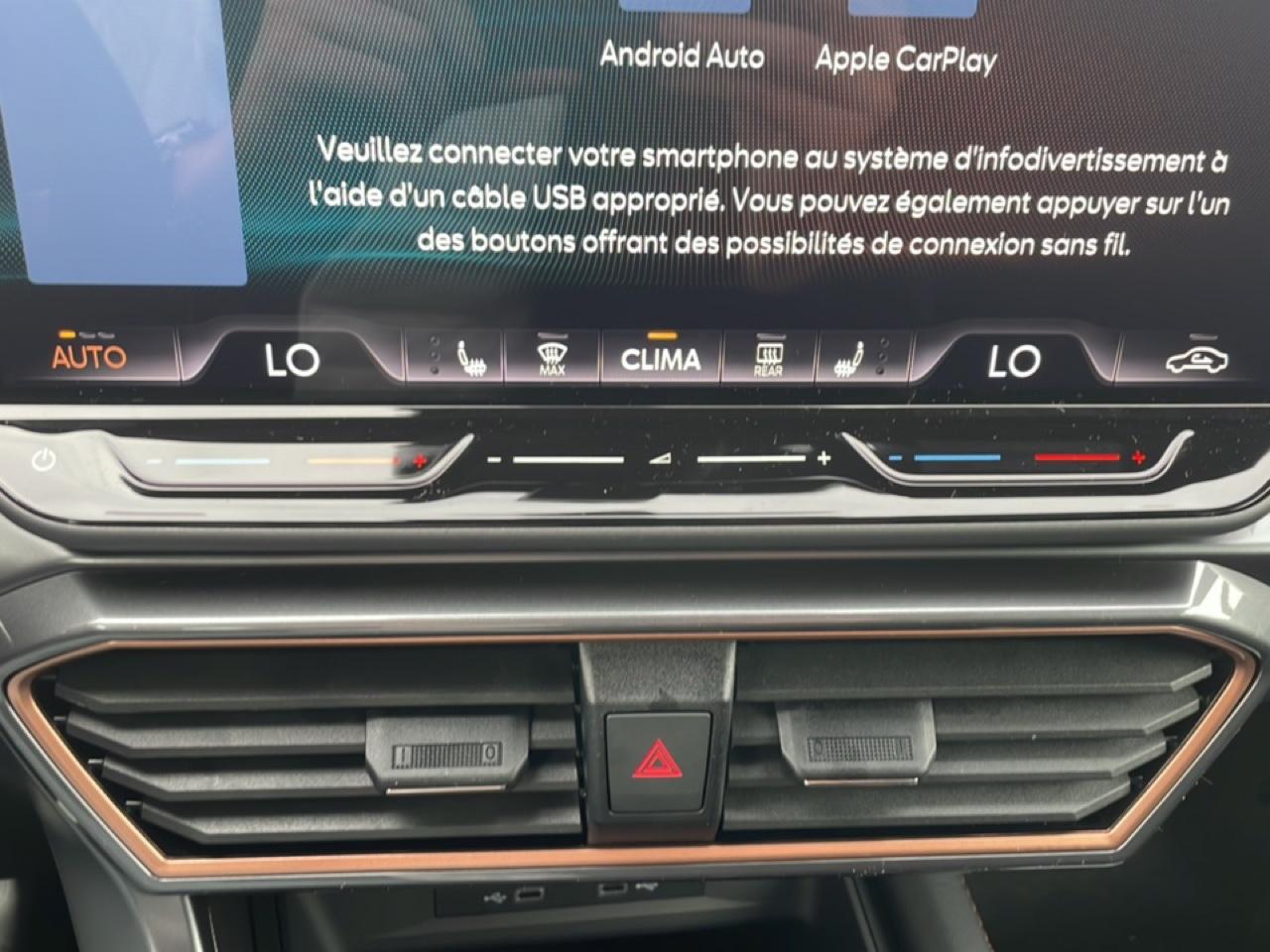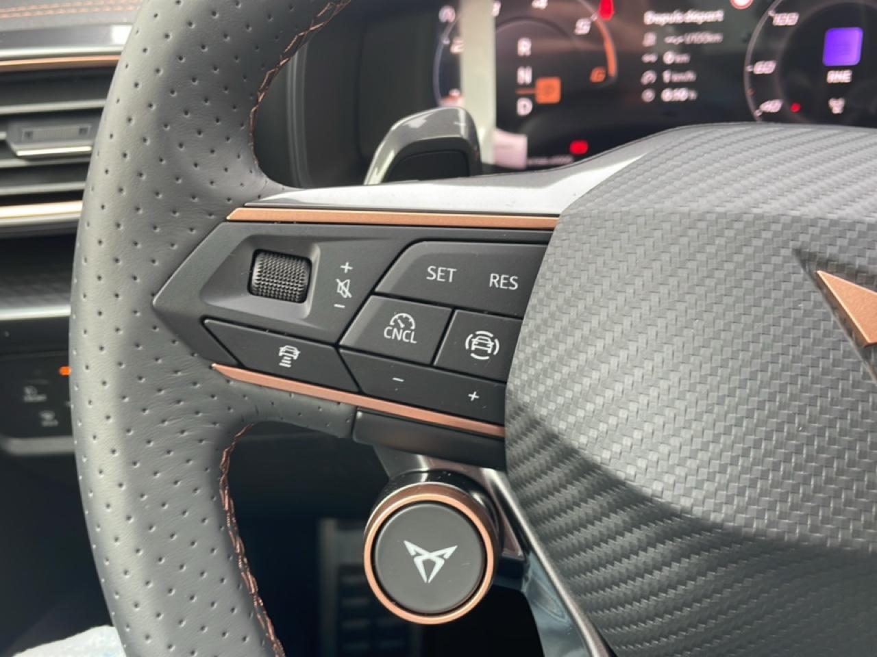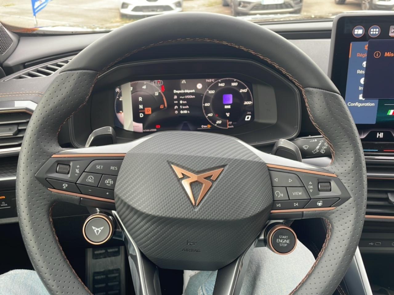 2 ports usb-c av et ar7 haut parleursAbsAccoudoir central av et arAfilAirbag conducteurAirbag passagerAirbag passager déconnectableAirbags latéraux avantAirbags rideauxAppuie-têtes av et arAssistant d'intersectionAssistant feux de routeBaguettes de fenêtres noiresBandes de protection latérales en noir brillantBarres de toit noiresCaméra de reculCapteur de luminositéCapteur de pluieClim automatique tri-zonesCockpit numérique plus 10Contrôle auto de la portée des pharesCpra full link wi-fiDémarrage sans cléDétecteur de sous-gonflageDirection progressiveEclairage d'ambianceEquipement pour éthylotest antidémarrageEssieu ar multibrasEssuie-glace arrièreFeu antibrouillard arFeux antibrouillards à ledFeux arrière à ledFeux de viragesFixations i-size aux places arrièresFollow me homeFrein à main électronique avec maintien automatiqueGarantie 5 ans /100 000kmGarniture de toit noireIndicateur niveau liquide lave-glaceJantes 18 sonotaKit mains-libres bluetoothLampes de lecture à l'arrièreLampes de lecture à l'avantPédalier sportPack edgePare brise et vitres à isolation thermiquePare-chocs cupraPare-soleil avec éclairagePhares à ledPoches d'aumonièresPrise 230v dans le compartiment à bagagesProfils de conduiteRégulateur de vitesse adaptatifRétroviseur intérieur électrochromeRétroviseurs électriques et chauffantsRétroviseurs rabattables électriquementRadar de stationnement arRadar de stationnement avRadio numérique dabReconnaissance panneaux de signalisationSeuils de portes éclairésSièges av réglables en hauteurSièges avant sport confortSoutien lombaire dynamique conducteur et passagerStation de charge par induction 15 wattsSystème de détection de somnolenceSystème multimédia 12.9Toit ouvrant panoramiqueVersion cupra cupra connect 3.0Vitres électriques av et arVitres arrière surteintéesVolant chauffantVolant sport