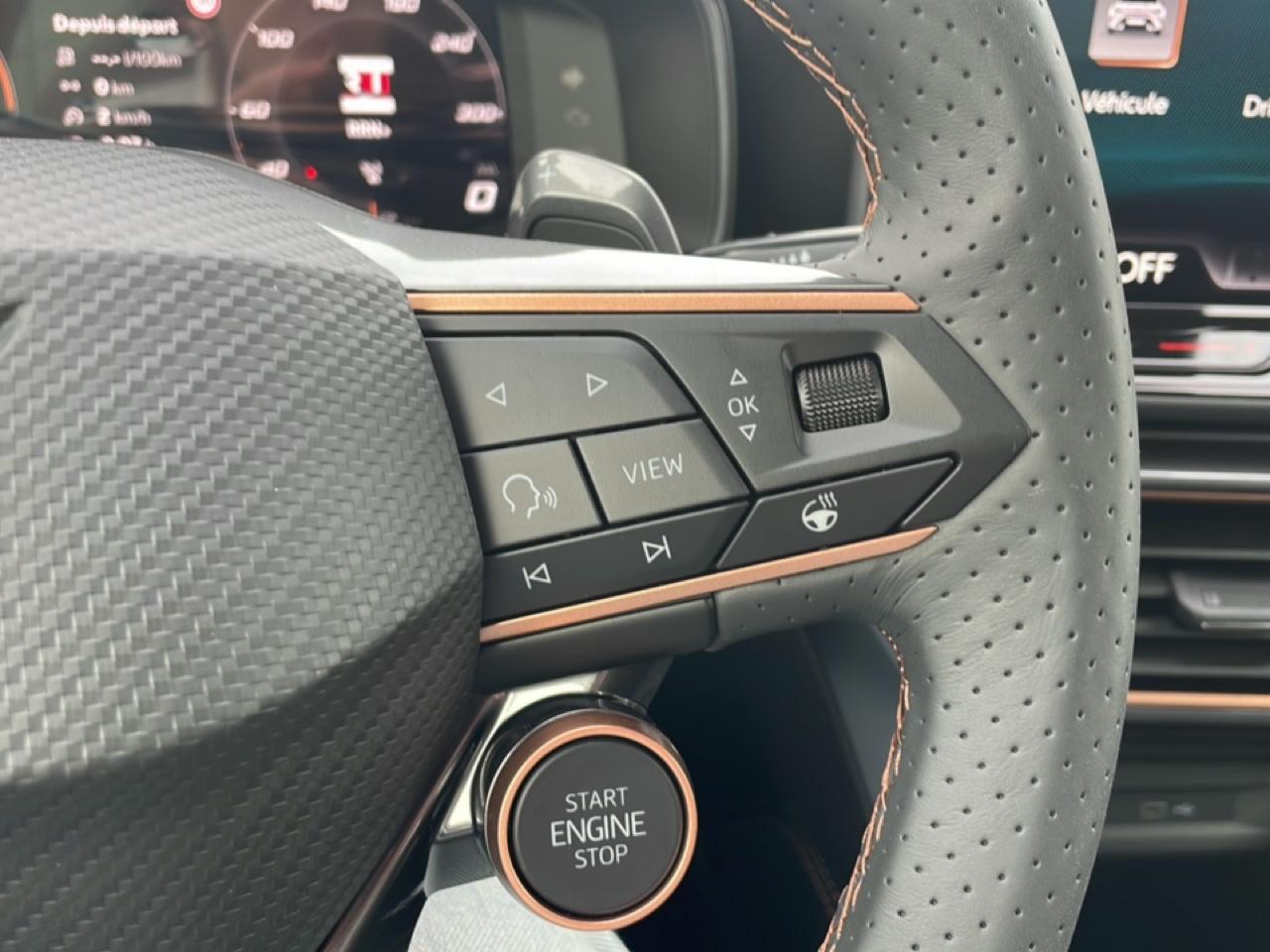 2 ports usb-c av et ar7 haut parleursAbsAccoudoir central av et arAfilAirbag conducteurAirbag passagerAirbag passager déconnectableAirbags latéraux avantAirbags rideauxAppuie-têtes av et arAssistant d'intersectionAssistant feux de routeBaguettes de fenêtres noiresBandes de protection latérales en noir brillantBarres de toit noiresCaméra de reculCapteur de luminositéCapteur de pluieClim automatique tri-zonesCockpit numérique plus 10Contrôle auto de la portée des pharesCpra full link wi-fiDémarrage sans cléDétecteur de sous-gonflageDirection progressiveEclairage d'ambianceEquipement pour éthylotest antidémarrageEssieu ar multibrasEssuie-glace arrièreFeu antibrouillard arFeux antibrouillards à ledFeux arrière à ledFeux de viragesFixations i-size aux places arrièresFollow me homeFrein à main électronique avec maintien automatiqueGarantie 5 ans /100 000kmGarniture de toit noireIndicateur niveau liquide lave-glaceJantes 18 sonotaKit mains-libres bluetoothLampes de lecture à l'arrièreLampes de lecture à l'avantPédalier sportPack edgePare brise et vitres à isolation thermiquePare-chocs cupraPare-soleil avec éclairagePhares à ledPoches d'aumonièresPrise 230v dans le compartiment à bagagesProfils de conduiteRégulateur de vitesse adaptatifRétroviseur intérieur électrochromeRétroviseurs électriques et chauffantsRétroviseurs rabattables électriquementRadar de stationnement arRadar de stationnement avRadio numérique dabReconnaissance panneaux de signalisationSeuils de portes éclairésSièges av réglables en hauteurSièges avant sport confortSoutien lombaire dynamique conducteur et passagerStation de charge par induction 15 wattsSystème de détection de somnolenceSystème multimédia 12.9Toit ouvrant panoramiqueVersion cupra cupra connect 3.0Vitres électriques av et arVitres arrière surteintéesVolant chauffantVolant sport