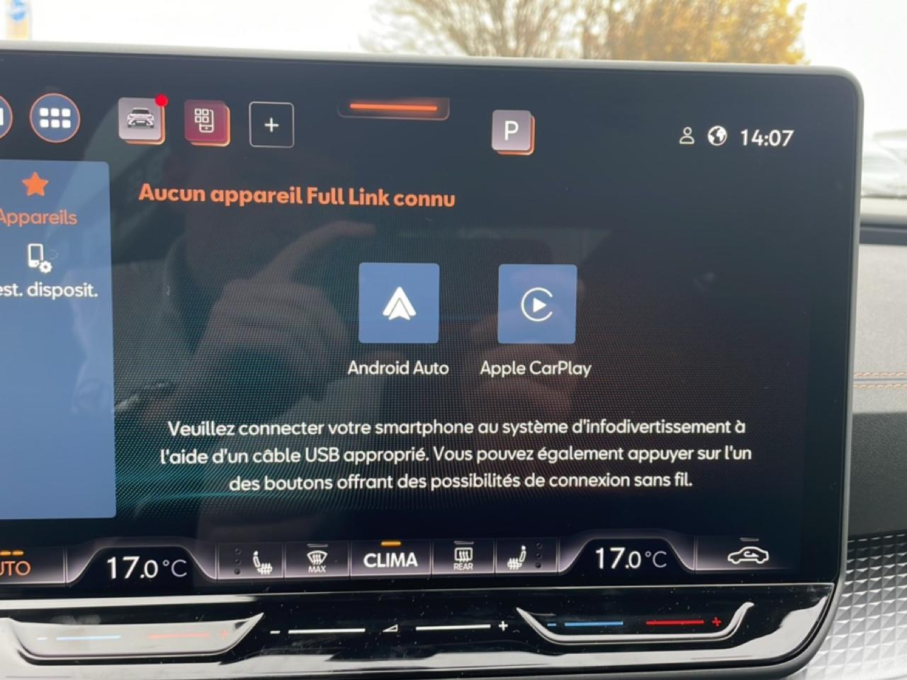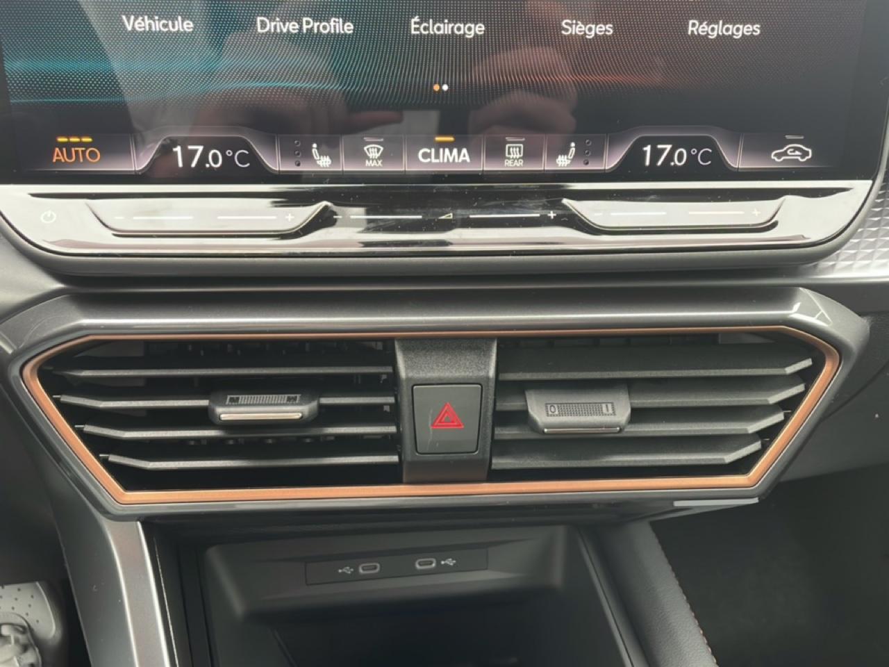 2 ports usb-c av et ar7 haut parleursAbsAccoudoir central av et arAfilAirbag conducteurAirbag passagerAirbag passager déconnectableAirbags latéraux avantAirbags rideauxAppuie-têtes av et arAssistant d'intersectionAssistant feux de routeBaguettes de fenêtres noiresBandes de protection latérales en noir brillantBarres de toit noiresCaméra de reculCapteur de luminositéCapteur de pluieClim automatique tri-zonesCockpit numérique plus 10Contrôle auto de la portée des pharesCpra full link wi-fiDémarrage sans cléDétecteur de sous-gonflageDirection progressiveEclairage d'ambianceEquipement pour éthylotest antidémarrageEssieu ar multibrasEssuie-glace arrièreFeu antibrouillard arFeux antibrouillards à ledFeux arrière à ledFeux de viragesFixations i-size aux places arrièresFollow me homeFrein à main électronique avec maintien automatiqueGarantie 5 ans /100 000kmGarniture de toit noireIndicateur niveau liquide lave-glaceJantes 18 sonotaKit mains-libres bluetoothLampes de lecture à l'arrièreLampes de lecture à l'avantPédalier sportPack edgePare brise et vitres à isolation thermiquePare-chocs cupraPare-soleil avec éclairagePhares à ledPoches d'aumonièresPrise 230v dans le compartiment à bagagesProfils de conduiteRégulateur de vitesse adaptatifRétroviseur intérieur électrochromeRétroviseurs électriques et chauffantsRétroviseurs rabattables électriquementRadar de stationnement arRadar de stationnement avRadio numérique dabReconnaissance panneaux de signalisationSeuils de portes éclairésSièges av réglables en hauteurSièges avant sport confortSoutien lombaire dynamique conducteur et passagerStation de charge par induction 15 wattsSystème de détection de somnolenceSystème multimédia 12.9Toit ouvrant panoramiqueVersion cupra cupra connect 3.0Vitres électriques av et arVitres arrière surteintéesVolant chauffantVolant sport