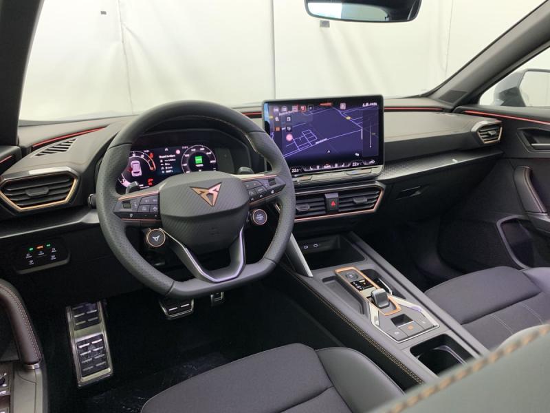 Accès et démarrage mains-libresAccoudoir central AVAide au stationnement AV et ARAirbags latéreaux, rideaux et centralBandeau AR ''Infinite Light'' intégrant le logo CUPRA lumineux avec signature lumineuse Tri-LED et cérémonie de bienvenueCaméra de reculCapteur de pluie et de luminositéCiel de pavillon NoirClimatisation automatique tri-zone "Climatronic"Connectivity Box - Amplification du signal et chargeur à inductionCouleur contrastante Noir Obsidien (bas de caisses, entrées d'air AV, diffuseur, élargisseurs d'ailes et coques de rétroviseurs)Détection de fatigue et somnolenceDigital Cockpit 10,25''Direction dynamiqueDossiers AR rabattables 2/3 - 1/3Double sortie d'échappement Noire styliséeeCall - appel d'urgenceEclairage de bienvenue avec projection du logo CUPRA au sol et éclairage d'accompagnementEntourage de vitres et rails de toit Noir PianoFeux de route intelligents (Light Assist)Fixations ISOFIX avec Top-Tether à l'ARFront Assist avec détection des piétons et des cyclistesFull Link sans fil ( Android Auto + Apple CarPlay)Hayon électrique mains-libres ''Virtual Pedal''Lampes de lecture LED à l'AV et à l'ARLane Assist - aide au maintien dans la voiePare-soleils avec miroirs de courtoisie éclairésProjecteurs anti-brouillard triangulaires avec éclairage d'intersectionRégulateur de vitesse adaptatif ACCRétroviseur intérieur électrochromeRadio numérique DABSeuils de porte CUPRA rétro-éclairésSign Assist - reconnaissance des panneaux de signalisationSmart Ambient Light (éclairage d'ambiance intérieur intelligent)Système audio à 6 HP avec contrôle vocalSystème d'alarme antivol, dispositif de surveillance de l'habitacle, Back-up- Horn et protection antiremorquageSystème d'info-divertissement avec écran tactile HD 12,9'' et touches de commandes tactiles rétro-éclairéesVitres AR surteintéesVolant Supersports CUPRA en cuir avec boutons satellites, chauffant avec palettes de changement de rapport