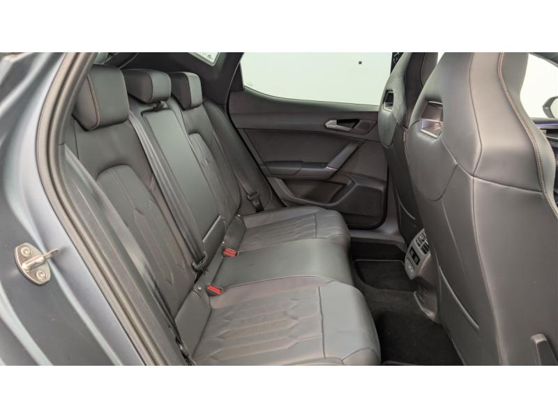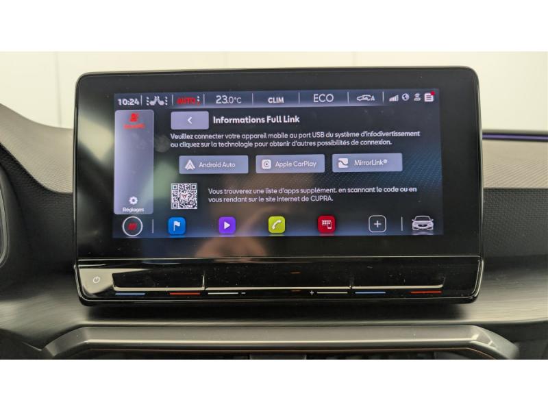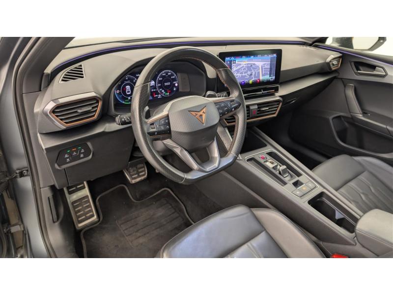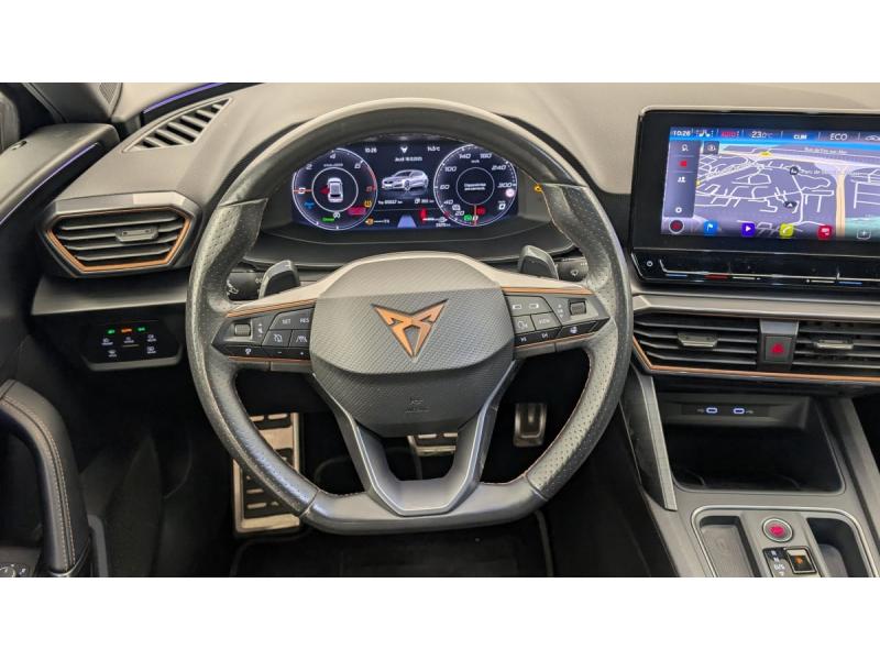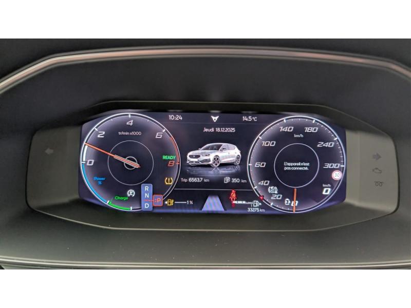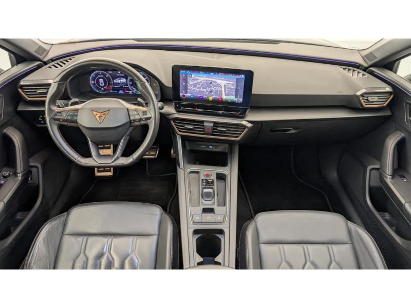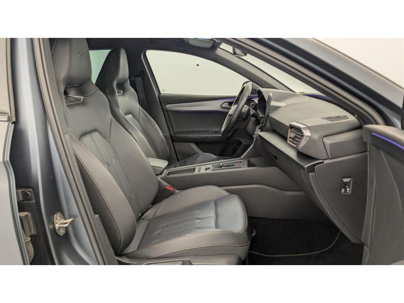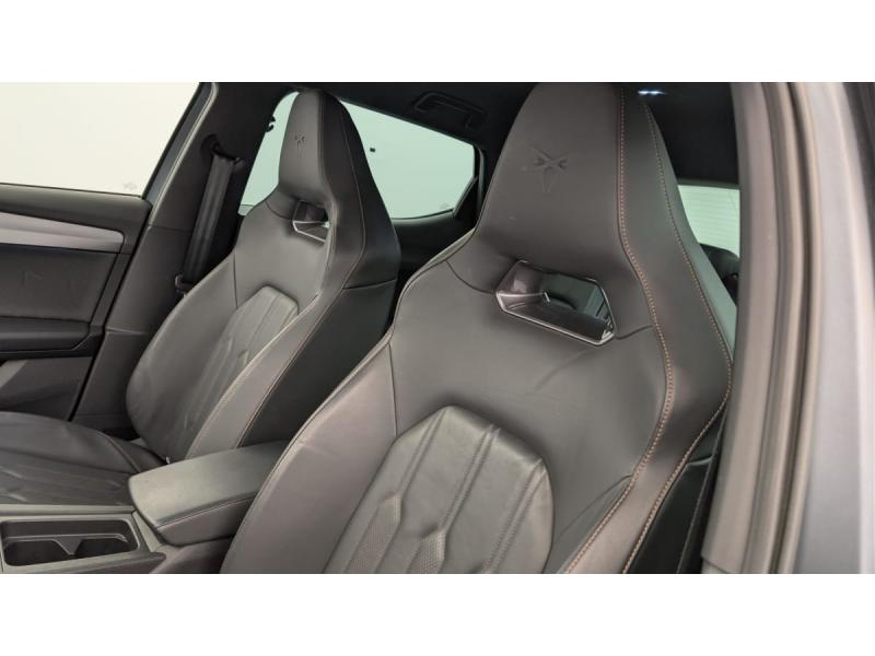 2 prises USB-C éclairées à l'AV et 2 à l'ARAccoudoir centralAide au stationnement AV/ARAirbagsCâble de recharge Mode 2 pour prise domestiqueCaméra de reculCapteur de pluie et de luminositéChoix du mode de conduiteCiel de pavillon NoirClimatisation automatique tri-zone "Climatronic"Connectivity Box avec chargeur à inductionDigital Cockpit: combiné d'instruments digital haute résolution 10,25"Dossiers AR rabattables 2/3 - 1/3Eclairage d'ambiance personnalisableEclairage de bienvenue avec projection du logo CUPRA au solEntourage de vitres Noir GlossyFeux AR LED avec bandeau Infinite Light avec clignotants à défilement et cérémonie de bienvenue ARFixations ISOFIX avec Top-Tether à l'ARFull Link avec CarPlay sans filKeyless Access : Accès et démarrage mains-libresKit anti-crevaisonPark Assist avec aide au stationnement AV et ARProjecteurs anti-brouillard avec Cornering Light et Coming HomeProjecteurs Full LEDRéglage en hauteur et lombaire des sièges AVRégulation adaptative du châssis DCCRétroviseur intérieur électrochromeRadio numérique DABSystème audio 6 HP avec contrôle vocal "Hola Hola"Système de navigation 3D sur écran tactile HD10"Vitres AR surteintéesVolant CUPRA chauffant