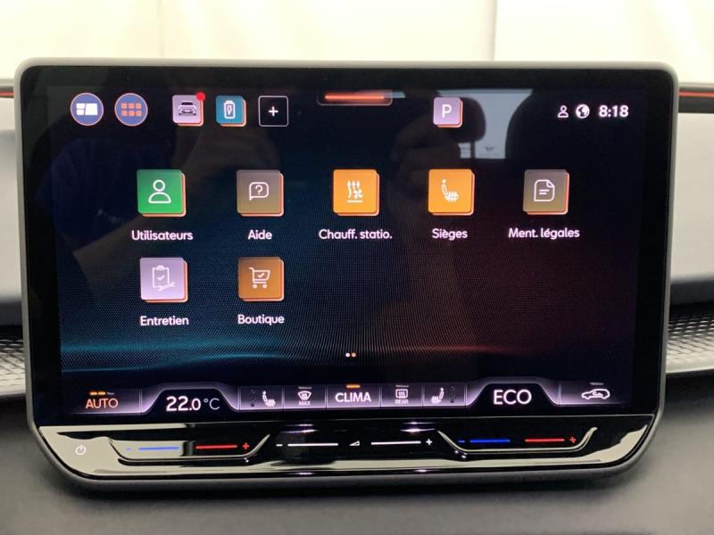 Accès et démarrage mains-libresAccoudoir central AVAide au maintien dans la voie (Lane Assist)Aide au stationnement AV et ARAirbags latéreaux, rideaux et centralAlarme antivol avec fonction SAFEBandeau AR ''Infinite Light'' intégrant le logo CUPRA lumineux avec signature lumineuse Tri-LED et cérémonie de bienvenueBanquette AR coulissante 2/3 - 1/3Câble de recharge sur prise domestiqueCaméra de reculCapteur de pluie et de luminositéCiel de pavillon NoirClimatisation automatique tri-zone "Climatronic"Connectivité 4x USB-C et BluetoothConnectivity Box avec chargeur à inductionDétection de fatigue et somnolenceDesign Intérieur Deep Ocean (sièges baquets TEP + textile Bleu Acier) - Logos CUPRA estampés sur les appuie-têtes - Planche de bord bleu acier texturée avec aérateurs cuivrés - Contre-portes en TEP noir texturé - Ciel de pavillon noir - Si&eDigital Cockpit 10,25" Medium avec 2 affichages personnalisablesDossiers AR rabattables 2/3 - 1/3Eclairage de bienvenue avec projection du logo CUPRA au solFixations ISOFIX avec Top-Tether à l'ARFront Assist avec détection des piétons et cyclistesFull Link sans fil ( Android Auto + Apple CarPlay)Hayon électrique mains-libres ''Virtual Pedal''Jantes 18'' Atomic usinéesKit de sécurité CUPRAProjecteurs anti-brouillard avec éclairage d'intersection et éclairage d'accompagnementProjecteurs full LED avec signature lumineuseTri-LEDRégulateur de vitesse adaptatif ACCRétroviseur intérieur électrochromeRadio numérique DABRails de toit NoirReconnaissance des panneaux de signalisation (Sign Assist)Seuils de porte CUPRA rétro-éclairésSmart Ambient Light (éclairage d'ambiance intérieur intelligent)Système audio à 9 HP avec contrôle vocalSystème d'info-divertissement avec écran tactile HD 12,9'' et touches de commandes tactiles rétro-éclairéesVitres AR surteintéesVolant Supersports CUPRA en cuir avec boutons satellites, chauffant avec palettes de changement de rapport