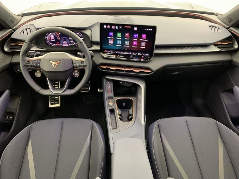 Accès et démarrage mains-libresAccoudoir central AVAide au maintien dans la voie (Lane Assist)Aide au stationnement AV et ARAirbags latéreaux, rideaux et centralAlarme antivol avec fonction SAFEBandeau AR ''Infinite Light'' intégrant le logo CUPRA lumineux avec signature lumineuse Tri-LED et cérémonie de bienvenueBanquette AR coulissante 2/3 - 1/3Câble de recharge sur prise domestiqueCaméra de reculCapteur de pluie et de luminositéCiel de pavillon NoirClimatisation automatique tri-zone "Climatronic"Connectivité 4x USB-C et BluetoothConnectivity Box avec chargeur à inductionDétection de fatigue et somnolenceDesign Intérieur Deep Ocean (sièges baquets TEP + textile Bleu Acier) - Logos CUPRA estampés sur les appuie-têtes - Planche de bord bleu acier texturée avec aérateurs cuivrés - Contre-portes en TEP noir texturé - Ciel de pavillon noir - Si&eDigital Cockpit 10,25" Medium avec 2 affichages personnalisablesDossiers AR rabattables 2/3 - 1/3Eclairage de bienvenue avec projection du logo CUPRA au solFixations ISOFIX avec Top-Tether à l'ARFront Assist avec détection des piétons et cyclistesFull Link sans fil ( Android Auto + Apple CarPlay)Hayon électrique mains-libres ''Virtual Pedal''Jantes 18'' Atomic usinéesKit de sécurité CUPRAProjecteurs anti-brouillard avec éclairage d'intersection et éclairage d'accompagnementProjecteurs full LED avec signature lumineuseTri-LEDRégulateur de vitesse adaptatif ACCRétroviseur intérieur électrochromeRadio numérique DABRails de toit NoirReconnaissance des panneaux de signalisation (Sign Assist)Seuils de porte CUPRA rétro-éclairésSmart Ambient Light (éclairage d'ambiance intérieur intelligent)Système audio à 9 HP avec contrôle vocalSystème d'info-divertissement avec écran tactile HD 12,9'' et touches de commandes tactiles rétro-éclairéesVitres AR surteintéesVolant Supersports CUPRA en cuir avec boutons satellites, chauffant avec palettes de changement de rapport