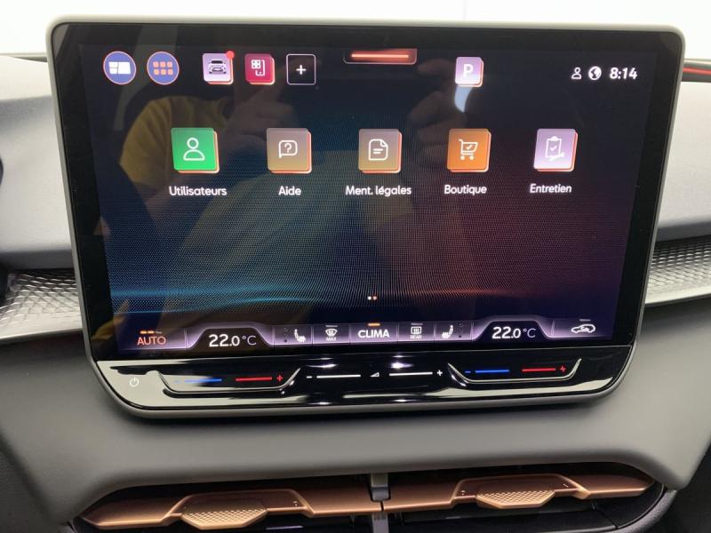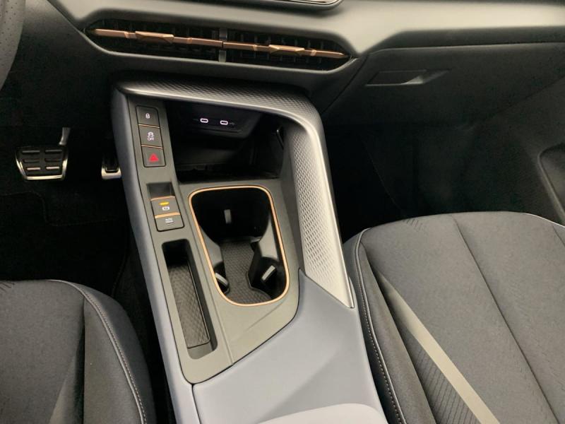 Accès et démarrage mains-libresAccoudoir central AVAide au maintien dans la voie (Lane Assist)Aide au stationnement AV et ARAirbags latéreaux, rideaux et centralAlarme antivol avec fonction SAFEBandeau AR ''Infinite Light'' intégrant le logo CUPRA lumineux avec signature lumineuse Tri-LED et cérémonie de bienvenueBanquette AR coulissante 2/3 - 1/3Caméra de reculCapteur de pluie et de luminositéCiel de pavillon NoirClimatisation automatique tri-zone "Climatronic"Connectivité 4x USB-C et BluetoothConnectivity Box avec chargeur à inductionDétection de fatigue et somnolenceDesign Intérieur Deep Ocean (sièges baquets TEP + textile Bleu Acier) - Logos CUPRA estampés sur les appuie-têtes - Planche de bord bleu acier texturée avec aérateurs cuivrés - Contre-portes en TEP noir texturé - Ciel de pavillon noir - Si&eDigital Cockpit 10,25" simple avec 2 affichages personnalisablesDirection dynamiqueDossiers AR rabattables 2/3 - 1/3Eclairage de bienvenue avec projection du logo CUPRA au solFixations ISOFIX avec Top-Tether à l'ARFront Assist avec détection des piétons et cyclistesFull Link sans fil ( Android Auto + Apple CarPlay)Hayon électrique mains-libres ''Virtual Pedal''Kit de dépannage : compresseur 12 V et produit d'étanchéité de pneuPeinture vernieProjecteurs anti-brouillard avec éclairage d'intersection et éclairage d'accompagnementProjecteurs full LED avec signature lumineuseTri-LEDRégulateur de vitesse adaptatif ACCRétroviseur intérieur électrochromeRétroviseurs extérieurs réglables, rabatable électriquement, dégivant , avec abaissement passager avantRadio numérique DABRails de toit NoirReconnaissance des panneaux de signalisation (Sign Assist)Seuils de porte CUPRA rétro-éclairésSmart Ambient Light (éclairage d'ambiance intérieur intelligent)Système audio à 9 HP avec contrôle vocalSystème d'info-divertissement avec écran tactile HD 12,9'' et touches de commandes tactiles rétro-éclairéesVitres AR surteintéesVolant Supersports CUPRA en cuir avec boutons satellites, chauffant avec palettes de changement de rapport
