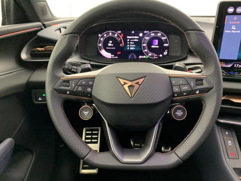 Accès et démarrage mains-libresAccoudoir central AVAide au maintien dans la voie (Lane Assist)Aide au stationnement AV et ARAirbags latéreaux, rideaux et centralAlarme antivol avec fonction SAFEBandeau AR ''Infinite Light'' intégrant le logo CUPRA lumineux avec signature lumineuse Tri-LED et cérémonie de bienvenueBanquette AR coulissante 2/3 - 1/3Caméra de reculCapteur de pluie et de luminositéCiel de pavillon NoirClimatisation automatique tri-zone "Climatronic"Connectivité 4x USB-C et BluetoothConnectivity Box avec chargeur à inductionDétection de fatigue et somnolenceDesign Intérieur Deep Ocean (sièges baquets TEP + textile Bleu Acier) - Logos CUPRA estampés sur les appuie-têtes - Planche de bord bleu acier texturée avec aérateurs cuivrés - Contre-portes en TEP noir texturé - Ciel de pavillon noir - Si&eDigital Cockpit 10,25" simple avec 2 affichages personnalisablesDirection dynamiqueDossiers AR rabattables 2/3 - 1/3Eclairage de bienvenue avec projection du logo CUPRA au solFixations ISOFIX avec Top-Tether à l'ARFront Assist avec détection des piétons et cyclistesFull Link sans fil ( Android Auto + Apple CarPlay)Hayon électrique mains-libres ''Virtual Pedal''Jantes 18'' Atomic usinéesKit de sécurité CUPRAProjecteurs anti-brouillard avec éclairage d'intersection et éclairage d'accompagnementProjecteurs full LED avec signature lumineuseTri-LEDRégulateur de vitesse adaptatif ACCRétroviseur intérieur électrochromeRétroviseurs extérieurs réglables, rabatable électriquement, dégivant , avec abaissement passager avantRadio numérique DABRails de toit NoirReconnaissance des panneaux de signalisation (Sign Assist)Seuils de porte CUPRA rétro-éclairésSmart Ambient Light (éclairage d'ambiance intérieur intelligent)Système audio à 9 HP avec contrôle vocalSystème d'info-divertissement avec écran tactile HD 12,9'' et touches de commandes tactiles rétro-éclairéesVitres AR surteintéesVolant Supersports CUPRA en cuir avec boutons satellites, chauffant avec palettes de changement de rapport