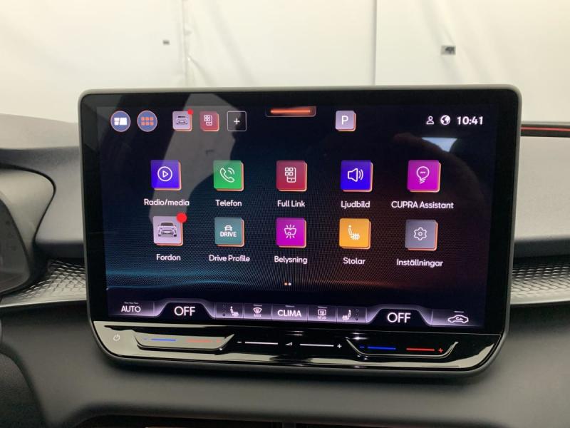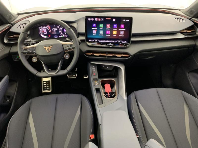 Accès et démarrage mains-libresAccoudoir central AVAide au maintien dans la voie (Lane Assist)Aide au stationnement AV et ARAirbags latéreaux, rideaux et centralAlarme antivol avec fonction SAFEBandeau AR ''Infinite Light'' intégrant le logo CUPRA lumineux avec signature lumineuse Tri-LED et cérémonie de bienvenueBanquette AR coulissante 2/3 - 1/3Caméra de reculCapteur de pluie et de luminositéCiel de pavillon NoirClimatisation automatique tri-zone "Climatronic"Connectivité 4x USB-C et BluetoothConnectivity Box avec chargeur à inductionDétection de fatigue et somnolenceDesign Intérieur Deep Ocean (sièges baquets TEP + textile Bleu Acier) - Logos CUPRA estampés sur les appuie-têtes - Planche de bord bleu acier texturée avec aérateurs cuivrés - Contre-portes en TEP noir texturé - Ciel de pavillon noir - Si&eDigital Cockpit 10,25" simple avec 2 affichages personnalisablesDirection dynamiqueDossiers AR rabattables 2/3 - 1/3Eclairage de bienvenue avec projection du logo CUPRA au solFixations ISOFIX avec Top-Tether à l'ARFront Assist avec détection des piétons et cyclistesFull Link sans fil ( Android Auto + Apple CarPlay)Hayon électrique mains-libres ''Virtual Pedal''Jantes 18'' Atomic usinéesKit de sécurité CUPRAProjecteurs anti-brouillard avec éclairage d'intersection et éclairage d'accompagnementProjecteurs full LED avec signature lumineuseTri-LEDRégulateur de vitesse adaptatif ACCRétroviseur intérieur électrochromeRétroviseurs extérieurs réglables, rabatable électriquement, dégivant , avec abaissement passager avantRadio numérique DABRails de toit NoirReconnaissance des panneaux de signalisation (Sign Assist)Seuils de porte CUPRA rétro-éclairésSmart Ambient Light (éclairage d'ambiance intérieur intelligent)Système audio à 9 HP avec contrôle vocalSystème d'info-divertissement avec écran tactile HD 12,9'' et touches de commandes tactiles rétro-éclairéesVitres AR surteintéesVolant Supersports CUPRA en cuir avec boutons satellites, chauffant avec palettes de changement de rapport