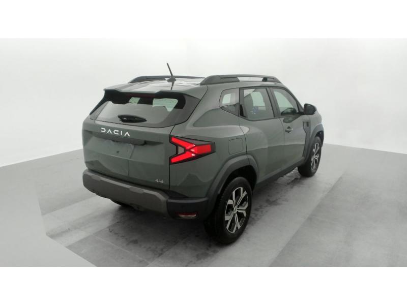 Airbag AV conducteur et passagerAirbag passager déconnectableAirbags latéraux AV et rideauxAlerte franchissement de ligneAllumage des feux automatique et essuie-glace automatiquesAppel SOS (E-call)Avertissement distance de sécuritéBanquette AR rabattable 40/60Barres de toit longitudinalesCaméra de reculClé à radiofréquenceClimatisation manuelleConsole centrale semi haute avec accoudoirContrôle de trajectoire en descente avancéCoques de rétroviseurs Gris MegalitheDétection de perte de pression des pneusDirection assistéeFeux de croisement à LEDJantes alliage 17" diamantées TERGANLève-vitres AV / AR électriquesLunette AR dégivranteMode écoRégulateur et limiteur de vitesseRépétiteurs latéraux à LEDRétroviseurs extérieurs réglables électriquement + dégivrantsRadars de reculReconnaissance des panneaux de signalisation avec alerte de survitesseSellerie spécifique "Denim" avec logo Dacia réflechissantSignature lumineuse en "Y" à LEDSystème anti-blocage des roues (ABS)Système de contrôle de traction (TCS)Système de fixation IsofixSystème de freinage d'urgenceSystème de surveillance de l'attention du conducteurTableau de bord numérique 7"Verrouillage centraliséeVolant réglable en hauteur et en profondeurVolant Soft Feel