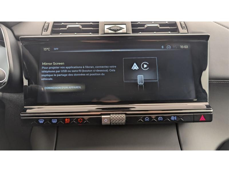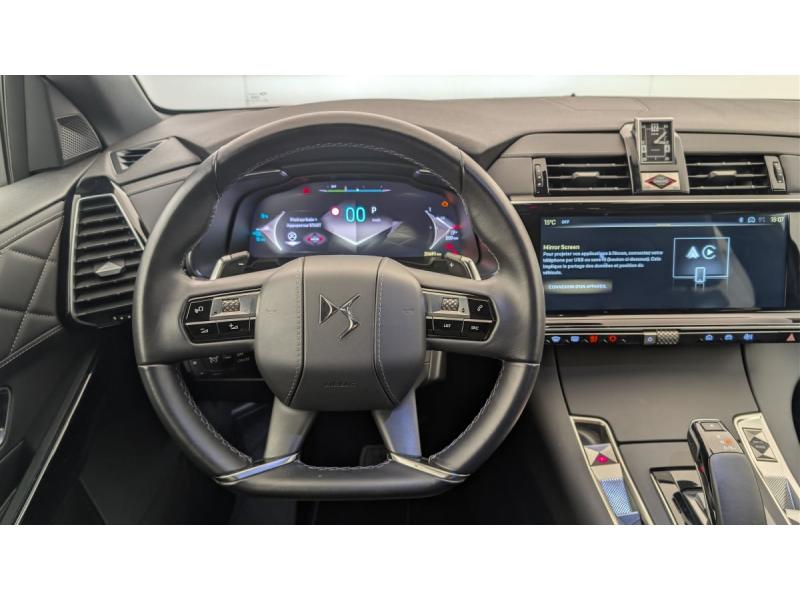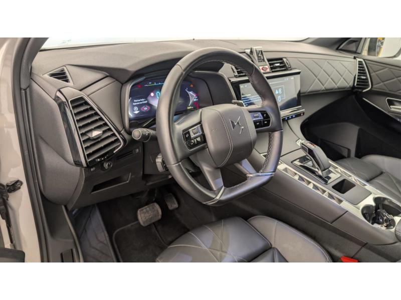 ABS avec répartiteur électronique de freinage (REF) et Aide au Freinage d'Urgence (AFU) + Aide au démarrage en penteAccès et démarrage mains libresAccoudoir central en Toile DS avec rangementAide au stationnement AV/AR et Caméra de reculAirbags frontaux (passager déconnectable), latéraux AV, rideaux AV/ARAlerte Attention ConducteurAlerte de franchissement involontaire de ligneAllumage automatique des feux Avec commutation automatique des feux de routeBanquette AR 2/3 - 1/3Barres de toit aluminiumClimatisation automatique bi-zoneCombiné numérique 12.3" HDContrôle électronique de stabilité de l'attelageContrôle dynamique de stabilité (ESP) avec antipatinage des roues (ASR)Détection de sous-gonflageDouble antennesDouble canule d'échappement chroméeDS ACTIVE SCAN SUSPENSIONDS IRIS SYSTEM Système d'infotainment personnalisable de dernière générationDS LIGHT VEIL Feux de jour à LEDDS PIXEL LED VISION 3.0Eclairage d'accueil et d'accompagnementEclairage d'ambiance à LEDEclairage de cave à pieds à LEDEcran tactile capacitif 12" HDEssuie-vitre AV à déclenchement et cadencement automatiques + Buses de lavageFeux AR 3D (traitement écailles) Avec indicateur de changement de direction défilantFixations ISOFIX à la place passager AV et aux places latérales AR Inclut TOP TEATHERFrein de stationnement électrique automatiqueFreinage d'urgence automatique piloté par caméra et radarIntérieur Cuir Noir Basalte : Pédalier et le repose-pied aluminium Vitres AR et lunette AR surteintées Surtapis AV/AR Accoudoir central AR Réglage du nez de coussin Sièges AV électriques Réglage électrique du siège, réglage lombaJantes alliage 19'' EDINBURGH, pneus 235/50 R19 VKit de dépannageLève-vitres AV/AR électriques, séquentiels et avec fonction antipincementMirror Screen sans fil via Wifi Compatible Apple CarPlay et Android AutoNavigation 3D ConnectéePalettes au volantPoignées extérieures couleur caisse avec insert chroméPrises 12 V 1 prise dans le rangement AV de la console centrale et 1 prise dans le coffrePrises USB 1 prise USB type C dans le rangement de la console centrale et 2 prises USB type A pour les passagers ARRégulateur/Limiteur de vitesseRétroviseur intérieur électrochrome sans cadreRétroviseurs extérieurs électriques dégivrants, rabattables électriquement Fonction électrochrome côté conducteur, Projection au sol du logo DS, Indexé à la marche AR côté passagerRétroviseurs extérieurs avec embase couleur caisse et coque noir brillantRadio numérique terrestre (DAB)Reconnaissance étendue des panneaux de signalisationSélecteur de mode de conduiteSabot AV chroméSOS & AssistanceSurveillance d'angles mortsVérins d'ouverture et de maintien du capot moteurVolant réglable en hauteur et profondeur