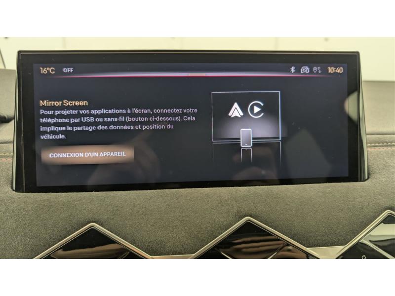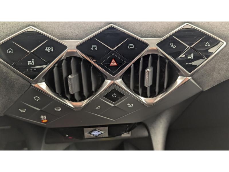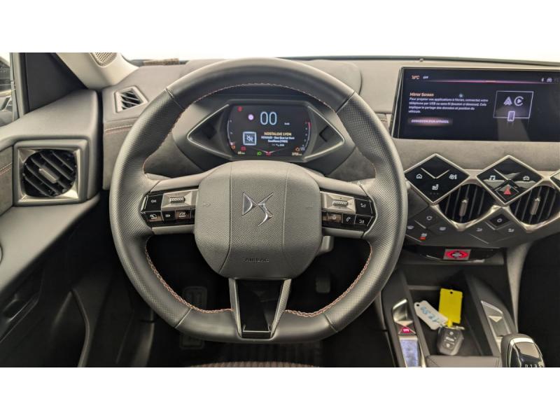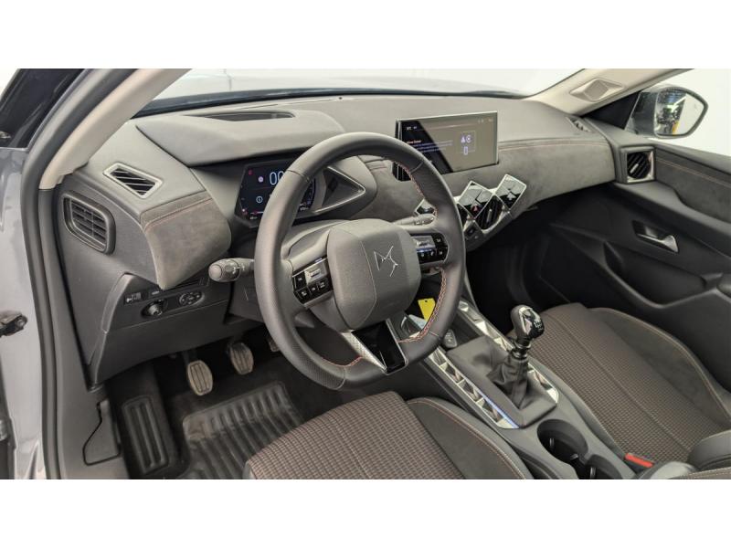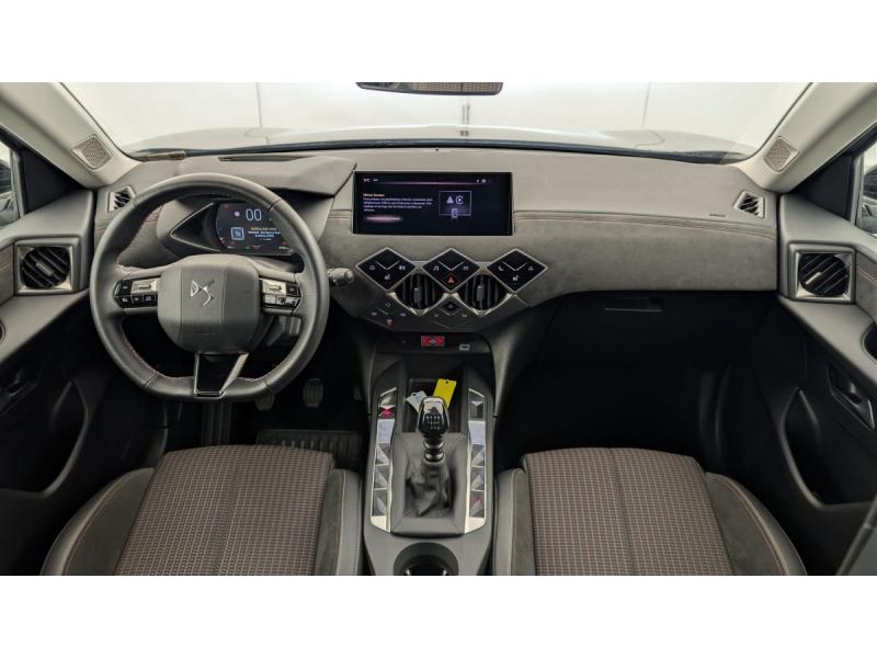 ABS avec répartiteur électronique de freinage (REF) et Aide au Freinage d'Urgence (AFU) + Aide au démarrage en penteAide au stationnement ARAirbags frontaux (passager déconnectable), latéraux AV et AR, rideaux AV et ARAlerte active de franchissement involontaire de ligneAllumage automatique des pharesBanquette AR 2/3 - 1/3Climatisation automatiqueCombiné numériqueCondamnation centraliséeContrôle dynamique de stabilité (ESP) avec antipatinage des roues (ASR)Démarrage mains-libresDétection de sous-gonflageDS Wings Noir BrillantEclairage d'accueil et d'accompagnementEcran tactile capacitif 10,3" HDEssuie-vitre AV à déclenchement et cadencement automatiquesFixations ISOFIX à la place passager AV et aux places latérales ARFrein de stationnement électrique automatiqueIntérieur Alcantara Noir : Ciel de pavillon Gris Galet Volant Cuir fleur perforé et coutures Or et Carmin Décor Alcantara Noir Siège Tissu Tressé Basalte avec AlcantaraJantes alliage 17" OSLOJonc supérieur de volet Noir brillant avec lettrage 'DS AUTOMOBILES' en acier inoxydableKit de dépannage provisoire de pneumatiquesLève-vitres AV et AR électriques et séquentiels Antipincement côté conducteur et sécurité enfantMirror Screen sans fil via Wifi Compatible Apple CarPlay et Android AutoMonogrammes AR noir brillantPoignées de portes affleurantesPrédisposition usine pour roue de secours accessoirePrise USB Data à l'AVPrises 12 VProjecteurs à LEDRégulateur/Limiteur de vitesseRéhausse manuelle de siège conducteurRéhausse manuelle du siège passagerRétroviseurs extérieurs électriques, dégivrants et rabattables électriquementRétroviseurs extérieurs avec embase et coque noir brillantRadio numérique terrestre (DAB)Reconnaissance des panneaux de signalisation et préconisationSièges AV confort Avec poche aumonièreVolant réglable en hauteur et profondeur