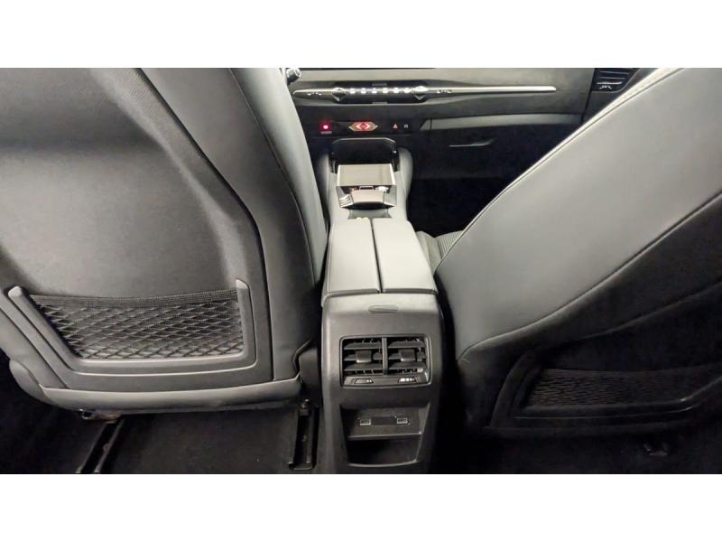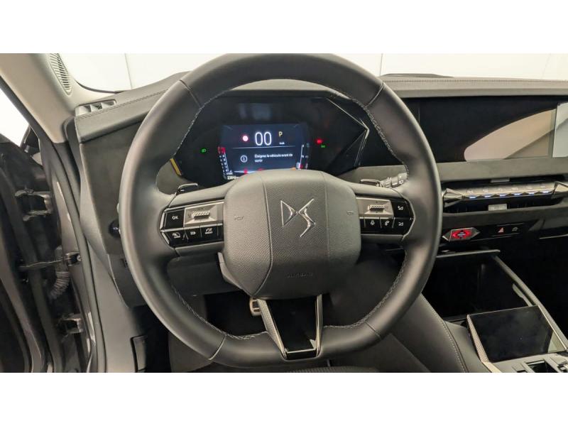 ABS avec répartiteur électronique de freinage (REF) et Aide au Freinage d'Urgence (AFU) Avec aide au démarrage en penteAccès et Démarrage mains libres Proximity Déverrouillage et déploiement automatique des poignées de portes affleurantes à l'approche du véhiculeAccoudoir central AR avec trappe à ski et 2 porte-gobeletsAccoudoir central AV Avec grand rangement réfrigéré et éclairéAide au stationnement AV et AR et Caméra de reculAirbags frontaux (passager déconnectable), latéraux AV, rideaux aux places AV/AR et central entre les places AVAlerte attention conducteurAlerte de franchissement involontaire de ligne Désactivable via l'écran tactileAllumage automatique des feuxAnneaux d'arrimage dans le coffre (x4)Antenne "aileron de requin" Antenne noir brillantAvertisseur de risque de collisionBanquette AR 2/3 - 1/3 avec 3 appuie-têteBanquette AR avec trappe à skisClean Cabin avec Air Quality SystemClimatisation automatique bizone 3 modes de diffusion Soft / Normal / Fast. Mode Monozone. Fonction Quick Launch via bouton dédié : froid ou chaud rapide selon la température extérieure. Aérateurs aux places ARCombiné numérique 7"Condamnation automatique des portes et du coffre en roulantConsole centrale avec rangement fermé Avec dépose-téléphone et 2 porte-gobeletsContrôle dynamique de stabilité (ESP) avec antipatinage des roues (ASR) + Contrôle de stabilité de l'attelageCoques de rétroviseurs extérieurs noir brillantDétection de sous-gonflageDS AIR (Aérateurs centraux invisibles avec sabre chrome)DS e-toggle (Sélecteur de vitesses)DS EXTENDED HEAD UP DISPLAY Affichage tete haute étenduDS IRIS SYSTEM Navigation connectée, intégrant un assistant personnel et reconnaissance vocaleDS MATRIX LED VISION Intègre les technologies Matrix Beam et l'éclairage dynamique en courbe. Grâce aux cinq modes préétablis (ville, campagne, autoroute, météo difficile et brouillard), roulez en pleins phares sans éblouir les autres automDS SMART TOUCHEclairage d'ambiance à LED Personnalisable avec 8 couleurs sur les panneaux de portes AV, la planche de bord et le repose paumeEclairage de boîte à gants, d'accoudoir central AV et de coffre à LEDEclairage de cave à pieds à LEDEcran tactile capacitif 10" HDEnjoliveurs supérieurs des vitres latérales chromésEssuie-vitre AV à déclenchement et cadencement automatiques + Buses de lavageFeux AR Full LED effet 3D avec traitement écaillesFixations ISOFIX aux places latérales AR Inclut un point d'ancrage TOP TETHERFrein de stationnement électrique automatiqueFreinage d'urgence automatique piloté par caméra et radarFreinage multi-collisionGrille de calandre noir brillant avec pampilles chroméesIntérieur Alcantara Noir : Planche de bord en Alcantara Ciel de pavillon clair Sellerie en Tissu Tressé Basalte avec Alcantara et toile DS Décors de panneaux de porte Chrome guilloché Volant cuir Fleur Mistral Console en toile DS Noir Basalte Panneaux de porte en AlcantaJantes alliage 19" SEVILLALève-vitres AV et AR électriques, séquentiels et antipincementLimiteur / Régulateur de vitesseMirror Screen sans fil via Wifi Compatible Apple CarPlay et Android AutoPédalier en aluminiumPack sièges électriques Le réglage lombaires pneumatique. Le siège conducteur électrique à 10 voies avec mémoire de position, nez de coussin réglable mécaniquement et fonction accueil. Le siège passager électrique à Palettes au volantPare-brise teinté acoustiquePare-soleil avec miroirs de courtoisie occultables éclairés à LEDPlafonnier I-Dome tactile Liseuses iDome à commandes tactiles à l'ARPoignées extérieures affleurantes chroméesPrédisposition pour roue de secours galettePrises 12 V 1 prise AV et 1 prise dans le coffrePrises USB 1 prise USB-C sous l'accoudoir central AV, 1 prise USB-C dans la console et 2 prises USB-C pour les passagers ARRégulateur de vitesse adaptatif et Pack Détection trafic AR Avec l'Adaptive Cruise Control Stop & Go. Le Pack Détection Trafic AR comprend l'Alerte de Trafic AR ainsi que la Surveillance d'Angle Mort Longue Distance : Adaptive Cruise Control Stop & Go SurRétroviseur intérieur électrochrome sans cadreRétroviseurs extérieurs électriques, dégivrants, rabattables électriquement Avec éclairage d'accueilRadio numérique terrestre (DAB)Reconnaissance étendue des panneaux de circulationSécurité Enfants Sécurité mécaniqueSOS & AssistanceVéhicule sans roue de secours ni kit de dépannageVérins d'ouverture et de maintien du capot moteurVitres AR et lunette AR surteintéesVitres latérales AV et AR feuilletées et acoustiquesVolant réglable en hauteur et profondeur