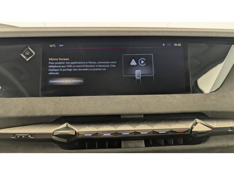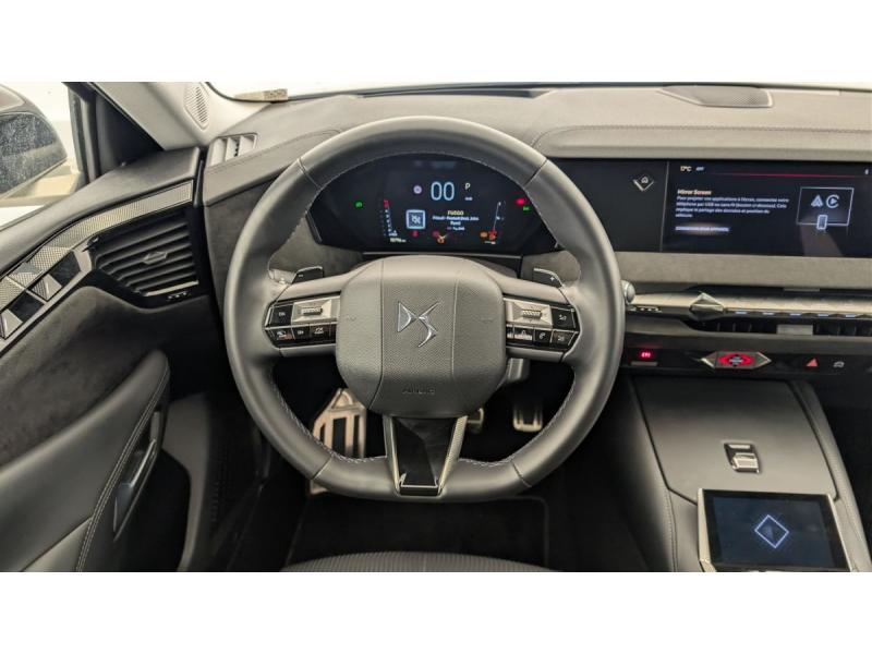 ABS avec répartiteur électronique de freinage (REF) et Aide au Freinage d'Urgence (AFU) Avec aide au démarrage en penteAccès et Démarrage mains libres Proximity Déverrouillage et déploiement automatique des poignées de portes affleurantes à l'approche du véhiculeAccoudoir central AR avec trappe à ski et 2 porte-gobeletsAccoudoir central AV Avec grand rangement réfrigéré et éclairéAide au stationnement AV et AR et Caméra de reculAirbags frontaux (passager déconnectable), latéraux AV, rideaux aux places AV/AR et central entre les places AVAlerte attention conducteurAlerte de franchissement involontaire de ligne Désactivable via l'écran tactileAllumage automatique des feuxAnneaux d'arrimage dans le coffre (x4)Antenne "aileron de requin" Antenne noir brillantAvertisseur de risque de collisionBanquette AR 2/3 - 1/3 avec 3 appuie-têteBanquette AR avec trappe à skisBoîte à gants floquéeCabochons d'écrous de roue noir brillantCapot actifCentre de roues NoirClean Cabin avec Air Quality SystemClimatisation automatique bizone 3 modes de diffusion Soft / Normal / Fast. Mode Monozone. Fonction Quick Launch via bouton dédié : froid ou chaud rapide selon la température extérieure. Aérateurs aux places ARCombiné numérique 7"Condamnation automatique des portes et du coffre en roulantConsole centrale avec rangement fermé Avec dépose-téléphone et 2 porte-gobeletsContrôle dynamique de stabilité (ESP) avec antipatinage des roues (ASR) + Contrôle de stabilité de l'attelageCoques de rétroviseurs extérieurs noir brillantDétection de sous-gonflageDiffuseur AR noir brillantDS AIR (Aérateurs centraux invisibles avec sabre chrome)DS e-toggle (Sélecteur de vitesses)DS EXTENDED HEAD UP DISPLAY Affichage tete haute étenduDS IRIS SYSTEM Navigation connectée, intégrant un assistant personnel et reconnaissance vocale, avec ChatGPT. Information trafic en temps réel, prix des carburants, parkings et Zones de Danger. 3 ans de services connectés inclusDS MATRIX LED VISION Intègre les technologies Matrix Beam et l'éclairage dynamique en courbe. Grâce aux cinq modes préétablis (ville, campagne, autoroute, météo difficile et brouillard), roulez en pleins phares sans éblouir les autres automDS SMART TOUCHDS Wings noir brillantEclairage d'ambiance à LED Personnalisable avec 8 couleurs sur les panneaux de portes AV, la planche de bord et le repose paumeEclairage de boîte à gants, d'accoudoir central AV et de coffre à LEDEclairage de cave à pieds à LEDEcran tactile capacitif 10" HDEnjoliveurs de bas de porte noirs avec insert chroméEnjoliveurs supérieurs des vitres latérales chromésEssuie-vitre AREssuie-vitre AV à déclenchement et cadencement automatiques + Buses de lavageFeux AR Full LED effet 3D avec traitement écaillesFixations ISOFIX aux places latérales AR Inclut un point d'ancrage TOP TETHERFrein de stationnement électrique automatiqueFreinage d'urgence automatique piloté par caméra et radarFreinage multi-collisionGrille de calandre noir brillant avec pampilles chroméesIntérieur Alcantara Noir : Planche de bord en Alcantara Ciel de pavillon clair Sellerie en Tissu Tressé Basalte avec Alcantara et toile DS Décors de panneaux de porte Chrome guilloché Volant cuir Fleur Mistral Console en toile DS Noir Basalte Panneaux de porte en AlcantaJantes alliage 19" SEVILLAJonc de volet chroméKit de dépannage provisoire de pneumatiquesLécheurs de vitres latérales et enjoliveur de custode noir brillantLève-vitres AV et AR électriques, séquentiels et antipincementLimiteur / Régulateur de vitesseLunette AR chauffanteMirror Screen sans fil via Wifi Compatible Apple CarPlay et Android AutoMonogramme DS chromé sur l'enjoliveur de custode latéralMonogramme extérieur ÉTOILE sur le capotMonogrammes AV/AR chromésPédalier en aluminiumPack sièges électriques Le réglage lombaires pneumatique. Le siège conducteur électrique à 10 voies avec mémoire de position, nez de coussin réglable mécaniquement et fonction accueil. Le siège passager électrique à Palettes au volantPare-brise teinté acoustiquePare-soleil avec miroirs de courtoisie occultables éclairés à LEDPlafonnier I-Dome tactile Liseuses iDome à commandes tactiles à l'ARPoignées extérieures affleurantes chroméesPréconditionnement thermique de l'habitacle programmable par smartphone Via MyDS AppPrédisposition pour roue de secours galettePrises 12 V 1 prise AV et 1 prise dans le coffrePrises USB 1 prise USB-C sous l'accoudoir central AV, 1 prise USB-C dans la console et 2 prises USB-C pour les passagers ARRégulateur de vitesse adaptatif et Pack Détection trafic AR Avec l'Adaptive Cruise Control Stop & Go. Le Pack Détection Trafic AR comprend l'Alerte de Trafic AR ainsi que la Surveillance d'Angle Mort Longue Distance : Adaptive Cruise Control Stop & Go SurRétroviseur intérieur électrochrome sans cadreRétroviseurs extérieurs électriques, dégivrants, rabattables électriquement Avec éclairage d'accueilRadio numérique terrestre (DAB)Reconnaissance étendue des panneaux de circulationSécurité Enfants Sécurité mécaniqueSeuil de portes AVSièges AV avec mousse haute densitéSOS & AssistanceSurtapis AV/ARVérins d'ouverture et de maintien du capot moteurVitres AR et lunette AR surteintéesVitres latérales AV et AR feuilletées et acoustiquesVolant réglable en hauteur et profondeur