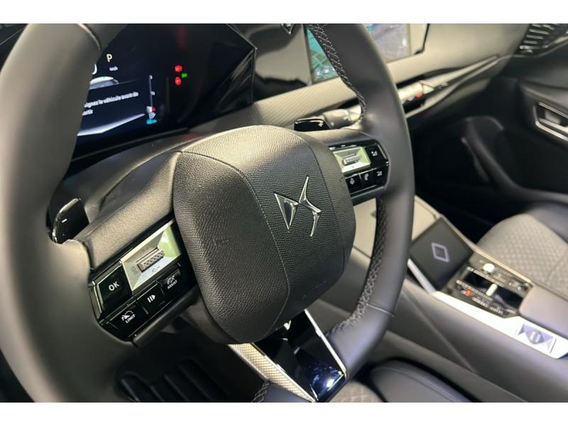 ABS avec répartiteur électronique de freinage (REF) et Aide au Freinage d'Urgence (AFU) Avec aide au démarrage en penteAccoudoir central AR avec trappe à ski et 2 porte-gobeletsAccoudoir central AV Avec grand rangement réfrigéré et éclairéAdaptive Cruise Control Stop & GoAide au stationnement AV et AR et Caméra de reculAirbags frontaux (passager déconnectable), latéraux AV, rideaux aux places AV/AR et central entre les places AVAlerte attention conducteurAlerte de franchissement involontaire de ligne Désactivable via l'écran tactileAllumage automatique des feuxAvertisseur de risque de collisionBanquette AR 2/3 - 1/3 avec 3 appuie-têteBanquette AR avec trappe à skisClean Cabin avec Air Quality SystemClimatisation automatique bizone 3 modes de diffusion Soft / Normal / Fast. Mode Monozone. Fonction Quick Launch via bouton dédié : froid ou chaud rapide selon la température extérieure. Aérateurs aux places ARCombiné numérique 7"Commutation automatique des feuxCondamnation automatique des portes et du coffre en roulantConsole centrale avec rangement fermé Avec dépose-téléphone et 2 porte-gobeletsContrôle dynamique de stabilité (ESP) avec antipatinage des roues (ASR)Coques de rétroviseurs extérieurs noir brillantDémarrage mains-libres Déploiement des poignées de portes affleurantes à la cléDétection de sous-gonflageEclairage d'ambiance à LED Personnalisable avec 8 couleurs sur les panneaux de portes AV, la planche de bord et le repose paumeEclairage de cave à pieds à LEDEcran tactile capacitif 10" HDEssuie-vitre AREssuie-vitre AV à déclenchement et cadencement automatiquesFeux AR Full LED effet 3D avec traitement écaillesFixations ISOFIX aux places latérales AR Inclut un point d'ancrage TOP TETHERFrein de stationnement électrique automatiqueFreinage d'urgence automatique piloté par caméra et radarIntérieur Tissu Diamond Tungstène avec Toile DS Noir : Ciel de pavillon clair Sellerie en Tissu Diamond Tungstène avec toile DS Noir Décors de panneaux de porte Chrome guilloché Console centrale en Toile DS Mistral Planche de bord en toile DS Noir Basalte fa&ccediKit de dépannage provisoire de pneumatiquesLève-vitres AV et AR électriques, séquentiels et antipincementLimiteur / Régulateur de vitesseLunette AR chauffanteMirror Screen sans fil via Wifi Compatible Apple CarPlay et Android AutoPalettes au volantPare-brise teinté acoustiquePare-soleil avec miroirs de courtoisie occultables éclairés à LEDPlafonnier I-Dome tactile Liseuses iDome à commandes tactiles à l'ARPoignées extérieures affleurantes chroméesPrédisposition pour roue de secours galetteProjecteurs à LEDRétroviseur intérieur électrochrome sans cadreRétroviseurs extérieurs électriques, dégivrants, rabattables électriquement Avec éclairage d'accueilRadio numérique terrestre (DAB)Reconnaissance étendue des panneaux de circulationSOSVitres latérales AV feuilletées acoustiquesVolant réglable en hauteur et profondeur