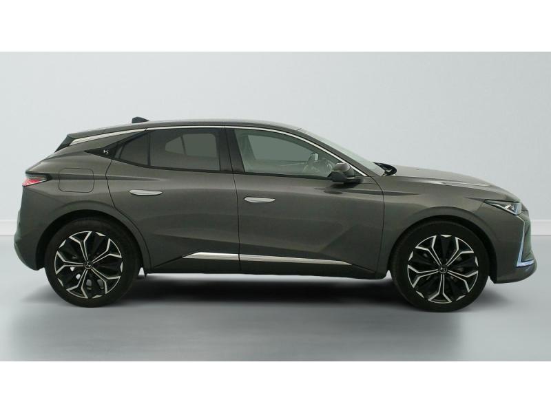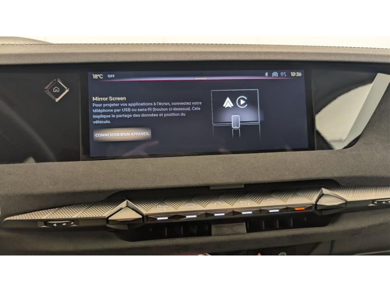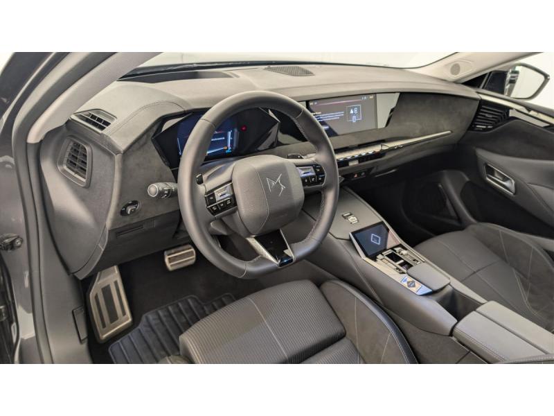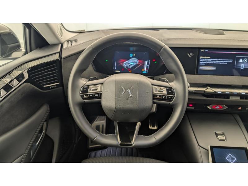 ABS avec répartiteur électronique de freinage (REF) et Aide au Freinage d'Urgence (AFU) Avec aide au démarrage en penteAccès et Démarrage mains libres Proximity Déverrouillage et déploiement automatique des poignées de portes affleurantes à l'approche du véhiculeAccoudoir central AR avec 2 porte-gobeletsAccoudoir central AV Avec grand rangement & éclairéAide au stationnement AV et AR et Caméra de reculAirbags frontaux (passager déconnectable), latéraux AV, rideaux aux places AV/AR et central entre les places AVAlerte attention conducteurAlerte de franchissement involontaire de ligne Désactivable via l'écran tactileAllumage automatique des feuxAntenne "aileron de requin" Antenne noir brillantAvertisseur de risque de collisionBanquette AR 2/3 - 1/3 avec 3 appuie-têteClean Cabin avec "Air Quality System"Climatisation automatique bizone 3 modes de diffusion Soft / Normal / Fast. Mode Monozone. Fonction Quick Launch via bouton dédié : froid ou chaud rapide selon la température extérieure. Aérateurs aux places ARCombiné numérique 7"Condamnation automatique des portes et du coffre en roulantConsole centrale avec rangement fermé Avec dépose-téléphone et 2 porte-gobeletsContrôle dynamique de stabilité (ESP) avec antipatinage des roues (ASR) + Contrôle de stabilité de l'attelageDétection de sous-gonflageDS E-Toggle (Sélecteur de vitesses)DS EXTENDED HEAD UP DISPLAY Affichage tete haute étenduDS IRIS SYSTEM Navigation connectée, intégrant un assistant personnel et reconnaissance vocale, avec ChatGPT. Information trafic en temps réel, prix des carburants, parkings et Zones de Danger. 3 ans de services connectés inclusDS MATRIX LED VISION Intègre les technologies Matrix Beam et l'éclairage dynamique en courbe. Grâce aux cinq modes préétablis (ville, campagne, autoroute, météo difficile et brouillard), roulez en pleins phares sans éblouir les autres automEclairage d'ambiance à LED Personnalisable avec 8 couleurs sur les panneaux de portes AV, la planche de bord et le repose paumeEclairage de boîte à gants, d'accoudoir central AV et de coffre à LEDEclairage de cave à pieds à LEDEcran tactile capacitif 10" HDEssuie-vitre AREssuie-vitre AV à déclenchement et cadencement automatiques + Buses de lavageFeux AR Full LED effet 3D avec traitement écaillesFixations ISOFIX aux places latérales AR Inclut un point d'ancrage TOP TETHERFrein de stationnement électrique automatiqueFreinage d'urgence automatique piloté par caméra et radarIntérieur Alcantara Noir : Planche de bord en Alcantara Ciel de pavillon clair Décors de panneaux de porte Chrome guilloché Volant cuir Fleur Mistral Console en toile DS Noir Basalte Panneaux de porte en Alcantara et Toile DS Noir Basalte Sellerie en Tissu Tressé BasalteJantes alliage 19" SEVILLAKit de dépannage provisoire de pneumatiquesLève-vitres AV/AR électriques, séquentiels et antipincementMirror Screen sans fil via Wifi Compatible Apple CarPlay et Android AutoPédalier en aluminiumPack sièges électriques : Réglage lombaire pneumatique Siège conducteur électrique à 10 voies avec mémoire de position, nez de coussin réglable mécaniquement et fonction accueil Siège passager électrique à 6 voiesPalettes au volantPare-brise teinté acoustiquePare-soleil avec miroirs de courtoisie occultables éclairés à LEDRégulateur de vitesse adaptatif et Pack Détection : Adaptive Cruise Control Stop & Go Surveillance d'angles morts longue distance Alerte de Trafic ARRétroviseur intérieur électrochrome sans cadreRétroviseurs extérieurs électriques, dégivrants, rabattables électriquement Avec éclairage d'accueilRadio numérique terrestre (DAB)Reconnaissance étendue des panneaux de circulationSOSVitres AR et lunette AR surteintéesVitres latérales AV/AR feuilletées et acoustiquesVolant réglable en hauteur et profondeur