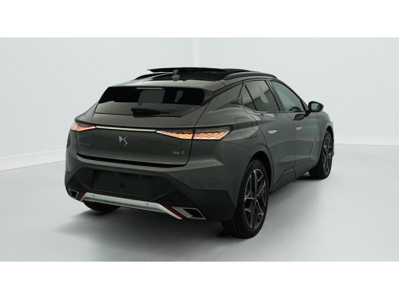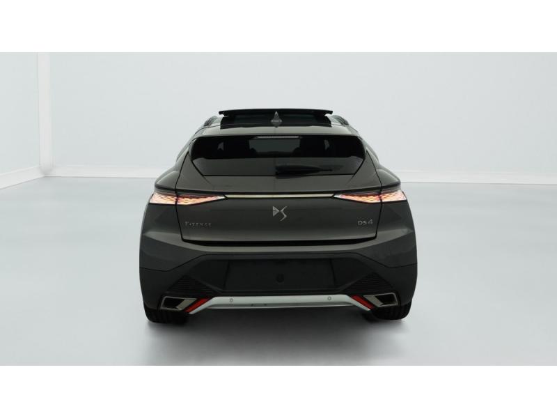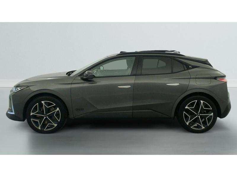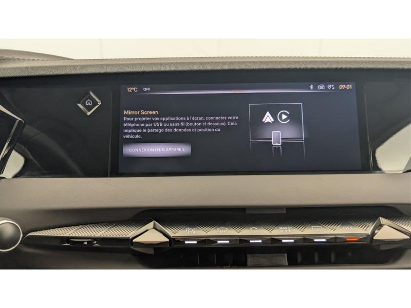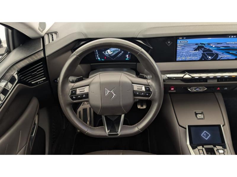 Aérateurs latéraux AV déportés sur les portesABS avec répartiteur électronique de freinage (REF) et Aide au Freinage d'Urgence (AFU)Accoudoir central AR avec trappe à skisADML PROXIMITY Accès et démarrage Mains-Libres ave déverrouillage et déploiement automatique des poignées de portes affleurantes à l'approche du véhiculeAide au démarrage en penteAirbag central entre les places AVAirbags frontaux aux places AV avec désactivation par clé de l'airbag passagerAirbags latéraux de type "thorax" aux places AVAirbags rideaux aux places AV et ARAllumage automatique des feux de détresse en cas de forte décélérationAntenne radio "Aileron de requin"Appuie-tête à réglages intégrés à 4 voiesBanquette AR 2/3 - 1/3 avec 3 appuie-têteBarres de toit Noires brillantesCâble de recharge mode 2 standard 1,8 kW (8 A)Câble de recharge mode 3 monophasé 7,4kWChargeur embarqué de 7,4 kWClean Cabin avec Air Quality SystemClimatisation automatique bi-zoneClimatisation avec aérateurs aux places ARCombiné numérique 7"Commutation automatique des feux de routeCondamnation automatique des portes, du coffre et de la trappe à carburant en roulantContrôle de stabilité de l'attelageContrôle de traction intelligentContrôle dynamique de stabilité (ESP) avec antipatinage des roues (ASR)Détection de sous-gonflageDS ACTIVE SCAN SUSPENSION Système de suspension pilotée par caméraDS e-toggle (Sélecteur de vitesses)DS EXTENDED HEAD UP DISPLAYDS IRIS SYSTEMDS MATRIX LED VISIONDS SMART TOUCHEclairage d'accompagnementEclairage d'accueil automatiqueEclairage PolyAmbientFeux AR 3D (traitement écailles) avec indicateur défilant à LEDFeux diurnes à LEDFixations ISOFIX à la place passager AV et aux places latérales ARFonction de conduite préféréeFonction freinage régénératifFrein de stationnement électrique automatiqueFreinage d'urgence automatique piloté par caméra et radar avec Pack Sécurité Etendue, DS DRIVE ASSIST et Pack Détection Trafic ArrièreJantes alliage 19" LIMAKit de dépannage provisoireLève-vitres AV/AR électriques, séquentiels et antipincementPédalier et le repose-pied aluminiumPack Auto Confort : Climatisation automatique bi-zone Essuie-vitre AV à déclenchement et cadencement automatiques Allumage automatique des projecteursPack Détection Trafic AR : Surveillance d'angles morts longue distance Alerte de Trafic ARPack DS DRIVE ASSIST : Adaptive Cruise Control Stop & Go Lane Positioning AssistPack Sécurité Etendue : Alerte Active de Franchissement Involontaire de Ligne (AAFIL) Alerte Attention Conducteur par caméra Reconnaissance étendue des panneaux de circulation Freinage d'urgence automatique piloté par caméra et radar avec Pack SéPalettes au volantPare-brise teinté et acoustiqueRétroviseur intérieur électrochrome sans cadreRadio numérique terrestre (DAB)Sélecteur de mode de conduiteSOSSystème audio Analogique à 6 HP avec BluetoothSystème Infotainment écran 10" tactile avec Mirror Screen sans filVerrouillage automatique des portes en roulantVitres AR surteintées avec Reflective DesignVitres AV/AR feuilletéesVolant réglable en hauteur et profondeur