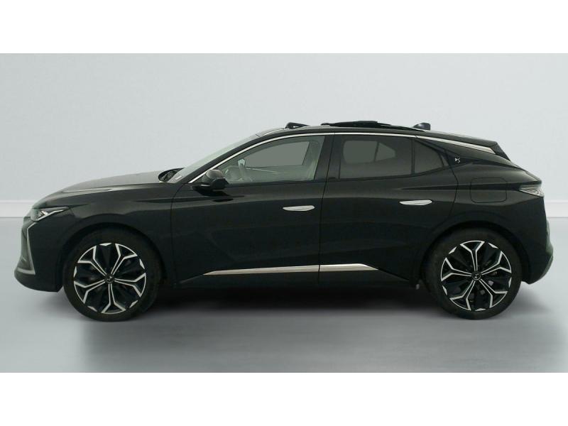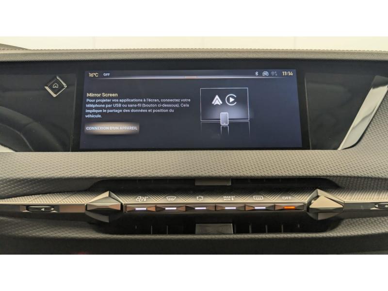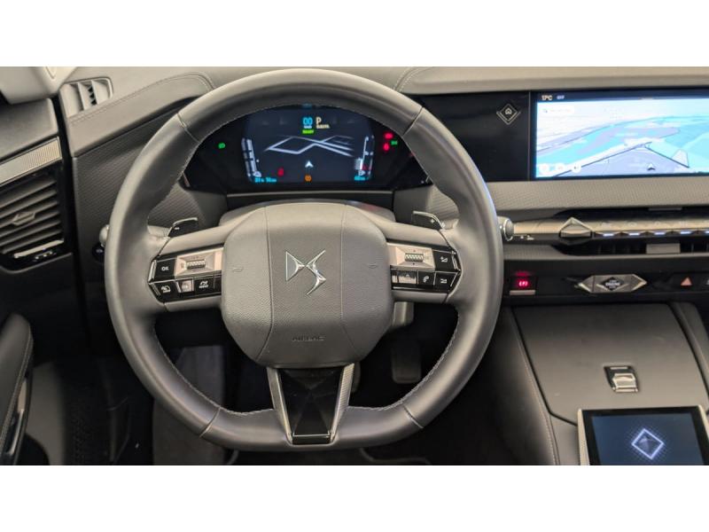 ABS avec répartiteur électronique de freinage (REF) et Aide au Freinage d'Urgence (AFU) + Aide au démarrage en penteAccès et démarrage mains libres ProximityAccoudoir central AR avec trappe à ski et 2 porte-gobeletsAccoudoir central AVAide au stationnement AV et AR et Caméra de reculAirbags frontaux (passager déconnectable), latéraux AV, rideaux aux places AV/AR et central entre les places AVAlerte Attention ConducteurAlerte de franchissement involontaire de ligneAllumage automatique des feuxAntenne "aileron de requin"Avertisseur de risque de collisionBanquette AR 2/3 - 1/3 avec 3 appuie-têteBanquette AR avec trappe à skisClean Cabin avec Air Quality SystemClimatisation automatique bi-zoneCombiné numérique 7"Commutation automatique des feuxCondamnation automatique des portes et du coffre en roulantContrôle dynamique de stabilité (ESP) avec antipatinage des roues (ASR) + Contrôle de stabilité de l'attelageCoques de rétroviseurs extérieurs noir brillantDétection de sous-gonflageDiffuseur AR noir brillant avec décors d'échappement chroméDS Drive Assist et Pack Détection Trafic AR : Surveillance d'angles morts longue distance Alerte de Trafic ARDS e-toggle (Sélecteur de vitesses)DS EXTENDED HEAD UP DISPLAY Affichage tete haute étenduDS IRIS SYSTEMDS MATRIX LED VISIONEclairage d'ambiance à LEDEclairage de boîte à gants, d'accoudoir central AV et de coffre à LEDEclairage de cave à pieds à LEDEcran tactile capacitif 10" HDEnjoliveurs supérieurs des vitres latérales chromésEssuie-vitre AV à déclenchement et cadencement automatiquesFeux AR Full LED effet 3D avec traitement écaillesFixations ISOFIX à la place passager AV et aux places latérales ARFrein de stationnement électrique automatiqueFreinage d'urgence automatique piloté par caméra et radarFreinage multi-collisionGrille de calandre noir brillant avec pampilles chroméesIntérieur Cuir grainé Noir Basalte et Toile DS : Ciel de pavillon clair Décors de panneaux de porte Chrome guilloché Volant en cuir fleur Mistral Console centrale en Toile DS Mistral Planche de bord en toile DS Noir Basalte façon écaille Panneaux de portes Jantes alliage 19" SEVILLAJonc de volet chroméKit de dépannage provisoire de pneumatiquesLève-vitres AV/AR électriques, séquentiels et antipincementMirror Screen sans fil via Wifi Compatible Apple CarPlay et Android AutoPalettes au volantPare-soleil avec miroirs de courtoisie occultables éclairés à LEDPlafonnier I-DomePoignées extérieures affleurantes chroméesPrises 12 V 1 prise AV et 1 prise dans le coffrePrises USB 1 prise USB-C sous l'accoudoir central AV, 1 prise USB-C dans la console et 2 prises USB-C pour les passagers ARRégulateur/Limiteur de vitesseRétroviseur intérieur électrochrome sans cadreRétroviseurs extérieurs électriques, dégivrants, rabattables électriquement Avec éclairage d'accueilRadio numérique terrestre (DAB) Inclut le BluetoothReconnaissance des panneaux de vitesse et préconisationSOSVérins d'ouverture et de maintien du capot moteurVitres AR et lunette AR surteintéesVolant réglable en hauteur et profondeur