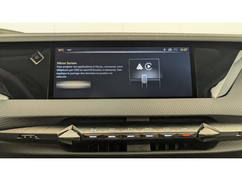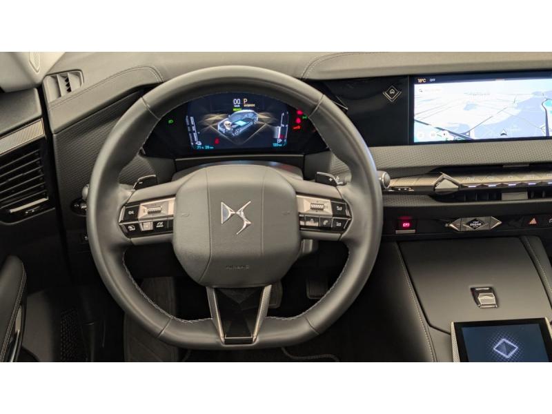 ABS avec répartiteur électronique de freinage (REF) et Aide au Freinage d'Urgence (AFU) + Aide au démarrage en penteAccès et démarrage mains libres ProximityAccoudoir central ARAccoudoir central AVAide au stationnement AV et AR et Caméra de reculAirbags frontaux (passager déconnectable), latéraux AV, rideaux aux places AV/AR et central entre les places AVAllumage automatique des feuxAvertisseur de risque de collisionBanquette AR 2/3 - 1/3 avec 3 appuie-têteClean Cabin avec Air Quality SystemClimatisation automatique bi-zoneCombiné numérique 7"Commutation automatique des feuxCondamnation automatique des portes et du coffre en roulantContrôle dynamique de stabilité (ESP) avec antipatinage des roues (ASR) + Contrôle de stabilité de l'attelageDétection de sous-gonflageDS Drive Assist et Pack Détection Trafic AR : Surveillance d'angles morts longue distance Alerte de Trafic ARDS e-toggle (Sélecteur de vitesses)DS EXTENDED HEAD UP DISPLAY Affichage tete haute étenduDS IRIS SYSTEMDS MATRIX LED VISIONEclairage d'ambiance à LEDEclairage de cave à pieds à LEDEcran tactile capacitif 10" HDEssuie-vitre AV à déclenchement et cadencement automatiques + Buses de lavageFeux AR Full LED effet 3D avec traitement écaillesFixations ISOFIX à la place passager AV et aux places latérales ARFrein de stationnement électrique automatiqueFreinage d'urgence automatique piloté par caméra et radarIntérieur Cuir grainé Noir Basalte et Toile DS : Ciel de pavillon clair Décors de panneaux de porte Chrome guilloché Volant en cuir fleur Mistral Console centrale en Toile DS Mistral Planche de bord en toile DS Noir Basalte façon écaille Panneaux de portes Jantes alliage 19" SEVILLAKit de dépannage provisoire de pneumatiquesLève-vitres AV/AR électriques, séquentiels et antipincementMirror Screen sans fil via Wifi Compatible Apple CarPlay et Android AutoPack Sièges mécaniques avec réglages lombaires conducteur et passagerPalettes au volantPare-brise teinté acoustiquePare-soleil avec miroirs de courtoisie occultables éclairés à LEDRégulateur/Limiteur de vitesse adaptatifRétroviseur intérieur électrochrome sans cadreRétroviseurs extérieurs électriques, dégivrants, rabattables électriquement Avec éclairage d'accueilRadio numérique terrestre (DAB) Inclut le BluetoothReconnaissance des panneaux de vitesse et préconisationSOSVitres AR et lunette AR surteintéesVolant réglable en hauteur et profondeur