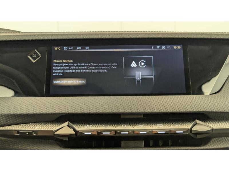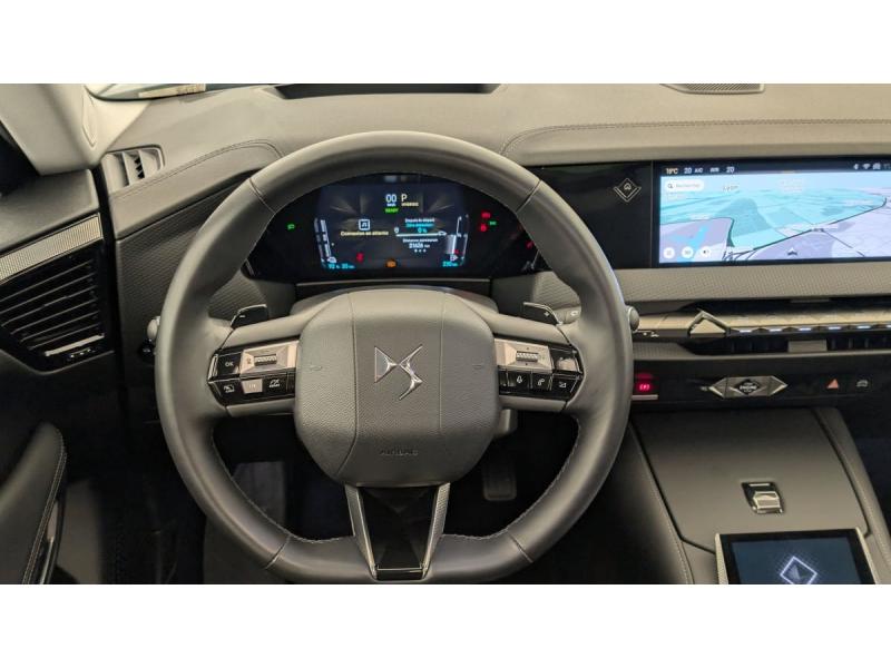 ABS avec répartiteur électronique de freinage (REF) et Aide au Freinage d'Urgence (AFU) + Aide au démarrage en penteAccès et démarrage mains libres ProximityAccoudoir central ARAccoudoir central AVAide au stationnement AV et AR et Caméra de reculAirbags frontaux (passager déconnectable), latéraux AV, rideaux aux places AV/AR et central entre les places AVAllumage automatique des feuxAvertisseur de risque de collisionBanquette AR 2/3 - 1/3 avec 3 appuie-têteClean Cabin avec Air Quality SystemClimatisation automatique bi-zoneCombiné numérique 7"Commutation automatique des feuxCondamnation automatique des portes et du coffre en roulantContrôle dynamique de stabilité (ESP) avec antipatinage des roues (ASR) + Contrôle de stabilité de l'attelageDétection de sous-gonflageDS Drive Assist et Pack Détection Trafic AR : Surveillance d'angles morts longue distance Alerte de Trafic ARDS e-toggle (Sélecteur de vitesses)DS EXTENDED HEAD UP DISPLAY Affichage tete haute étenduDS IRIS SYSTEMDS MATRIX LED VISIONEclairage d'ambiance à LEDEclairage de cave à pieds à LEDEcran tactile capacitif 10" HDEssuie-vitre AV à déclenchement et cadencement automatiques + Buses de lavageFeux AR Full LED effet 3D avec traitement écaillesFixations ISOFIX à la place passager AV et aux places latérales ARFrein de stationnement électrique automatiqueFreinage d'urgence automatique piloté par caméra et radarIntérieur Cuir grainé Noir Basalte et Toile DS : Ciel de pavillon clair Décors de panneaux de porte Chrome guilloché Volant en cuir fleur Mistral Console centrale en Toile DS Mistral Planche de bord en toile DS Noir Basalte façon écaille Panneaux de portes Jantes alliage 19" SEVILLAKit de dépannage provisoire de pneumatiquesLève-vitres AV/AR électriques, séquentiels et antipincementMirror Screen sans fil via Wifi Compatible Apple CarPlay et Android AutoPack Sièges mécaniques avec réglages lombaires conducteur et passagerPalettes au volantPare-brise teinté acoustiquePare-soleil avec miroirs de courtoisie occultables éclairés à LEDRégulateur/Limiteur de vitesse adaptatifRétroviseur intérieur électrochrome sans cadreRétroviseurs extérieurs électriques, dégivrants, rabattables électriquement Avec éclairage d'accueilRadio numérique terrestre (DAB) Inclut le BluetoothReconnaissance des panneaux de vitesse et préconisationSOSVitres AR et lunette AR surteintéesVolant réglable en hauteur et profondeur