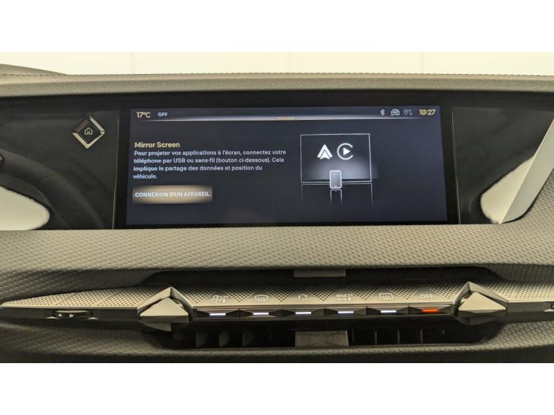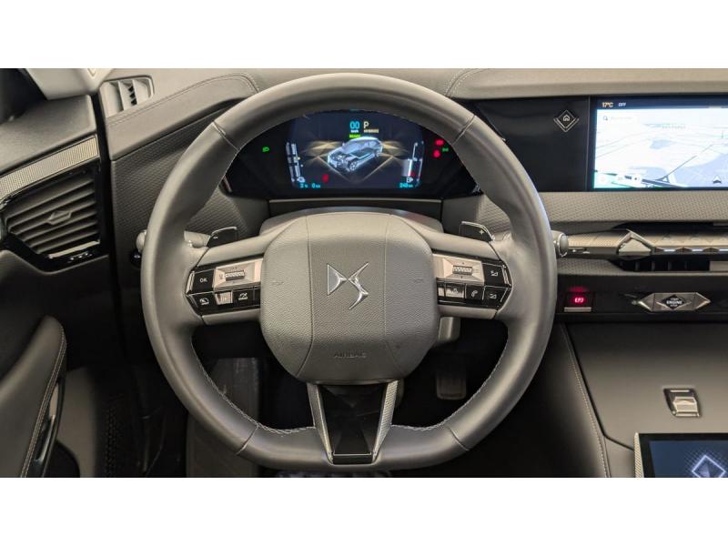 ABS avec répartiteur électronique de freinage (REF) et Aide au Freinage d'Urgence (AFU) + Aide au démarrage en penteAccès et démarrage mains libres ProximityAccoudoir central AR avec trappe à ski et 2 porte-gobeletsAccoudoir central AVAide au stationnement AV et AR et Caméra de reculAirbags frontaux (passager déconnectable), latéraux AV, rideaux aux places AV/AR et central entre les places AVAlerte Attention ConducteurAlerte de franchissement involontaire de ligneAllumage automatique des feuxAntenne "aileron de requin"Avertisseur de risque de collisionBanquette AR 2/3 - 1/3 avec 3 appuie-têteBanquette AR avec trappe à skisClean Cabin avec Air Quality SystemClimatisation automatique bi-zoneCombiné numérique 7"Commutation automatique des feuxCondamnation automatique des portes et du coffre en roulantContrôle dynamique de stabilité (ESP) avec antipatinage des roues (ASR) + Contrôle de stabilité de l'attelageCoques de rétroviseurs extérieurs noir brillantDétection de sous-gonflageDiffuseur AR noir brillant avec décors d'échappement chroméDS Drive Assist et Pack Détection Trafic AR : Surveillance d'angles morts longue distance Alerte de Trafic ARDS e-toggle (Sélecteur de vitesses)DS EXTENDED HEAD UP DISPLAY Affichage tete haute étenduDS IRIS SYSTEMDS MATRIX LED VISIONEclairage d'ambiance à LEDEclairage de boîte à gants, d'accoudoir central AV et de coffre à LEDEclairage de cave à pieds à LEDEcran tactile capacitif 10" HDEnjoliveurs supérieurs des vitres latérales chromésEssuie-vitre AV à déclenchement et cadencement automatiquesFeux AR Full LED effet 3D avec traitement écaillesFixations ISOFIX à la place passager AV et aux places latérales ARFrein de stationnement électrique automatiqueFreinage d'urgence automatique piloté par caméra et radarFreinage multi-collisionGrille de calandre noir brillant avec pampilles chroméesIntérieur Cuir grainé Noir Basalte et Toile DS : Ciel de pavillon clair Décors de panneaux de porte Chrome guilloché Volant en cuir fleur Mistral Console centrale en Toile DS Mistral Planche de bord en toile DS Noir Basalte façon écaille Panneaux de portes Jantes alliage 19" SEVILLAJonc de volet chroméKit de dépannage provisoire de pneumatiquesLève-vitres AV/AR électriques, séquentiels et antipincementMirror Screen sans fil via Wifi Compatible Apple CarPlay et Android AutoPalettes au volantPare-soleil avec miroirs de courtoisie occultables éclairés à LEDPlafonnier I-DomePoignées extérieures affleurantes chroméesPrises 12 V 1 prise AV et 1 prise dans le coffrePrises USB 1 prise USB-C sous l'accoudoir central AV, 1 prise USB-C dans la console et 2 prises USB-C pour les passagers ARRégulateur/Limiteur de vitesseRétroviseur intérieur électrochrome sans cadreRétroviseurs extérieurs électriques, dégivrants, rabattables électriquement Avec éclairage d'accueilRadio numérique terrestre (DAB) Inclut le BluetoothReconnaissance des panneaux de vitesse et préconisationSOSVérins d'ouverture et de maintien du capot moteurVitres AR et lunette AR surteintéesVolant réglable en hauteur et profondeur
