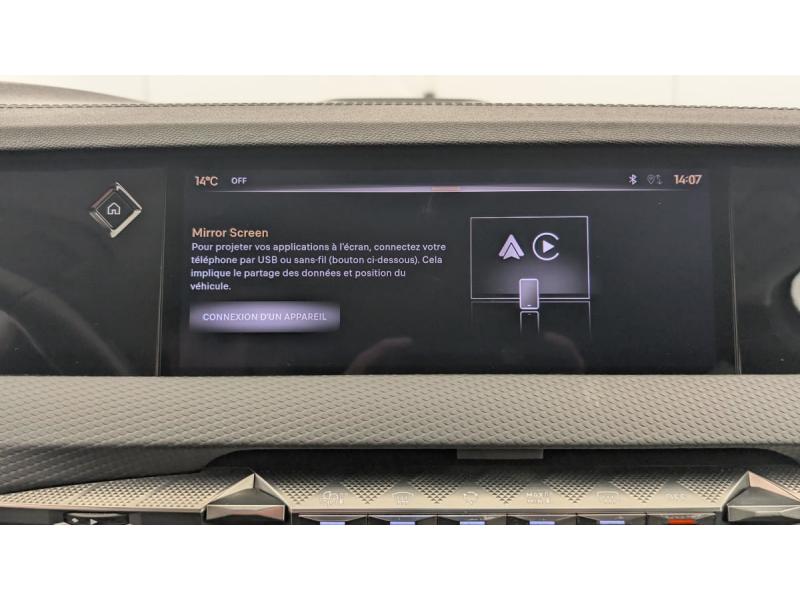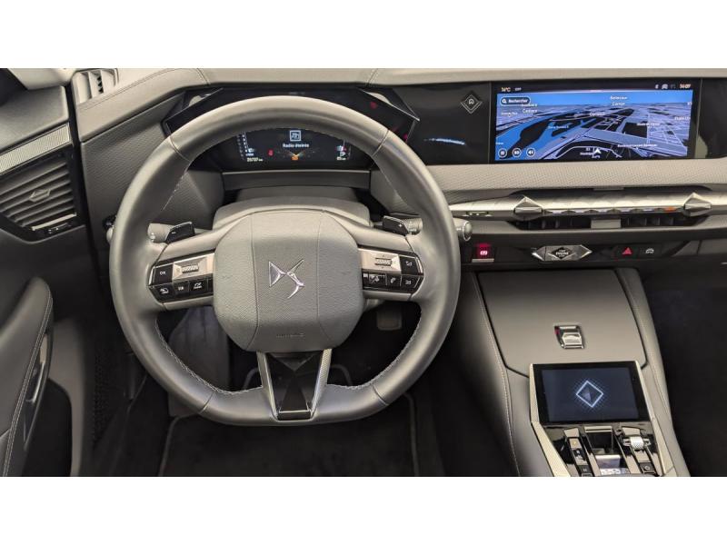 ABS avec répartiteur électronique de freinage (REF) et Aide au Freinage d'Urgence (AFU) + Aide au démarrage en penteAccès et démarrage mains libres ProximityAccoudoir central ARAccoudoir central AVAllumage automatique des feuxBanquette AR 2/3 - 1/3 avec 3 appuie-têteClean Cabin avec Air Quality SystemClimatisation automatique bi-zoneCombiné numérique 7"Commutation automatique des feuxCondamnation automatique des portes et du coffre en roulantConsole centrale avec rangement ferméContrôle dynamique de stabilité (ESP) avec antipatinage des roues (ASR) + Contrôle de stabilité de l'attelageDétection de sous-gonflageDS Drive Assist et Pack Détection Trafic AR : Surveillance d'angles morts longue distance Alerte de Trafic AR Freinage d'urgence automatique piloté par caméra et radar Adaptive Cruise Control Stop & GoDS e-toggle (Sélecteur de vitesses)DS EXTENDED HEAD UP DISPLAYDS IRIS SYSTEMDS MATRIX LED VISIONEclairage d'ambiance à LEDEclairage de boîte à gants, d'accoudoir central AV et de coffre à LEDEclairage de cave à pieds à LEDEcran tactile capacitif 10" HDEssuie-vitre AV à déclenchement et cadencement automatiques + Buses de lavageFeux AR Full LED effet 3D avec traitement écaillesFixations ISOFIX à la place passager AV et aux places latérales ARFrein de stationnement électrique automatiqueFreinage d'urgence automatique piloté par caméra et radarIntérieur Cuir grainé Noir Basalte : Sellerie en Cuir grainé Noir Basalte Décors de panneaux de porte Chrome guilloché Volant en cuir fleur Mistral Console centrale en Toile DS Mistral Planche de bord en toile DS Noir Basalte façon écaille Panneaux dJantes alliage 19"Kit de dépannage provisoire de pneumatiquesLève-vitres AV/AR électriques, séquentiels et antipincementMirror Screen sans fil via Wifi Compatible Apple CarPlay et Android AutoPalettes au volantPare-brise teinté acoustiquePare-soleil avec miroirs de courtoisie occultables éclairés à LEDRétroviseur intérieur électrochrome sans cadreRadio numérique terrestre (DAB) Inclut le BluetoothReconnaissance des panneaux de vitesse et préconisationSOSVitres AR et lunette AR surteintéesVolant réglable en hauteur et profondeur