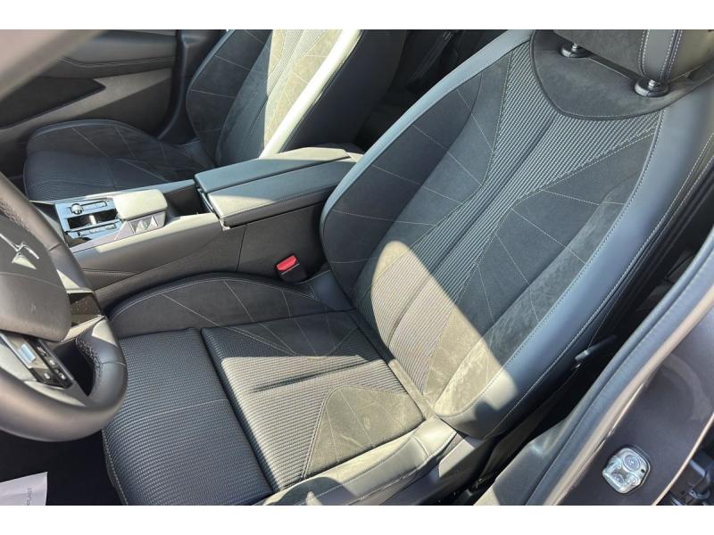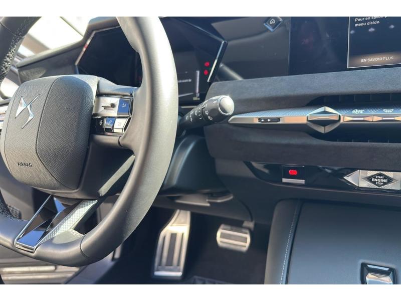 ABS avec répartiteur électronique de freinage (REF) et Aide au Freinage d'Urgence (AFU) Avec aide au démarrage en penteAccès et Démarrage mains libres Proximity Déverrouillage et déploiement automatique des poignées de portes affleurantes à l'approche du véhiculeAccoudoir central AR avec trappe à ski et 2 porte-gobeletsAccoudoir central AV Avec grand rangement réfrigéré et éclairéAide au stationnement AV et AR et Caméra de reculAirbags frontaux (passager déconnectable), latéraux AV, rideaux aux places AV/AR et central entre les places AVAlerte attention conducteurAlerte de franchissement involontaire de ligne Désactivable via l'écran tactileAllumage automatique des feuxAntenne "aileron de requin" Antenne noir brillantAvertisseur de risque de collisionBanquette AR 2/3 - 1/3 avec 3 appuie-têteBanquette AR avec trappe à skisClean Cabin avec Air Quality SystemClimatisation automatique bizone 3 modes de diffusion Soft / Normal / Fast. Mode Monozone. Fonction Quick Launch via bouton dédié : froid ou chaud rapide selon la température extérieure. Aérateurs aux places ARCombiné numérique 7"Condamnation automatique des portes et du coffre en roulantContrôle dynamique de stabilité (ESP) avec antipatinage des roues (ASR) + Contrôle de stabilité de l'attelageCoques de rétroviseurs extérieurs noir brillantDétection de sous-gonflageDS e-toggle (Sélecteur de vitesses)DS EXTENDED HEAD UP DISPLAY Affichage tete haute étenduDS IRIS SYSTEM Navigation connectée, intégrant un assistant personnel et reconnaissance vocaleDS MATRIX LED VISION Intègre les technologies Matrix Beam et l'éclairage dynamique en courbe. Grâce aux cinq modes préétablis (ville, campagne, autoroute, météo difficile et brouillard), roulez en pleins phares sans éblouir les autres automDS SMART TOUCHEclairage d'ambiance à LED Personnalisable avec 8 couleurs sur les panneaux de portes AV, la planche de bord et le repose paumeEclairage de cave à pieds à LEDEcran tactile capacitif 10" HDEnjoliveurs supérieurs des vitres latérales chromésEssuie-vitre AREssuie-vitre AV à déclenchement et cadencement automatiques + Buses de lavageFeux AR Full LED effet 3D avec traitement écaillesFixations ISOFIX aux places latérales AR Inclut un point d'ancrage TOP TETHERFrein de stationnement électrique automatiqueFreinage d'urgence automatique piloté par caméra et radarFreinage multi-collisionIntérieur Alcantara Noir : Planche de bord en Alcantara Ciel de pavillon clair Sellerie en Tissu Tressé Basalte avec Alcantara et toile DS Décors de panneaux de porte Chrome guilloché Volant cuir Fleur Mistral Console en toile DS Noir Basalte Panneaux de porte en AlcantaJantes alliage 19" SEVILLAJonc de volet chroméKit de dépannage provisoire de pneumatiquesLécheurs de vitres latérales et enjoliveur de custode noir brillantLève-vitres AV et AR électriques, séquentiels et antipincementLimiteur / Régulateur de vitesseLunette AR chauffanteMirror Screen sans fil via Wifi Compatible Apple CarPlay et Android AutoMonogramme DS chromé sur l'enjoliveur de custode latéralPédalier en aluminiumPack sièges électriques Le réglage lombaires pneumatique. Le siège conducteur électrique à 10 voies avec mémoire de position, nez de coussin réglable mécaniquement et fonction accueil. Le siège passager électrique à Palettes au volantPare-brise teinté acoustiquePare-soleil avec miroirs de courtoisie occultables éclairés à LEDPlafonnier I-Dome tactile Liseuses iDome à commandes tactiles à l'ARPoignées extérieures affleurantes chroméesPrédisposition pour roue de secours galetteRégulateur de vitesse adaptatif et Pack Détection trafic AR Avec l'Adaptive Cruise Control Stop & Go. Le Pack Détection Trafic AR comprend l'Alerte de Trafic AR ainsi que la Surveillance d'Angle Mort Longue Distance : Adaptive Cruise Control Stop & Go SurRétroviseur intérieur électrochrome sans cadreRétroviseurs extérieurs électriques, dégivrants, rabattables électriquement avec éclairage d'accueilRadio numérique terrestre (DAB)Reconnaissance étendue des panneaux de circulationSécurité Enfants Sécurité mécaniqueSièges AV avec mousse haute densitéSOSVitres AR et lunette AR surteintéesVitres latérales AV et AR feuilletées et acoustiquesVolant réglable en hauteur et profondeur